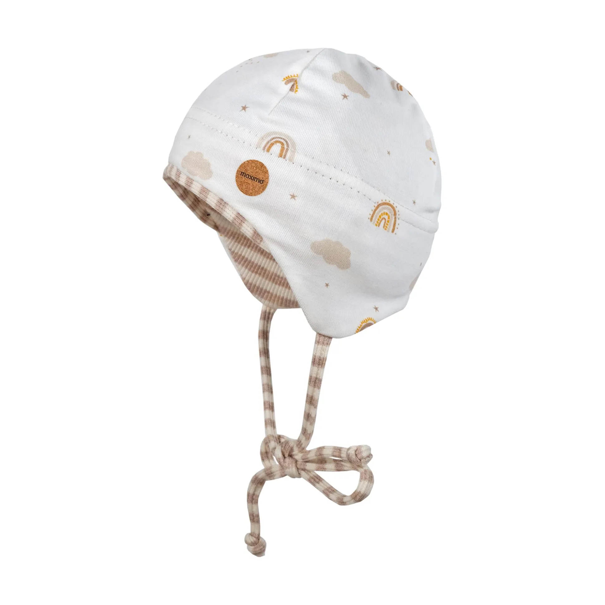 In der GOTS-zertifizierten Baumwoll-Mütze „Regenbogen“ von MaxiMo wird sich dein Liebling besonders wohlfühlen. Und damit die Kopfbedeckung nicht ständig vom Kopf rutscht, kann sie mit den Bindebändern festgezogen werden. Das ist nicht nur äußerst praktisch, sondern sieht auch knuddelig aus.