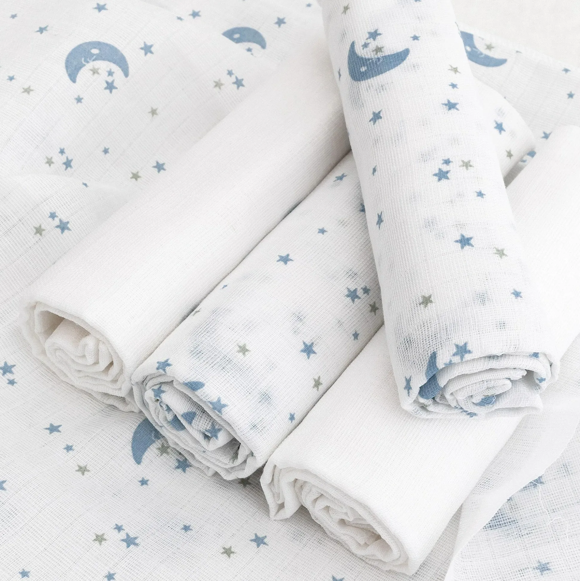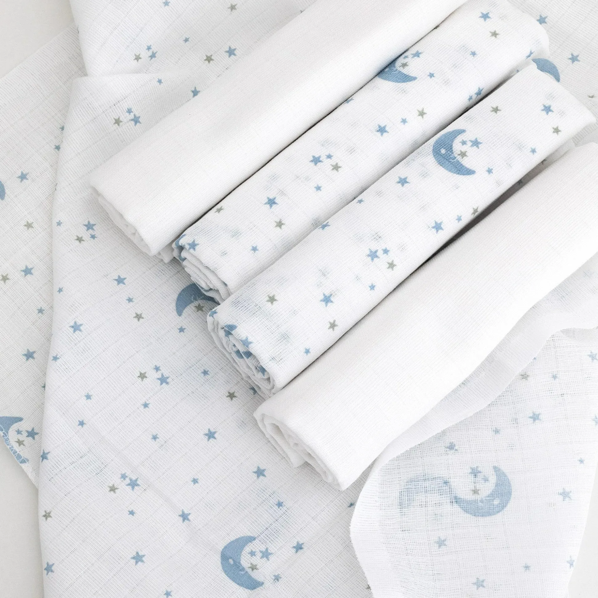 Die weichen LITTLE ONE Mullwindeln Mond & Sterne aus 100% hochwertigem Baumwollstoff sind universell einsetzbar und richtige Alleskönner. Sie sind besonders saugkräftig und können vielseitig zum Beispiel als Spucktuch, Schmusetuch, Unterlage oder Windel verwendet werden. Das sanfte, hautschonende Material macht die Tücher zum optimalen Begleiter für zu Hause und unterwegs.