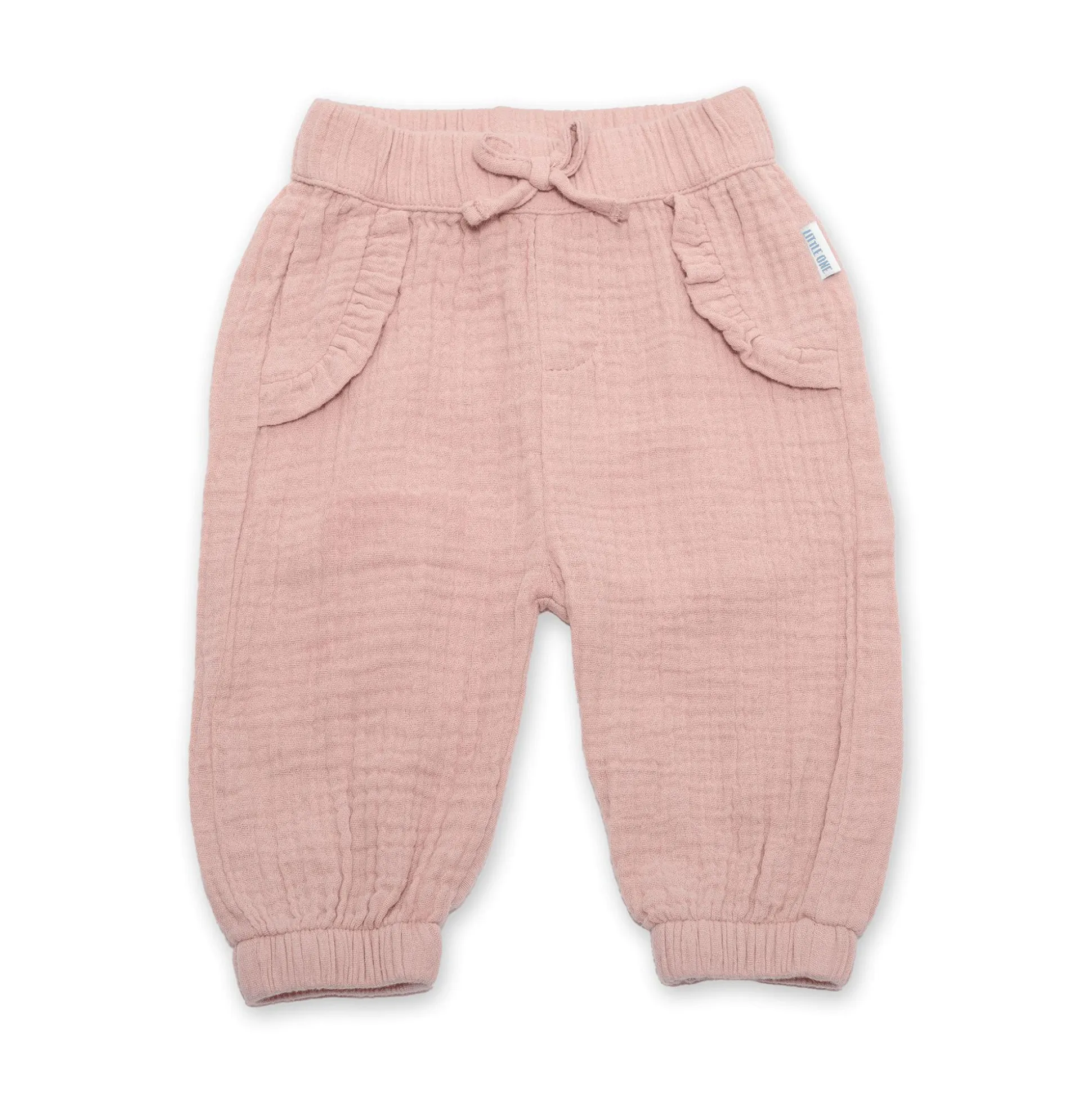Die Musselin-Hose von LITTLE ONE ist ein echtes Wohlfühlteil für deinen kleinen Schatz. Der lockere Schnitt und das weiche, luftige Material sorgen für ein angenehmes Tragegefühl, besonders an warmen Tagen. Der elastische Bund mit dekorativer Kordel ermöglicht ein bequemes An- und Ausziehen, während die süßen Rüschen an den Taschen das Design abrunden.