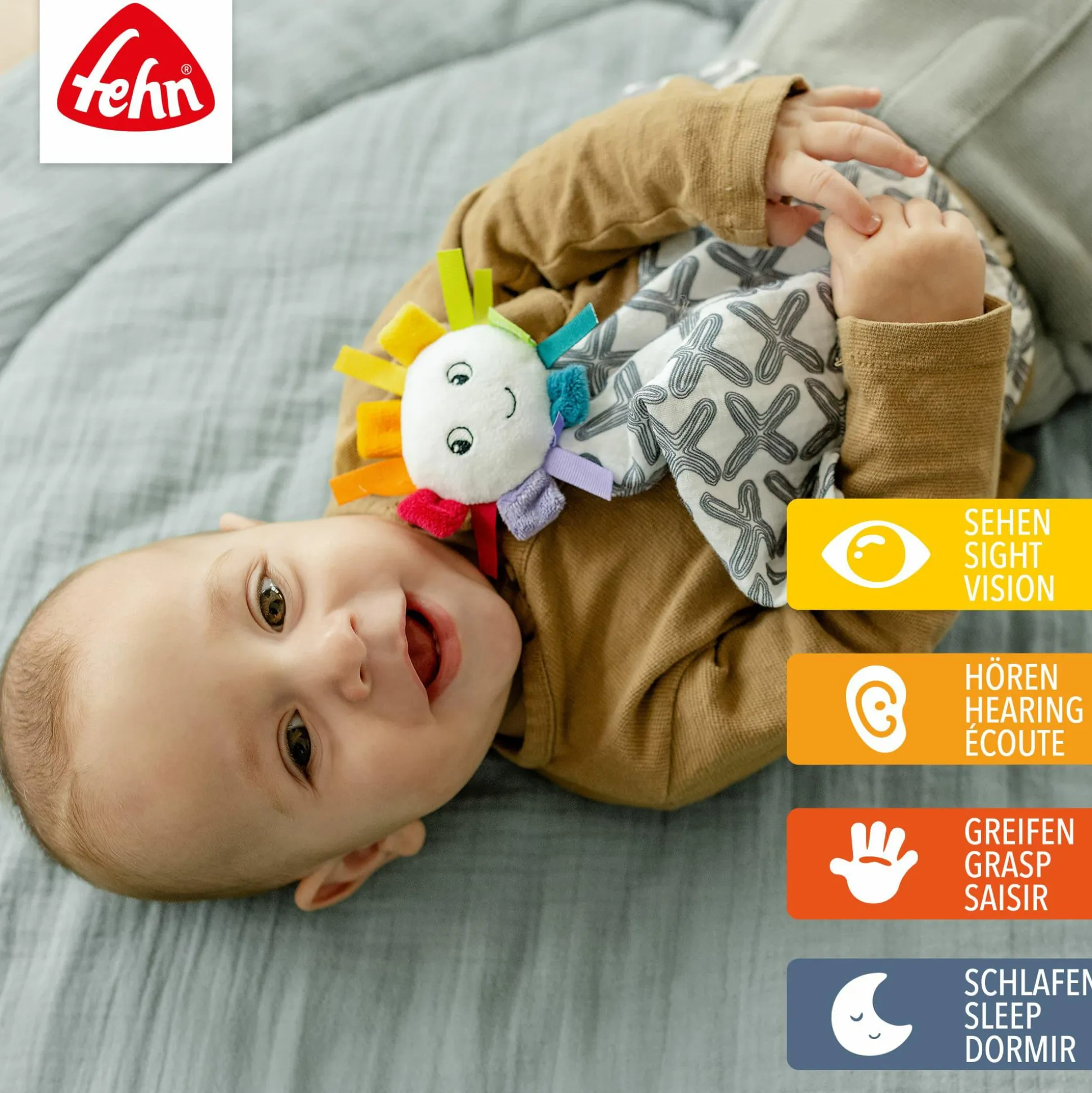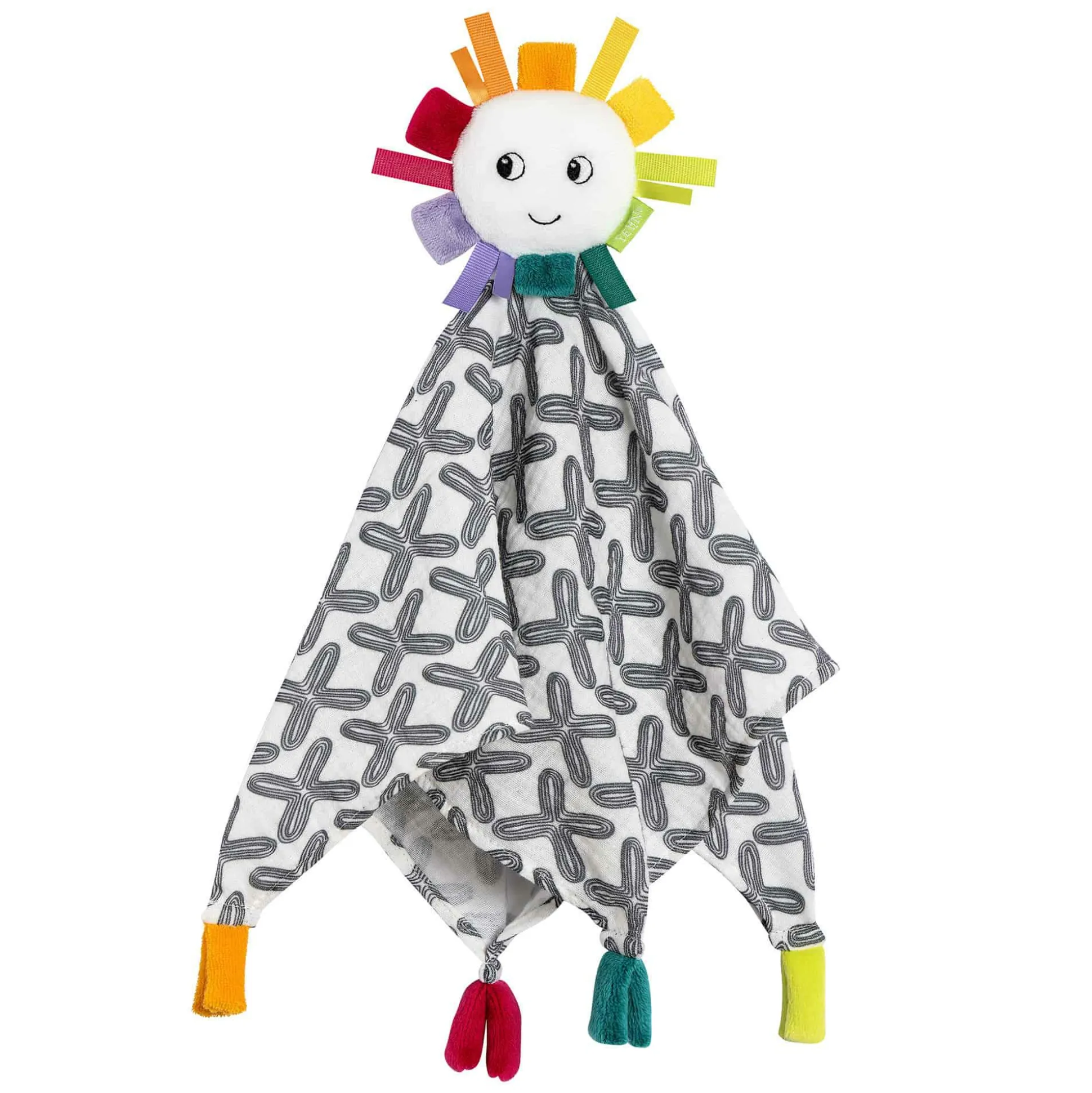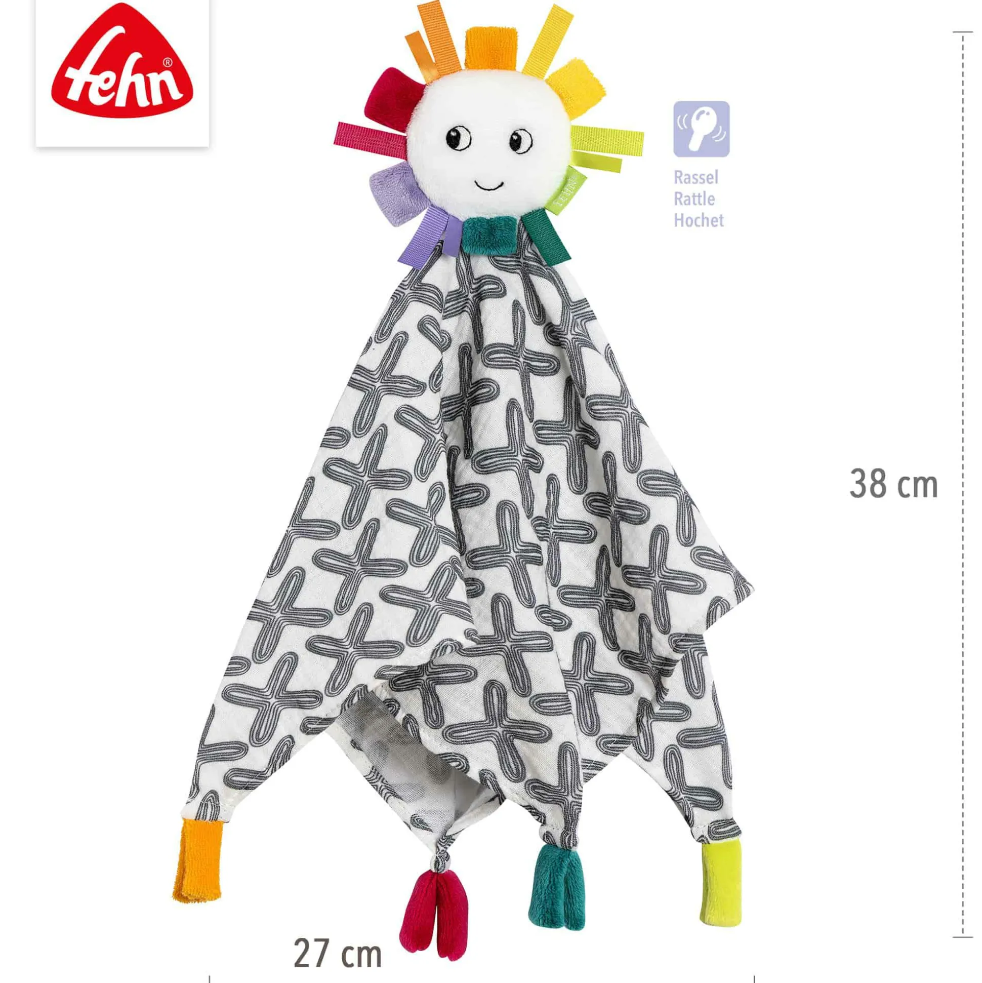 Das Musselin-Schmusetuch Sonne von fehn bringt von Geburt an ein strahlendes Lächeln in den Alltag deines Babys und begleitet es mit ganz viel Wärme und Geborgenheit. Mit seinem freundlichen Sonnenkopf und den bunten Bändchen lädt es zum Entdecken und Kuscheln ein – ein echter Lieblingsbegleiter für die Kleinsten.
