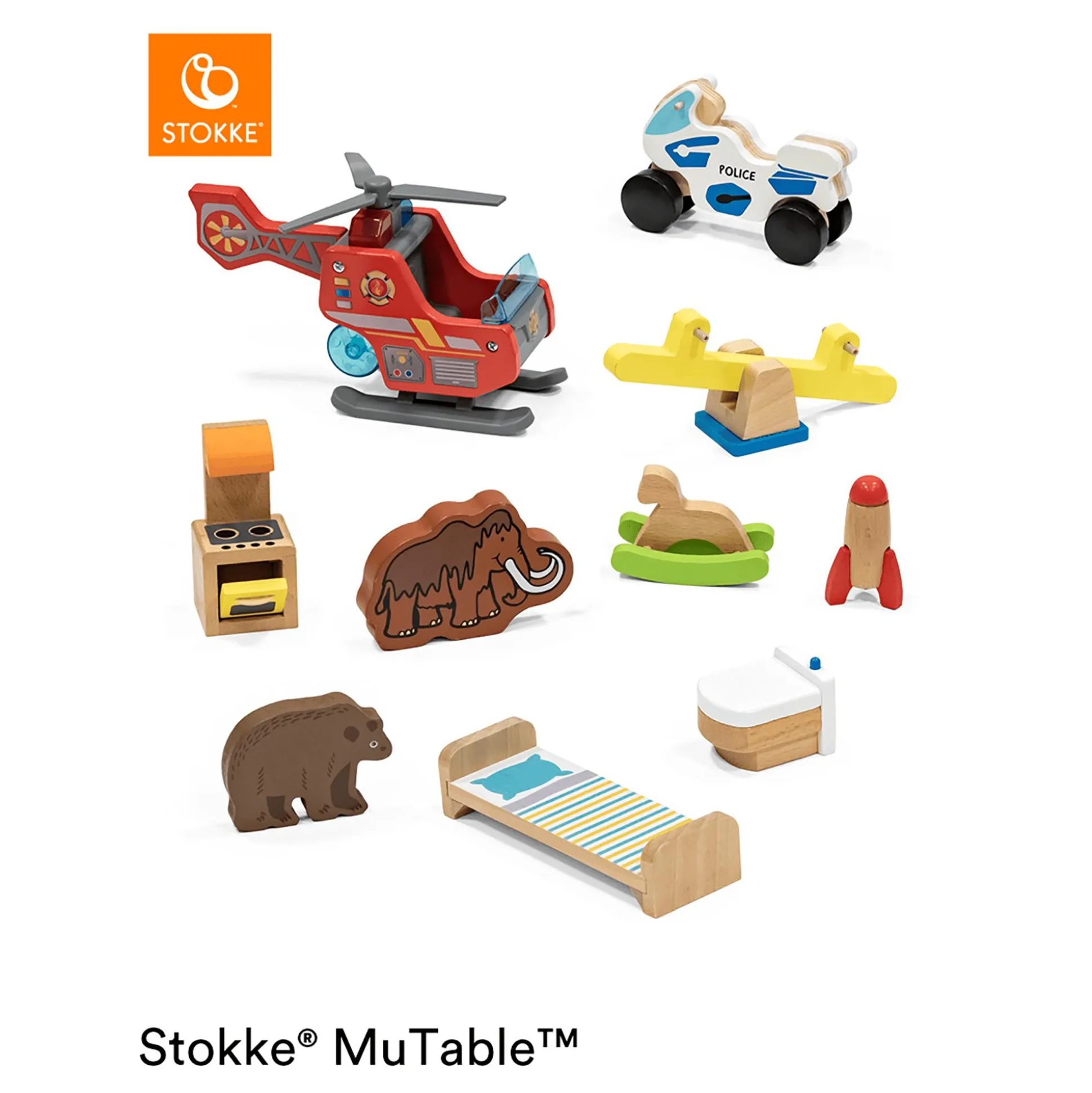 Mit dem Stokke® MuTable™ Spielzeug wird das Spielhaus zu einem Zuhause. Das Set besteht aus 10 wunderschönen, farbenfrohen Lernspielzeugen wie Hubschrauber, Mobiliar, Tiere und vieles mehr. Dein kleiner Schatz kann seiner Fantasie beim Gestalten der Räume freien Lauf lassen und sich spannende Geschichten ausdenken und erzählen. Szenarien, die dem wahren Leben ähneln, ermutigen Kinder, über ihre Gedanken und Gefühle zu sprechen. Fantasiespiele helfen Kindern, ihre Umwelt zu begreifen und fördern ihre Kreativität. Sie unterstützen die Entwicklung ihrer sozialen Kompetenz, stärken ihre Fähigkeit, Probleme zu lösen und sich zu organisieren und natürlich auch ihre feinmotorischen Fähigkeiten. Ergänze das Stokke® MuTable™ Spielhaus mit dem Stokke® MuTable™ Spielzeug – für noch mehr Spiel- und Lernspaß.