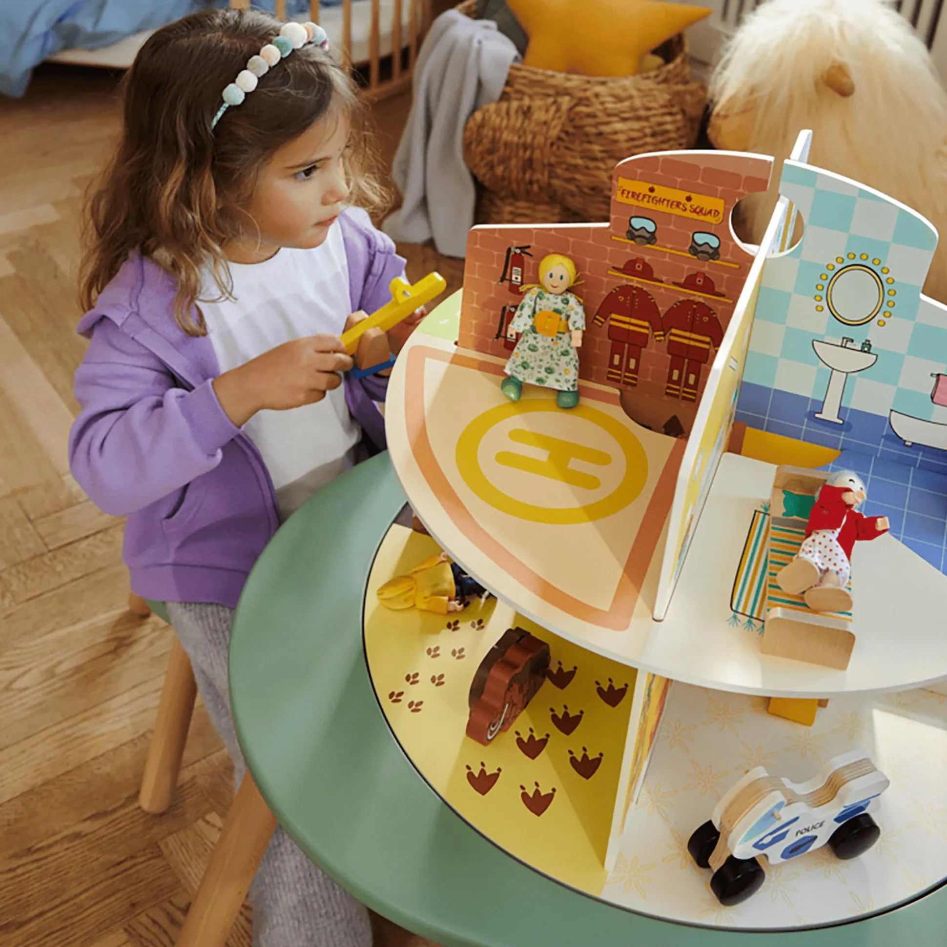 - abgerundete Kanten und stabile Holzbeine sorgen für Sicherheit beim Spiel