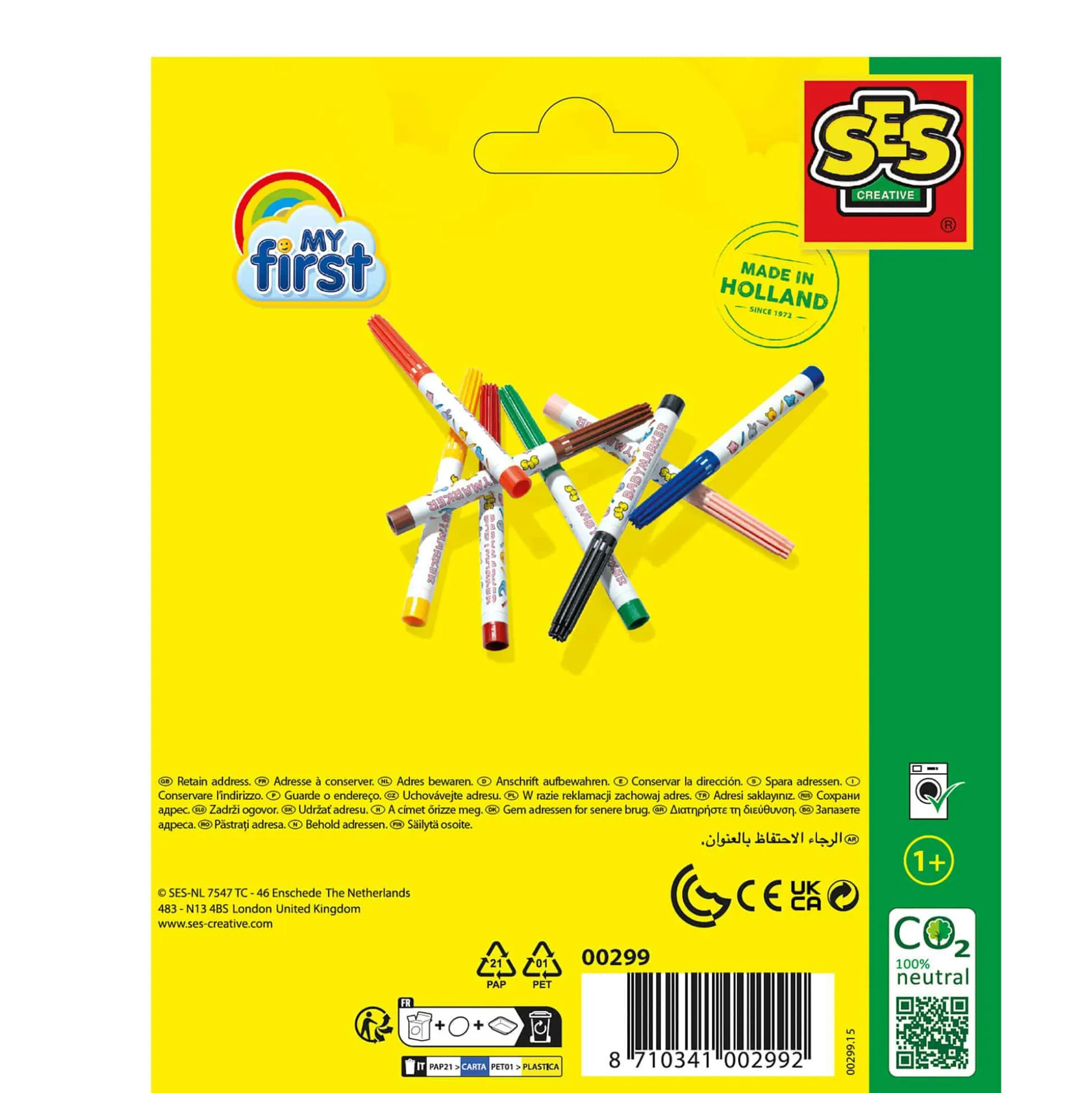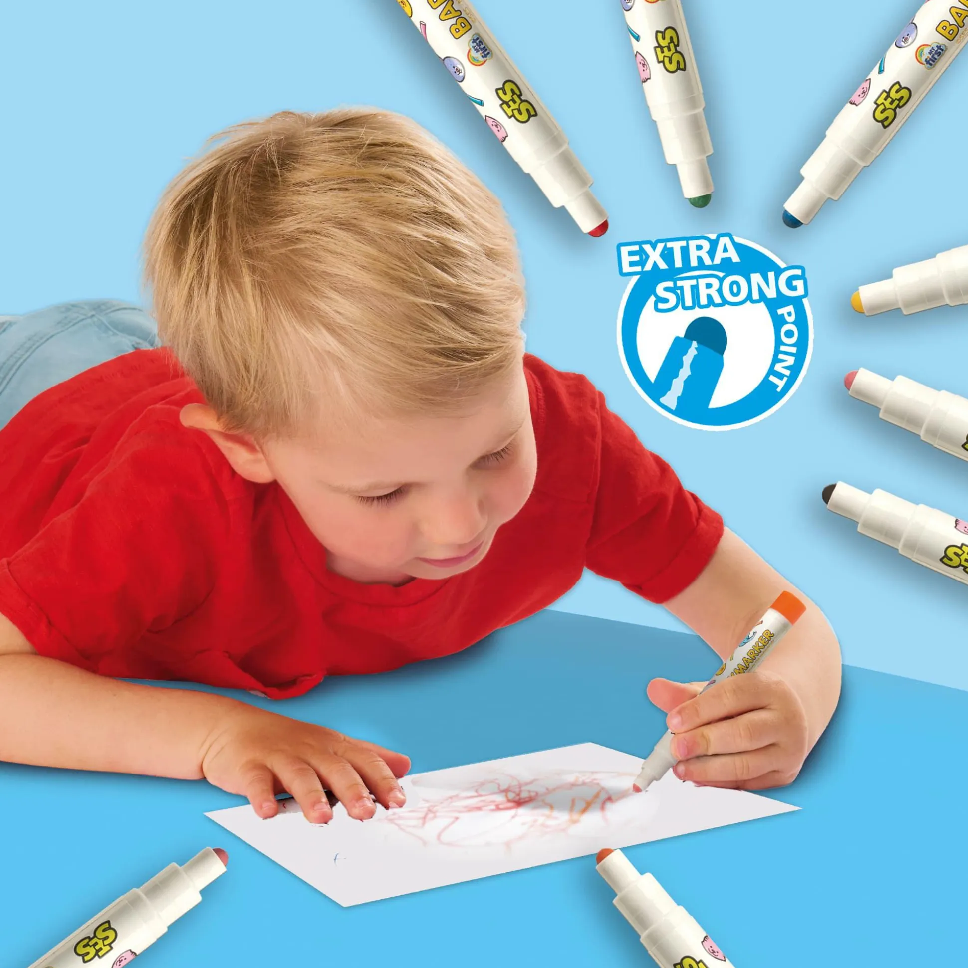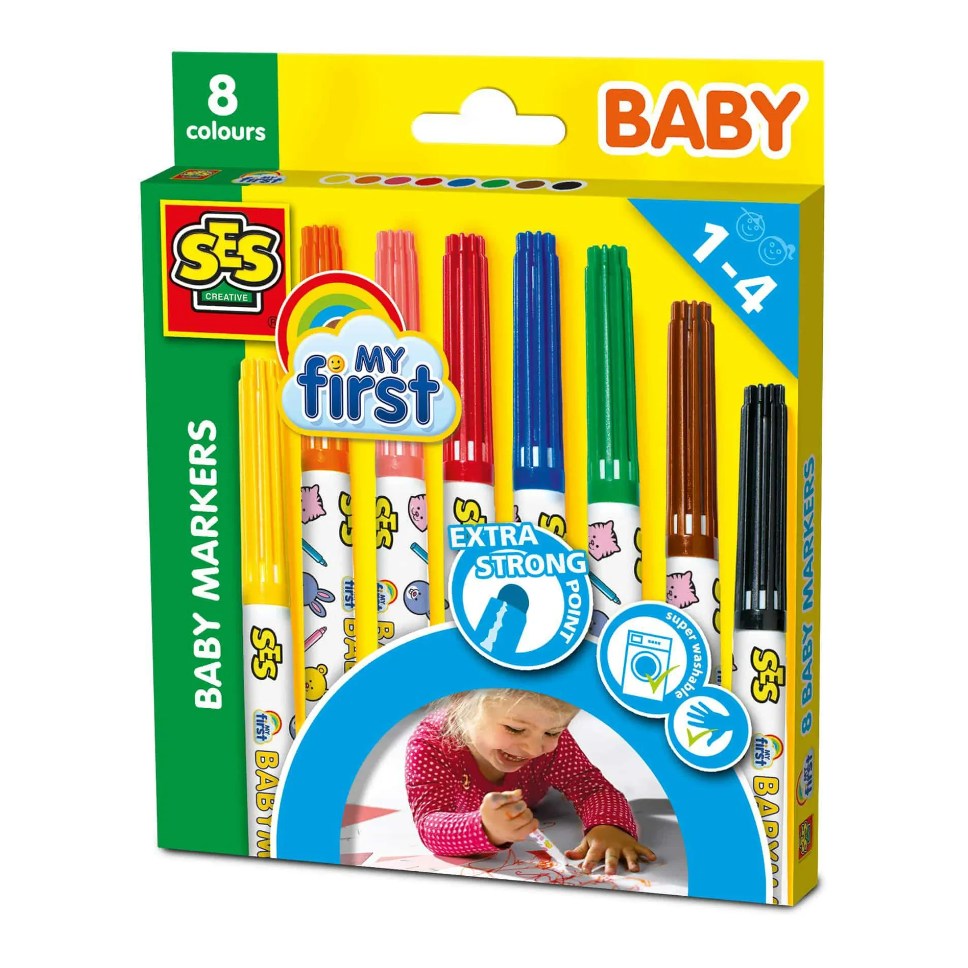 Aller Anfang ist bunt: Mit den My first – Baby Markers von SES CREATIVE können schon die kleinsten Künstler mutig ihre ersten Striche ziehen. Die 8 farbenfrohen Stifte in Gelb, Orange, Rosa, Rot, Blau, Grün, Braun und Schwarz bieten eine tolle Palette für erste bunte Kunstwerke. Dank der speziell abgerundeten Spitze sind sie perfekt auf die Bedürfnisse von Malanfängern zugeschnitten, da sie aus jedem Winkel Farbe abgeben und besonders sicher in der Handhabung sind. So wird das Papier im Nu zum bunten Spielplatz.