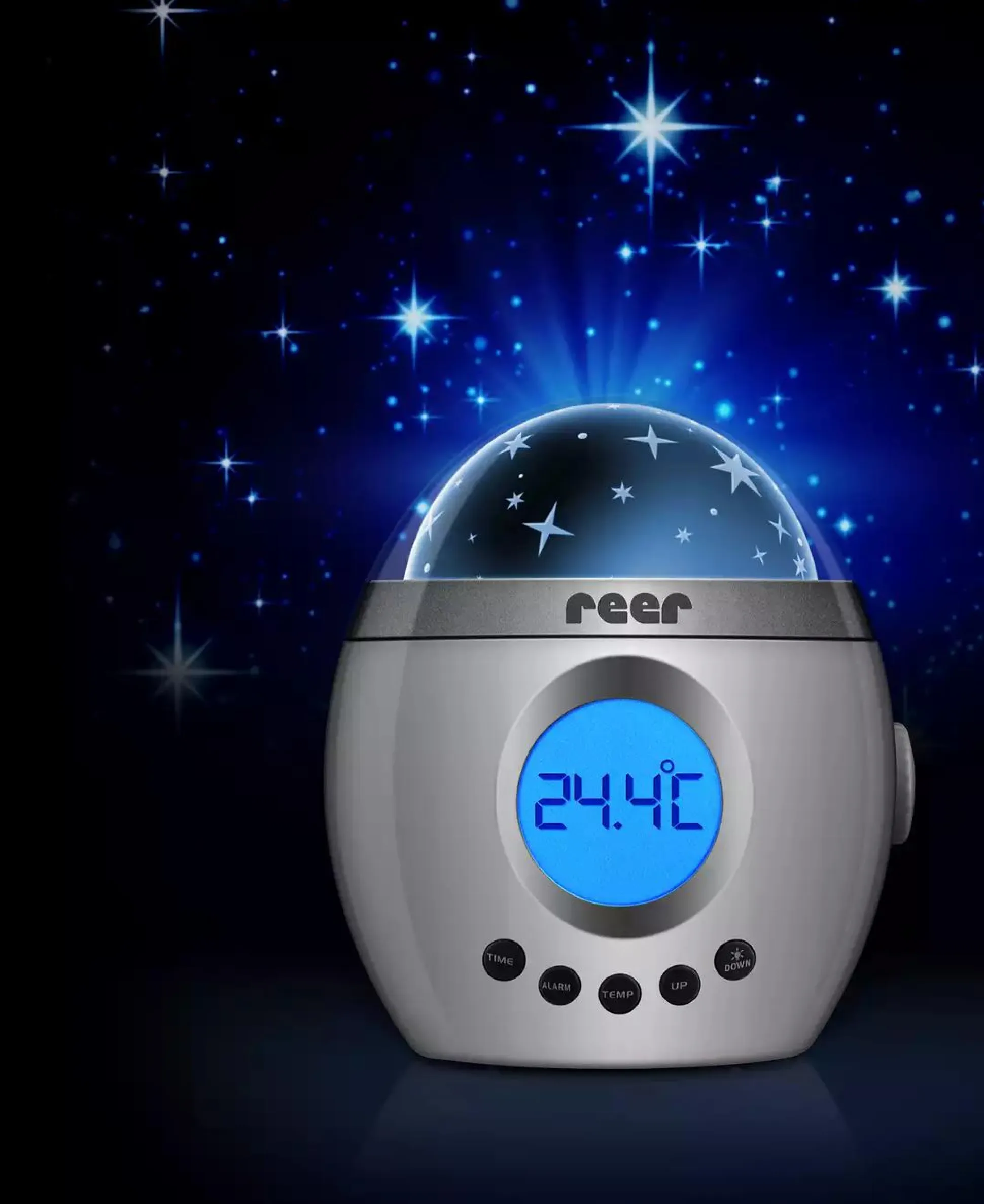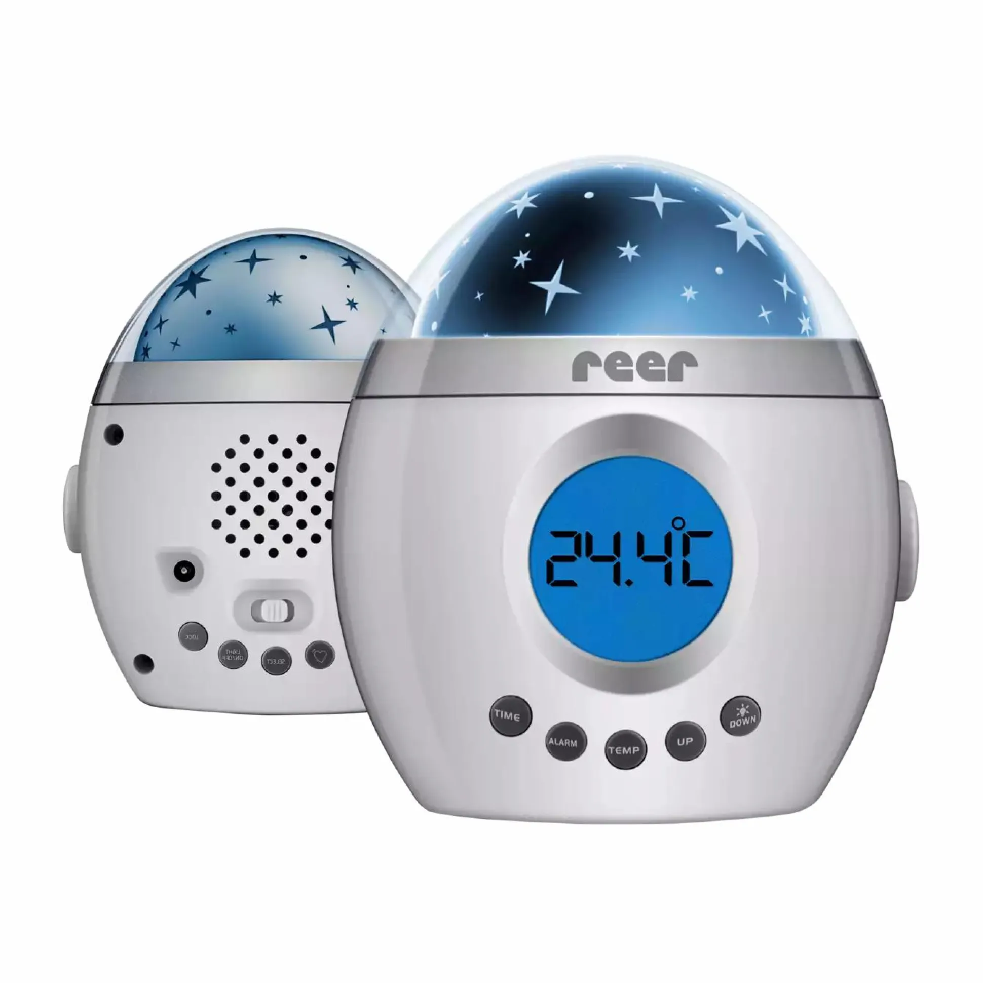 Dieses kindgerechte Einschlaflicht von reer überzeugt durch seine beruhigende Lichtprojektion mit Sternenhimmel und Farbwechsel. Das ist mit einer Musikfunktion und AUX-Anschluss ausgestattet, damit auch die Lieblingslieder und Hörbücher vom Smartphone, MP3-Player und PC abgespielt werden können.