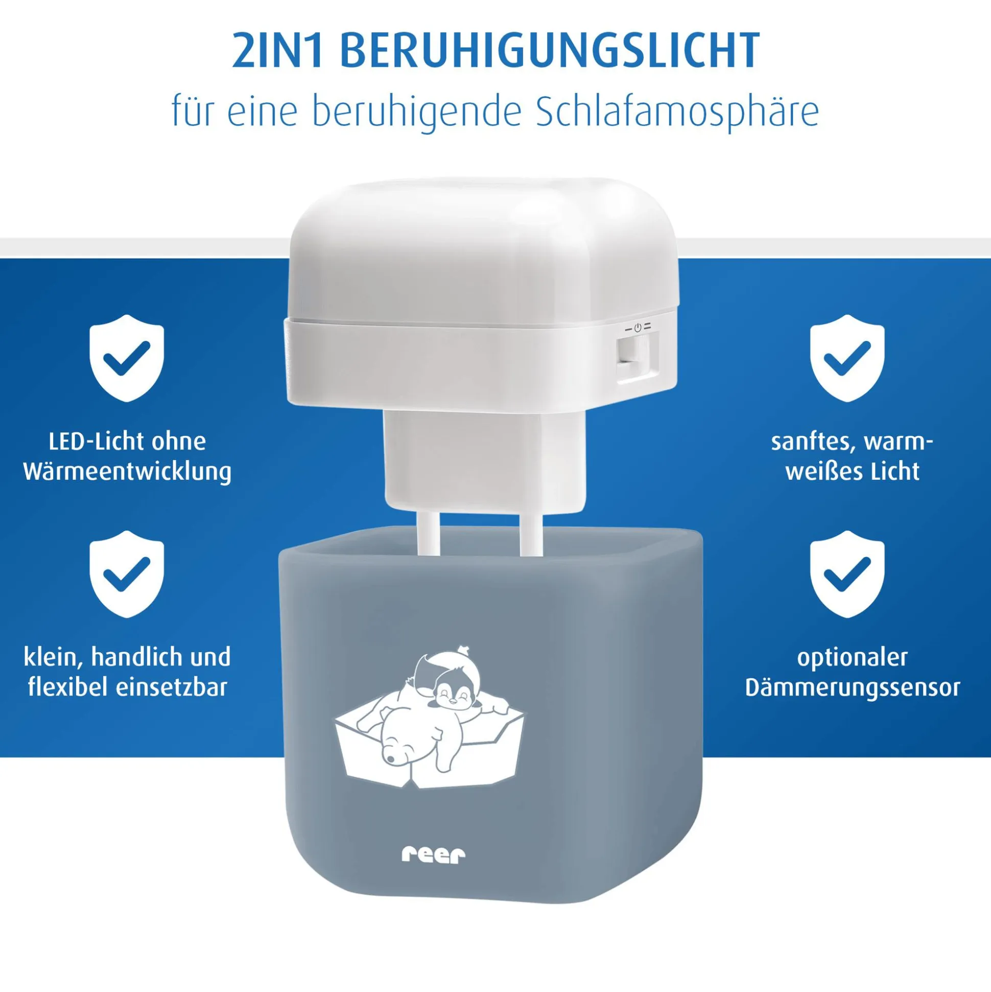 Ein echtes Allroundtalent: das Nachtlicht 2in1 SleepLight Eisbär von reer. Es ist ein mobiles Steckdosennachtlicht sowie akkubetriebenes Schlummerlicht und sorgt für eine beruhigende Schlafatmosphäre bei deinem kleinen Nachwuchs. Dazu dient es beim nächtlichen Erwachen als schnelle Orientierungshilfe und schenkt deinem Kind Geborgenheit und ein sicheres Gefühl. Ob als beruhigendes Schlummerlicht oder als praktischer Wegweiser im Flur – das tolle Nachtlicht passt sich den Bedürfnissen deines Kindes flexibel an. Außerdem schafft das sanft leuchtende Licht eine kleine Licht-Insel und taucht das Kinderzimmer in eine wohlige Schlafumgebung.