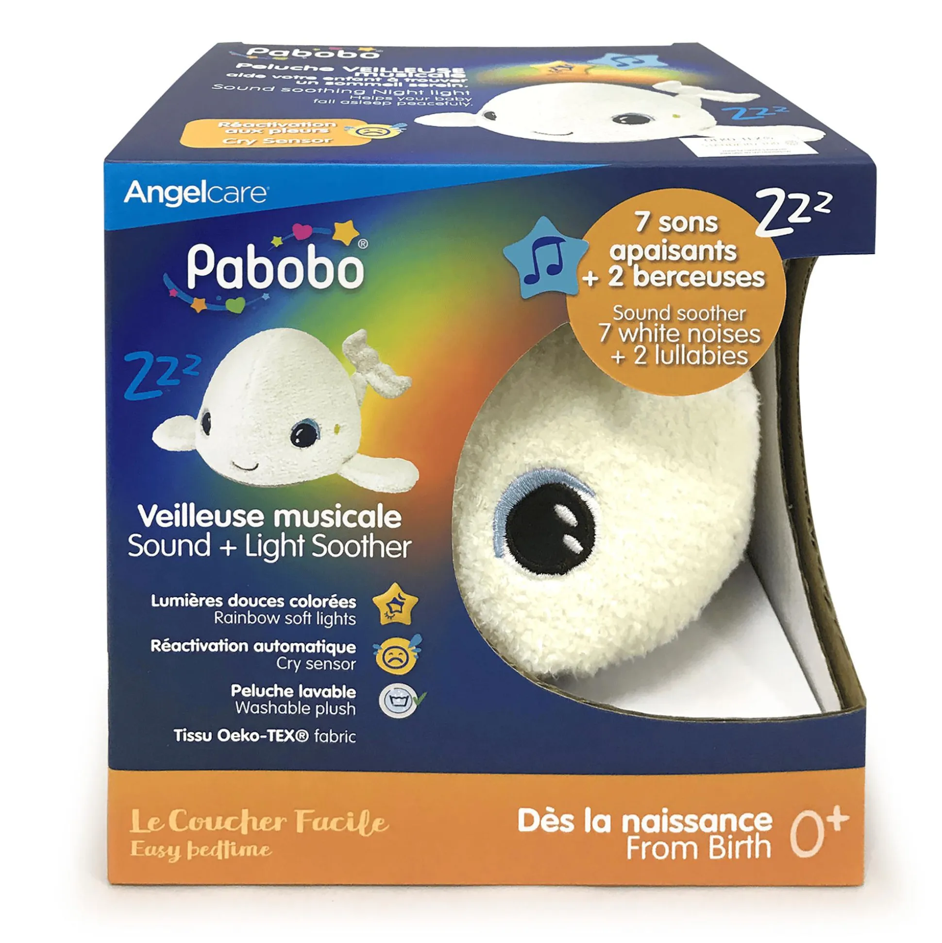 Das Nachtlicht Pabobo Beluga von Angelcare ist eine kuschelweiche Einschlafhilfe für deinen kleinen Schatz. Das Tier ist mit einem Sound- und Lichtmodul, sodass es für eine beruhigende Atmosphäre beim Zubettgehen sorgt.Das Nachtlicht kann im weißen Nachtlichtmodus mit drei Stufen oder im Regenbogenmodus mit automatischem Farbwechsel leuchten. Mit zwei Wiegenliedern und sieben verschiedenen Geräuschen (Herzschlag, Regen, Wellen, Staubsauger, Ventilator, Waschmaschine und Sommernacht) kannst du die perfekte Melodie oder den passenden Klang wählen.