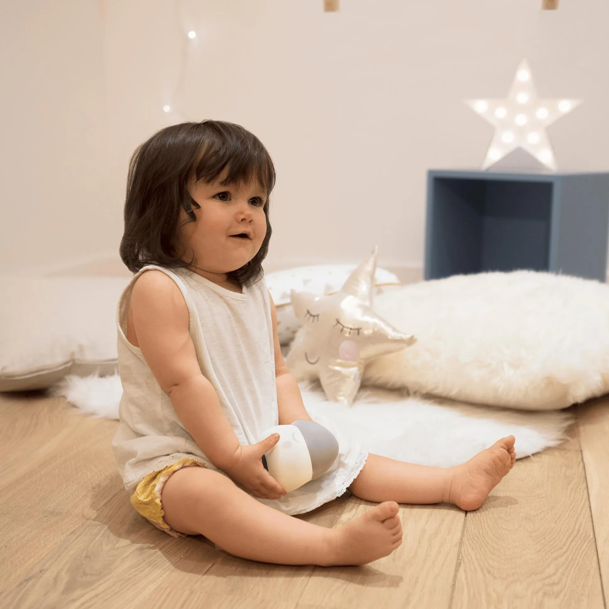 Dieses magische babymoov Nachtlicht Squeezy geleitet deinen Nachwuchs sanft ins Land der Träume und beruhigt es während der Nacht. Zum Einschalten ganz einfach drücken und wie von Zauberhand wird es Licht. Drücke mehrmals, um die Lichtstärke einzustellen – und ein letztes Mal, um das Licht auszuschalten. Dank des Soft Touch-Materials ist Squeezy so weich, dass du es sogar mit im Kinderbett platzieren kannst.
