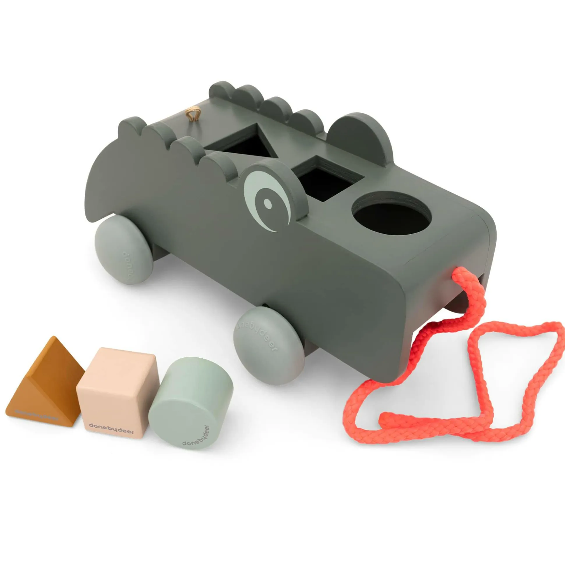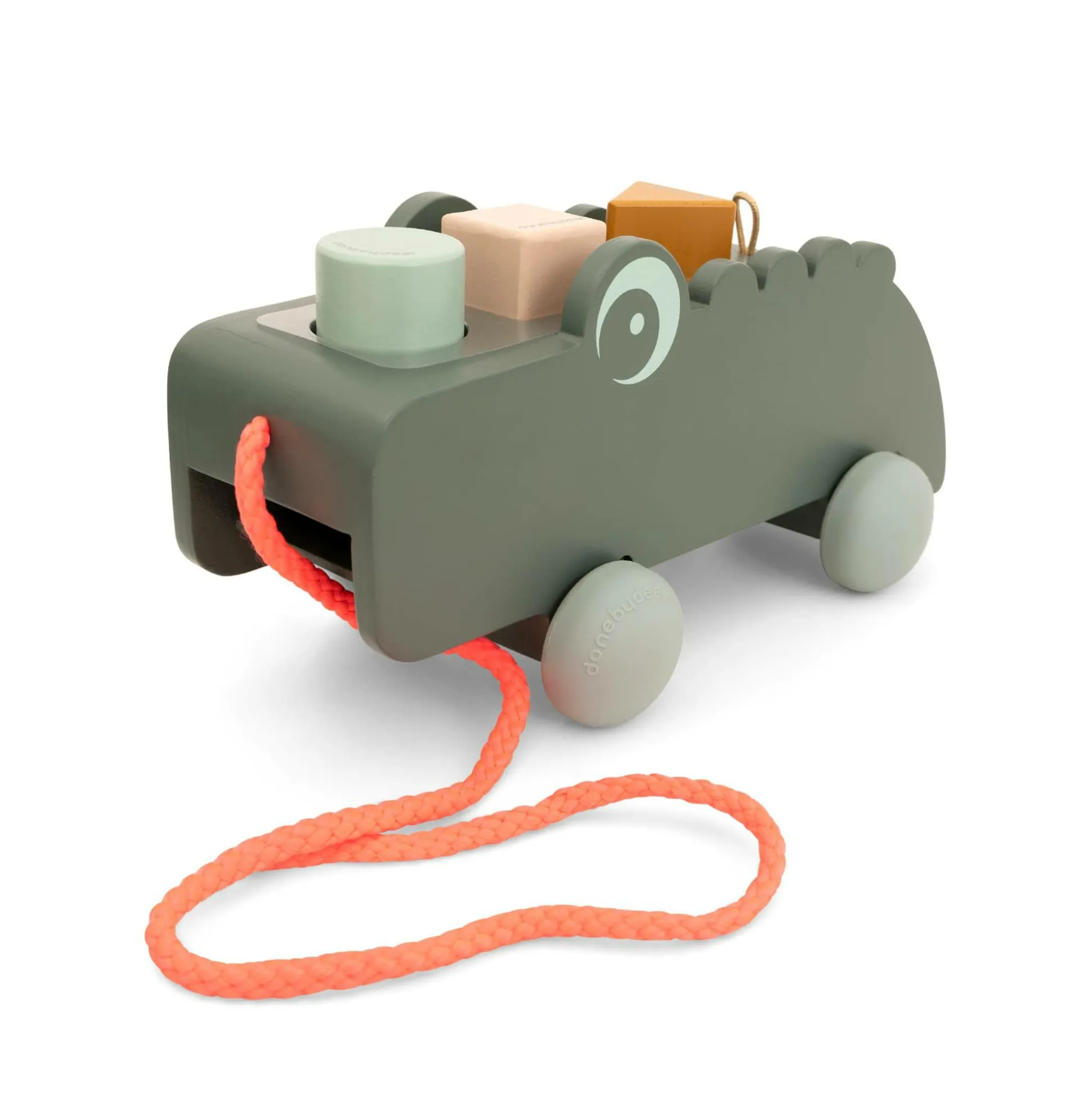 Das Nachziehtier Croco ist ein weiches, liebenswertes Krokodil auf einem Wagen, der sich dank seiner Form und seines geringen Eigengewichts optimal für kleine Kinderhände zum Festhalten und Schmusen eignet. Die Magnetfüße von Croco sind an Magneten befestigt, die im Wagen versteckt sind, und können leicht abgenommen werden, wenn es zum Schlafengehen benötigt wird. Croco das Nachziehtier wurde entwickelt, um die motorischen Fähigkeiten von Kindern auf spielerische Weise zu entwickeln und zu stärken.