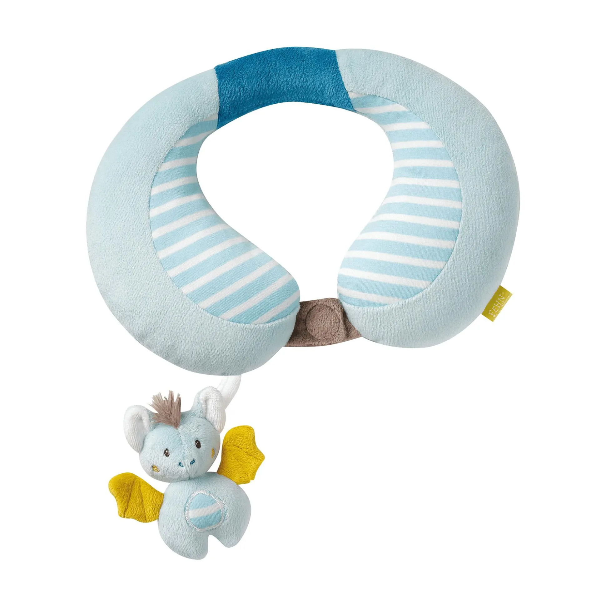 Die Nackenstütze Fledermaus von fehn ist der perfekte Begleiter für unterwegs. Mit ihrer ergonomischen Form schmiegt sich das weiche Kissen sanft an den Nacken deines Babys und sorgt für eine entspannte Reise, egal ob im Auto, in der Babyschale oder im Kinderwagen. Die niedliche Fledermaus mit integrierter Rassel bringt zusätzlich Spaß und Ablenkung. Dank des praktischen Klettverschlusses bleibt das Köpfchen sicher gestützt, während der pflegeleichte Stoff sich leicht in der Waschmaschine reinigen lässt und immer kuschelig weich bleibt.