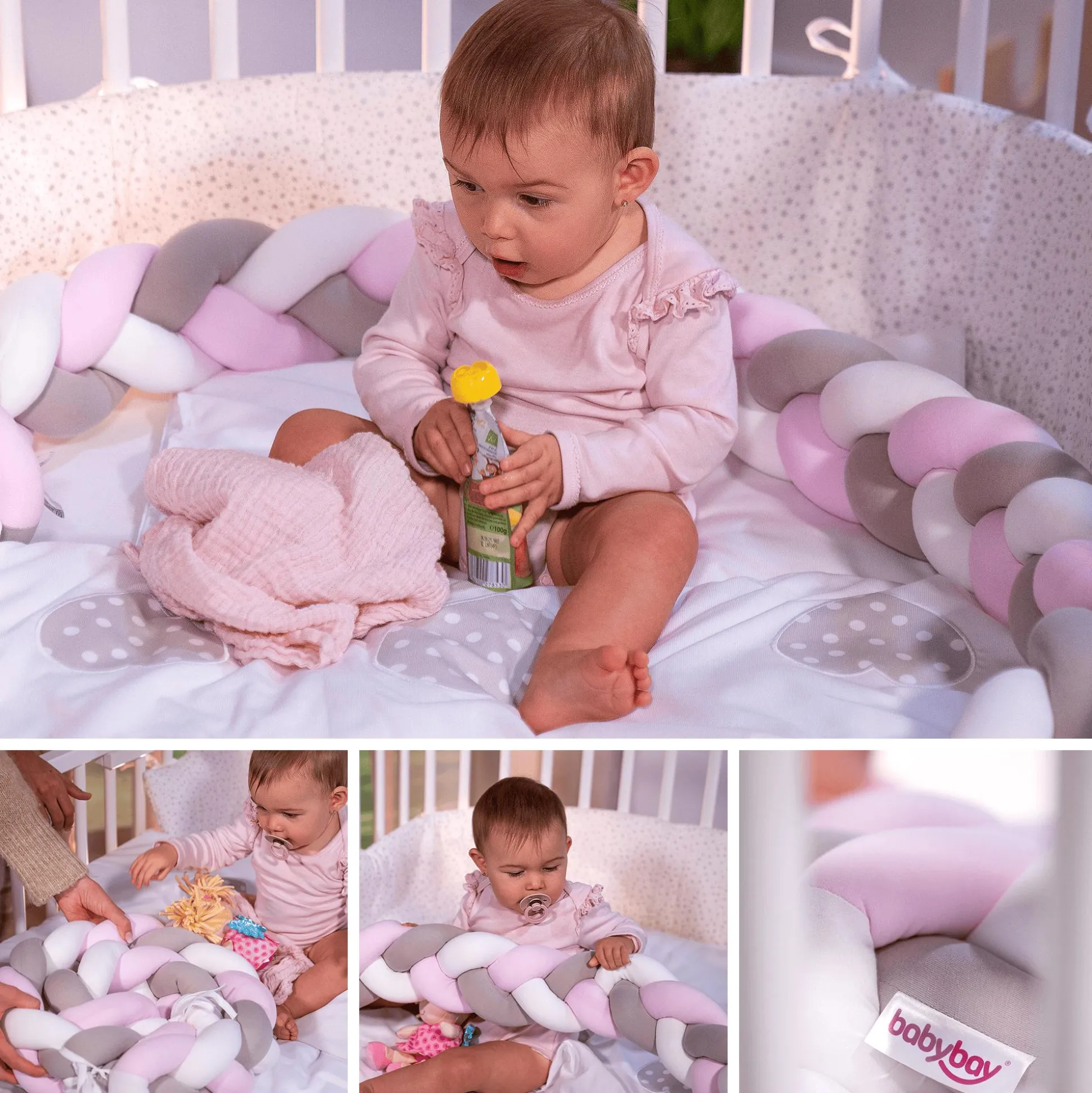 | Color | Pink, RosaVorteilvielseitig verwendbarschützt Baby's Köpfchen sicher vor harten Gitterstäben und ZugluftMaterialStoff 100% BaumwolleFüllung 100% Polyester |