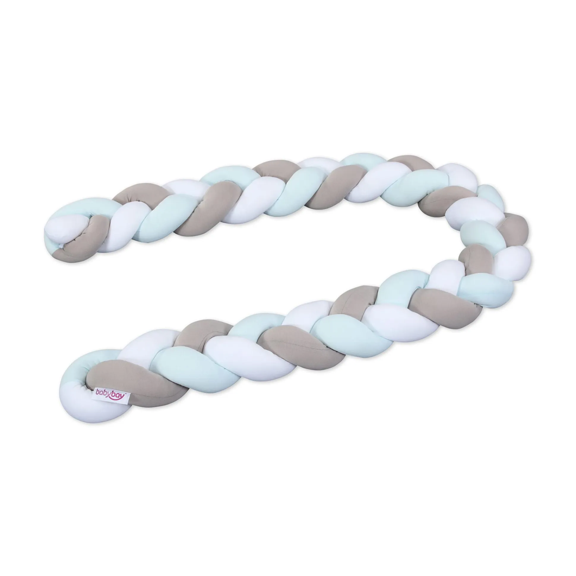 Ein ausgewogener Schlaf ist für Kinder sehr wichtig. Die geflochtene Nestchenschlange von Tobi schützt zuverlässig den Kopf deines Babys vor harten Gitterstäben, kalten Wänden, Lärm und schafft eine angenehme und ruhige Schlaf-Atmosphäre. Aus weichem gekämmten Jersey, händisch gefertigt und mit antiallergischer Silikonwolle gefüllt, hat die Tobi Nestchenschlange eine ausgezeichnete Qualität, ist formstabil und sorgt für Sicherheit und Komfort deines Kindes. Darüber hinaus ist die Nestchenschlage vielseitig verwendbar – im Laufstall, als Spielgefährte oder Zugluftstopper. Zusammengerollt und mit den Bändchen fixiert ist sie auch als Sitzkissen bestens geeignet. Die Jersey-Nestchenschlange geflochten ist außerdem bis 40°C waschbar.