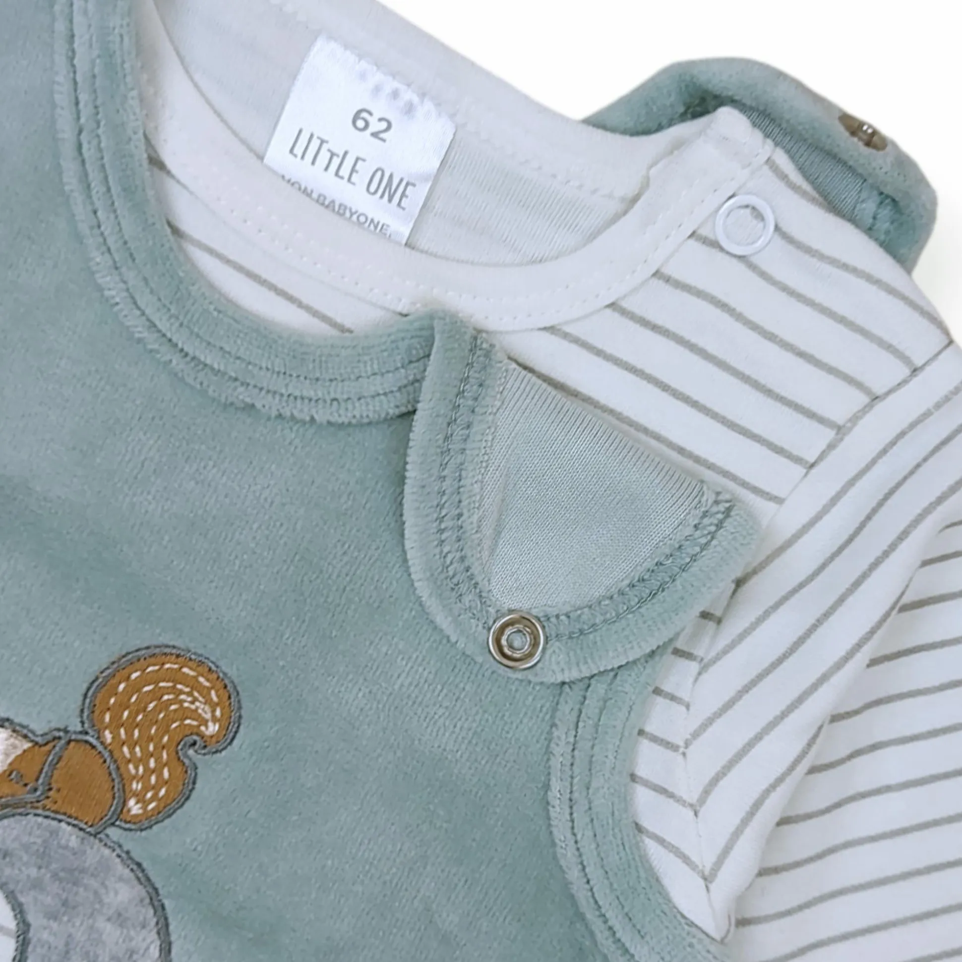 Dieses niedliche Set bestehend aus Strampler und Langarmshirt begeistert mit seinem zuckersüßen Elefanten-Motiv und seiner kuscheligen Qualität. Der mintfarbene LITTLE ONE Strampler sowie das geringelte Oberteil besitzen zudem praktische Druckknöpfe auf den Schultern, die dir und deinem kleinen Liebling das An- und Ausziehen der Kombi erleichtern.