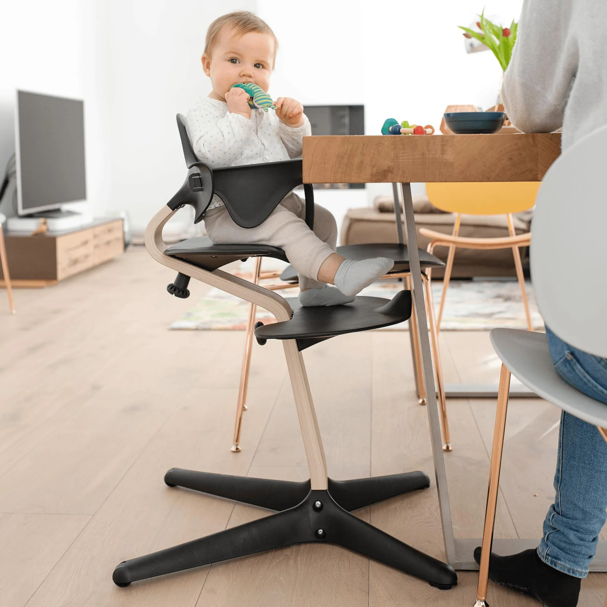 Das Stokke® Nomi® Baby Set bietet deinem Kind, ähnlich wie ein schützender Arm, Komfort und Halt, während es lernt, zu sitzen, wobei es sich trotzdem frei bewegen kann. Der einfach anzubringende Bügel rastet einfach ein, zuerst unter dem Sitz und dann an der Rückenlehne. Die abgerundeten organischen Konturen schaffen einen bequemen Hochstuhl mit uneingeschränkter Bewegungsfreiheit – ideal für die Entwicklung des Kleinkindes, wenn es am Familientisch entdeckt, probiert und interagiert.