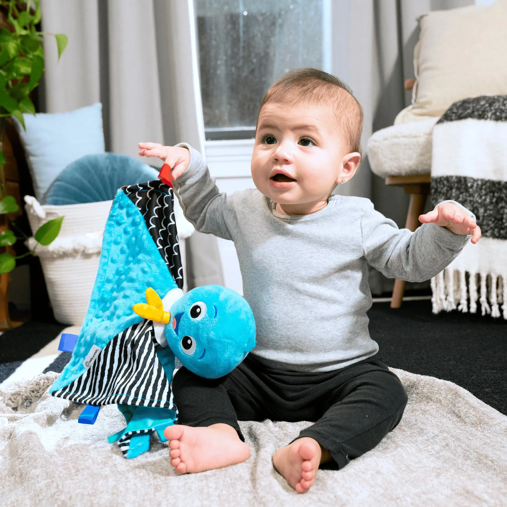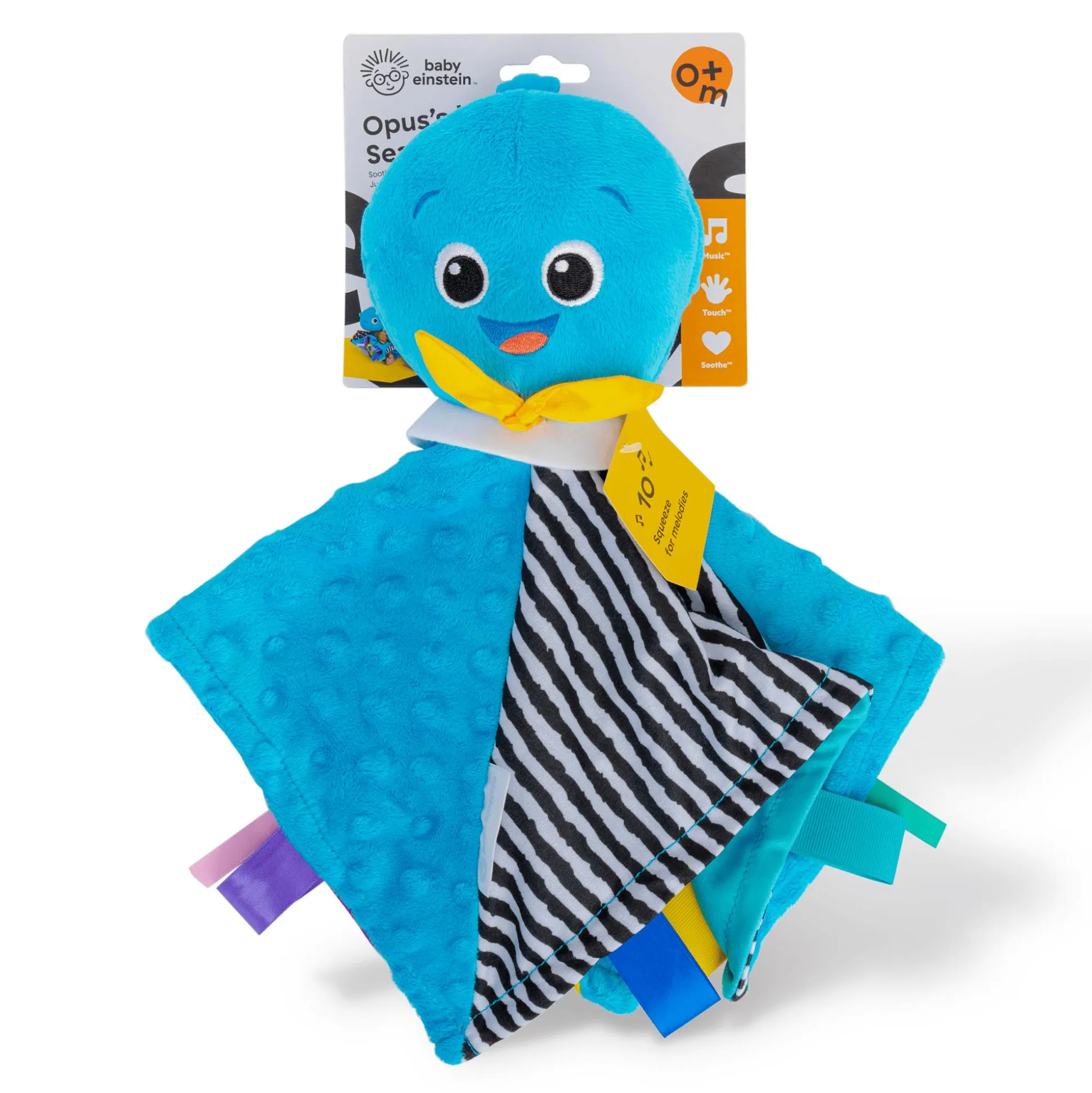 Baby Einstein Ocean Explorers Opus’s Look Sea Listen ist ein weiches, musikalisches Plüschspielzeug, das dein Baby mit Musik, kontrastreichen Farben und Mustern sowie verschiedenen Texturen beschäftigt und es beruhigt. 6 klassische Melodien besänftigen das Baby, während helle, kontrastreiche Farben den Sehsinn des Babys anregen. Unterschiedliche Texturen und Bänder animieren die kleinen Finger zum Erforschen und fördern die taktile Stimulation. Das kleine Plüschtier ist ein beruhigender Begleiter für zu Hause und unterwegs.