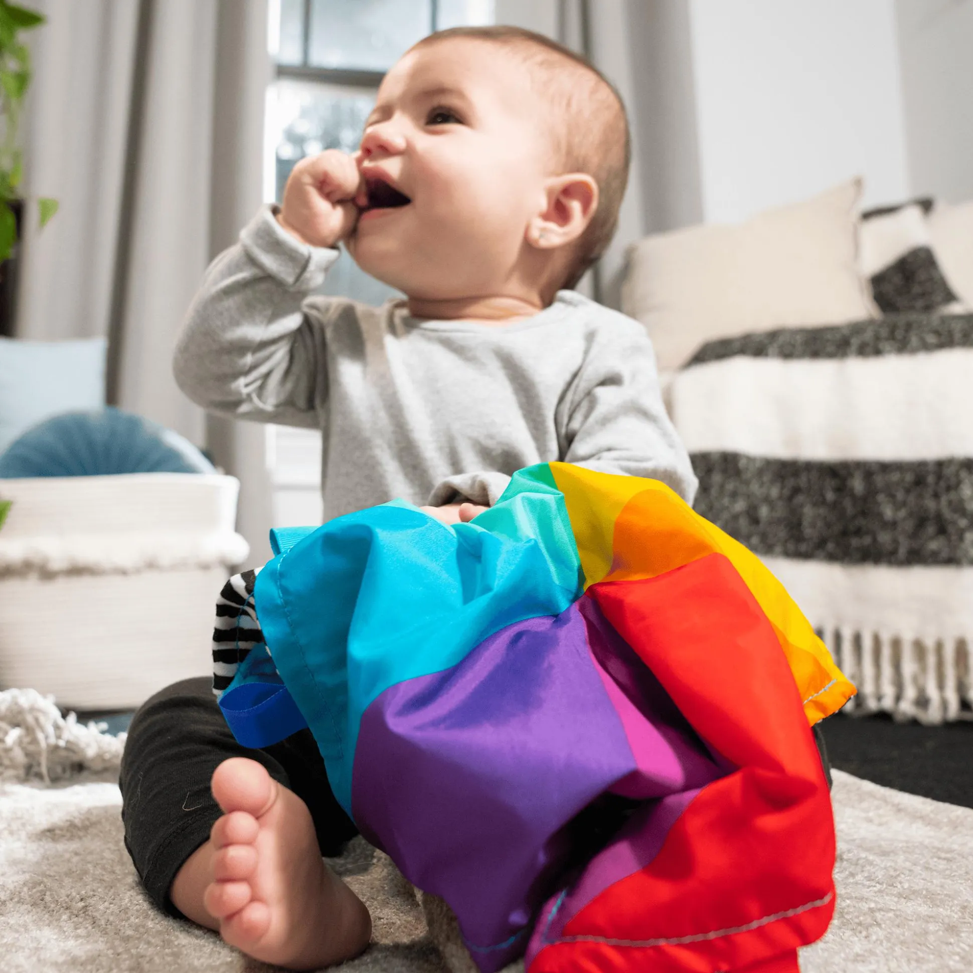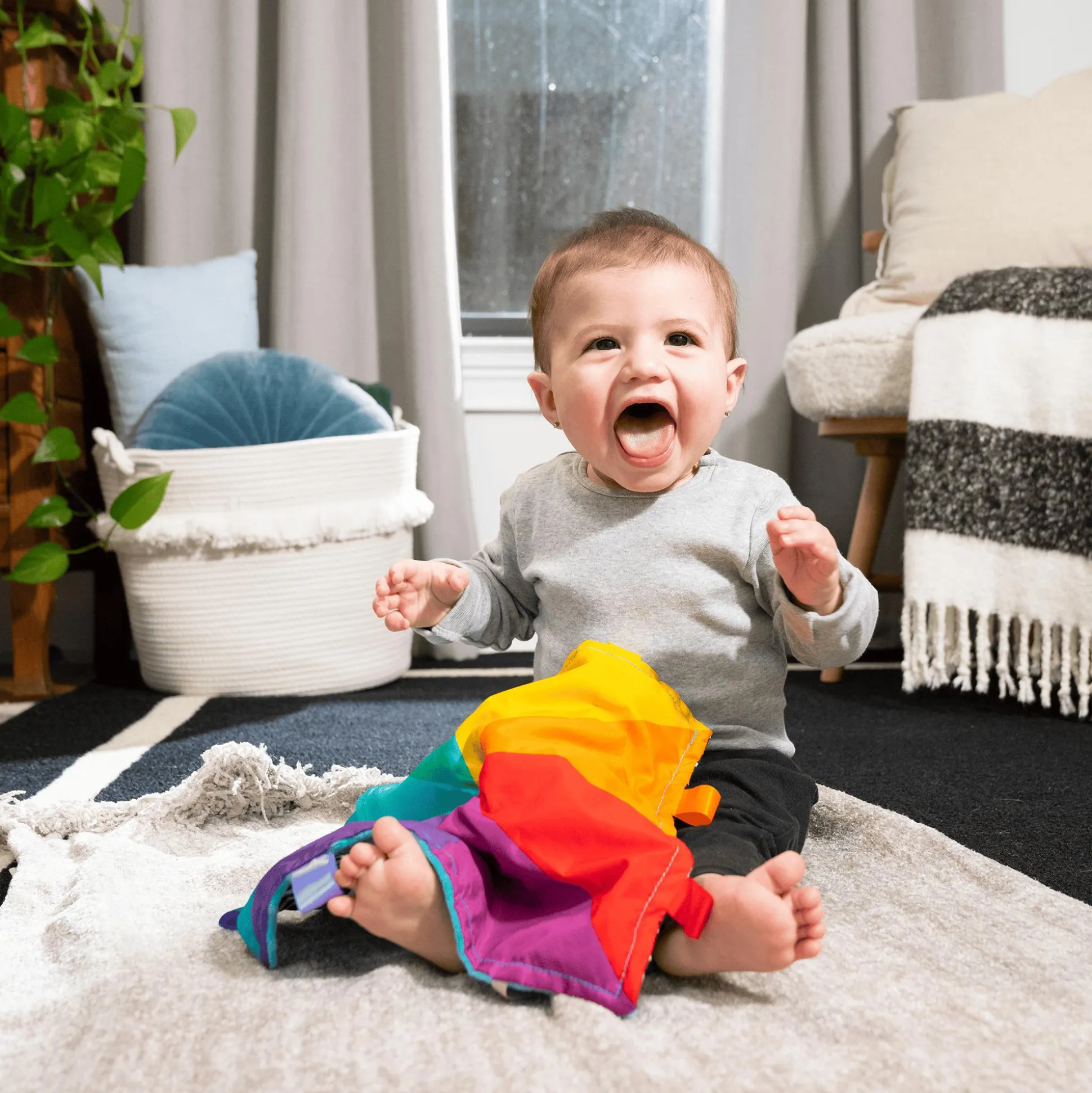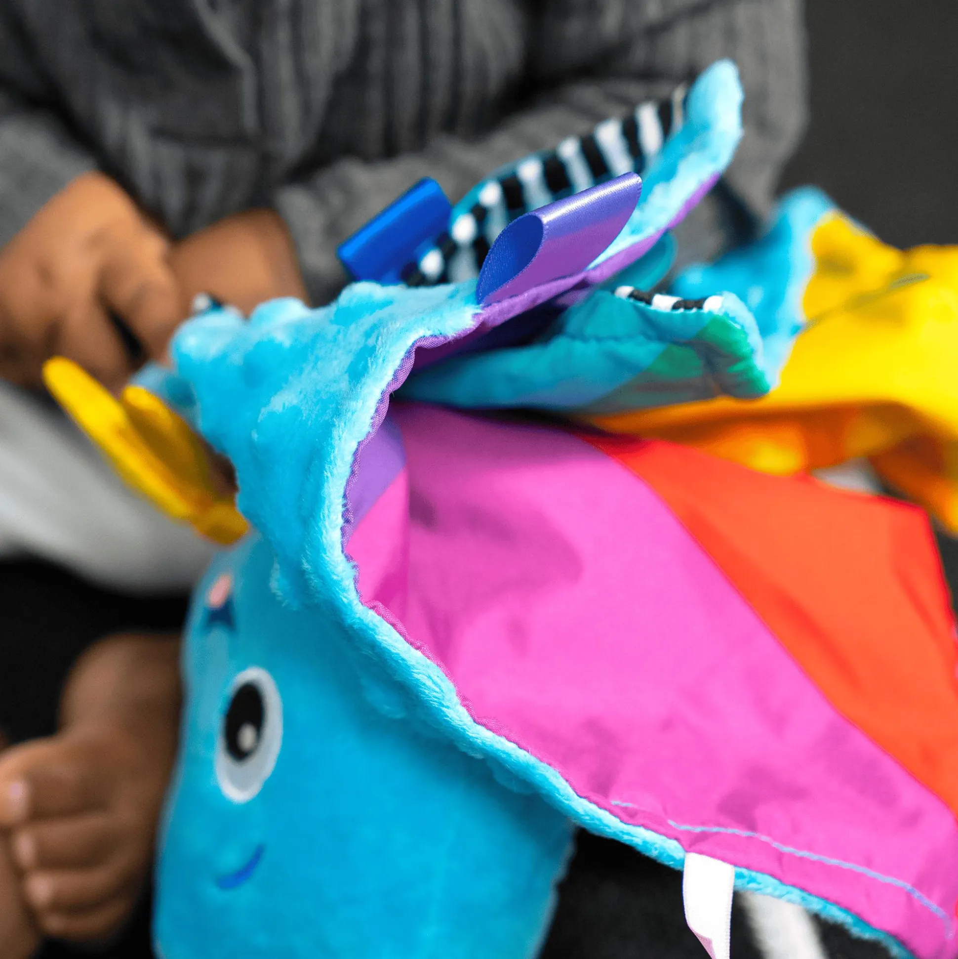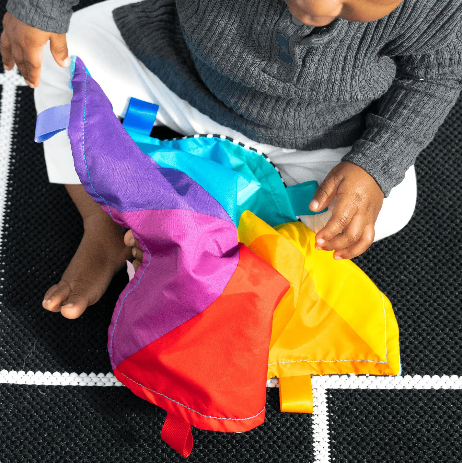 - unterschiedliche Texturen und Bänder regen den Tastsinn deines Babys an