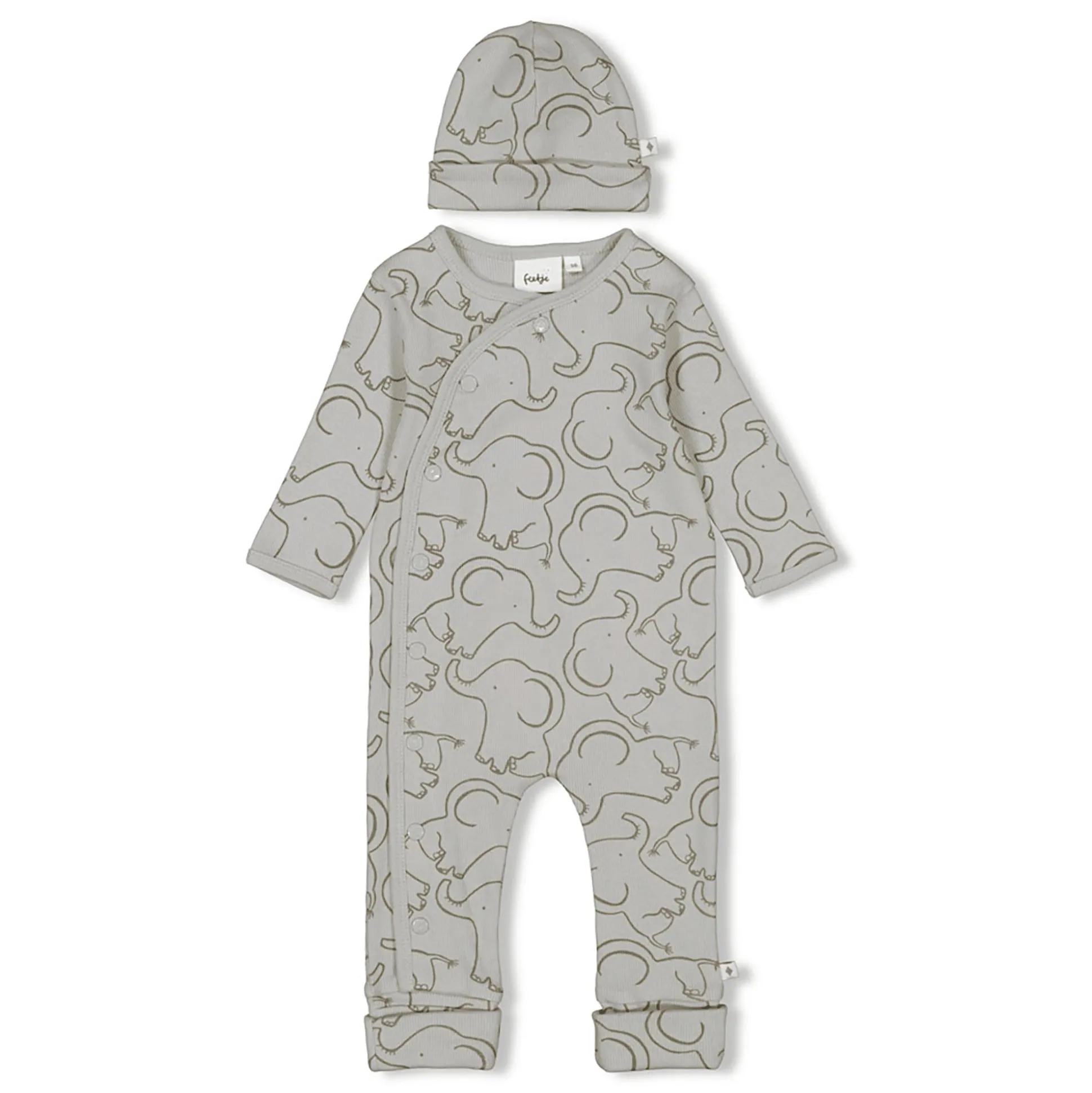 Dieses entzückende Set von Feetje besteht aus einem kuschelweichen Overall und einer niedlichen Mütze, die mit einem hohen Anteil an Baumwolle für ultimativen Komfort sorgen. Die durchgehende Druckknopfleiste erleichtert nicht nur das An- und Ausziehen, sondern verleiht auch diesem Outfit eine extra Portion Funktionalität. Das liebevoll gestaltete Elefanten-Motiv macht deinen kleinen Schatz zum echten Hingucker. Verpackt in einer zauberhaften Geschenk-Box sind dieser Elefanten-Overall und die passende Mütze nicht nur praktische Kleidungsstücke, sondern auch eine herzerwärmende Geschenkidee!