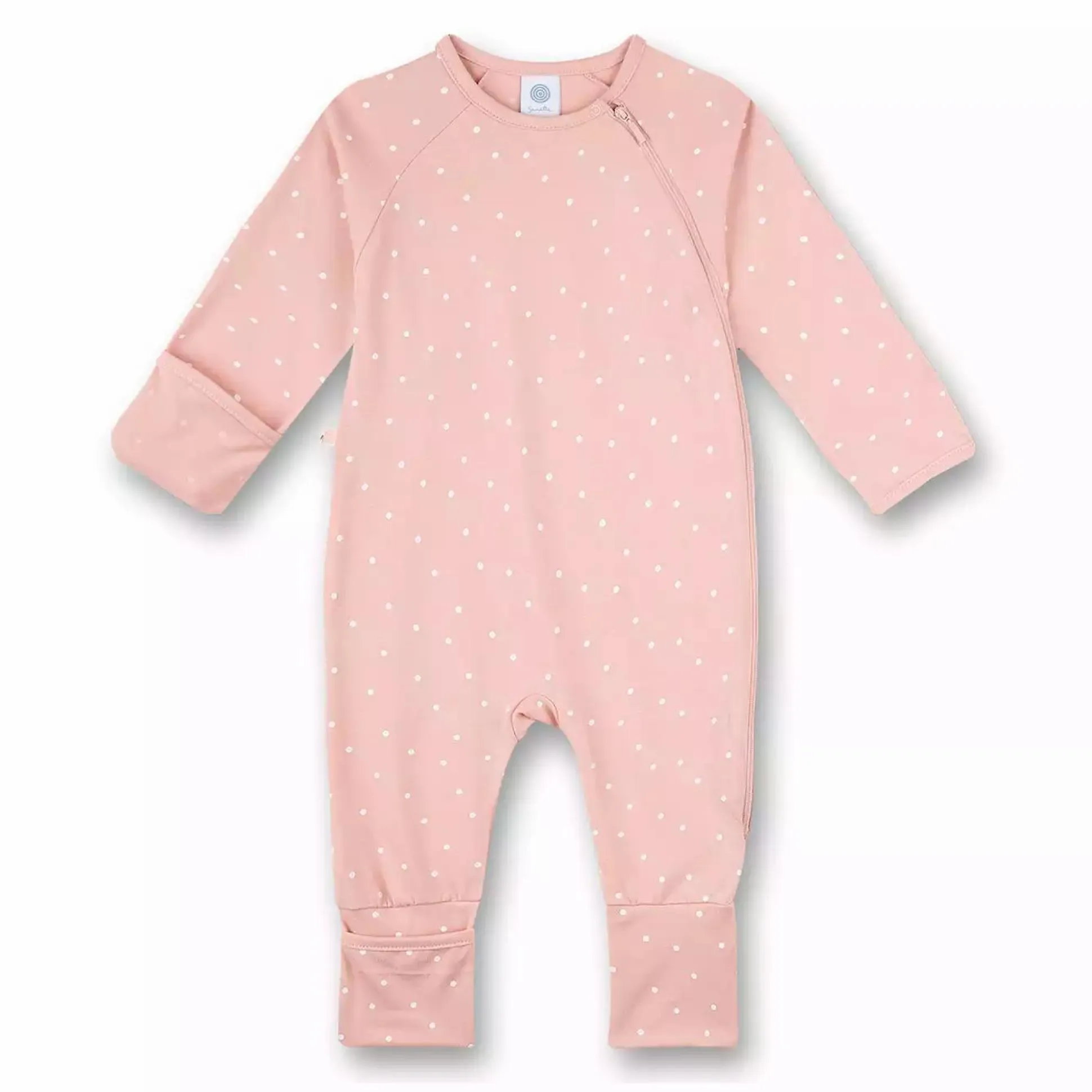 In dem kuscheligen Overall Punkte von Sanetta wird sich dein Kleines dank der reinen Bio-Baumwolle besonders wohl fühlen. Die umklappbaren Füße sind ein weiteres, komfortables Highlight, denn sie können bei Bedarf nach hinten weggeklappt oder an kälteren Nächten einfach über die kleinen Füßchen gezogen werden. Der durchgehende Reißverschluss erleichtert dir zudem das An- und Ausziehen. Verziert wird der Sanetta Overall mit einem wunderschönen Allover-Print aus Punkten.