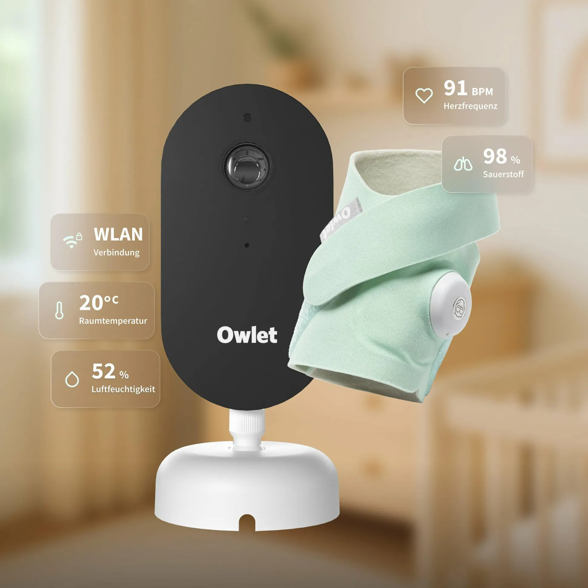 - alle Werte jederzeit in der Owlet Dream App abrufbar