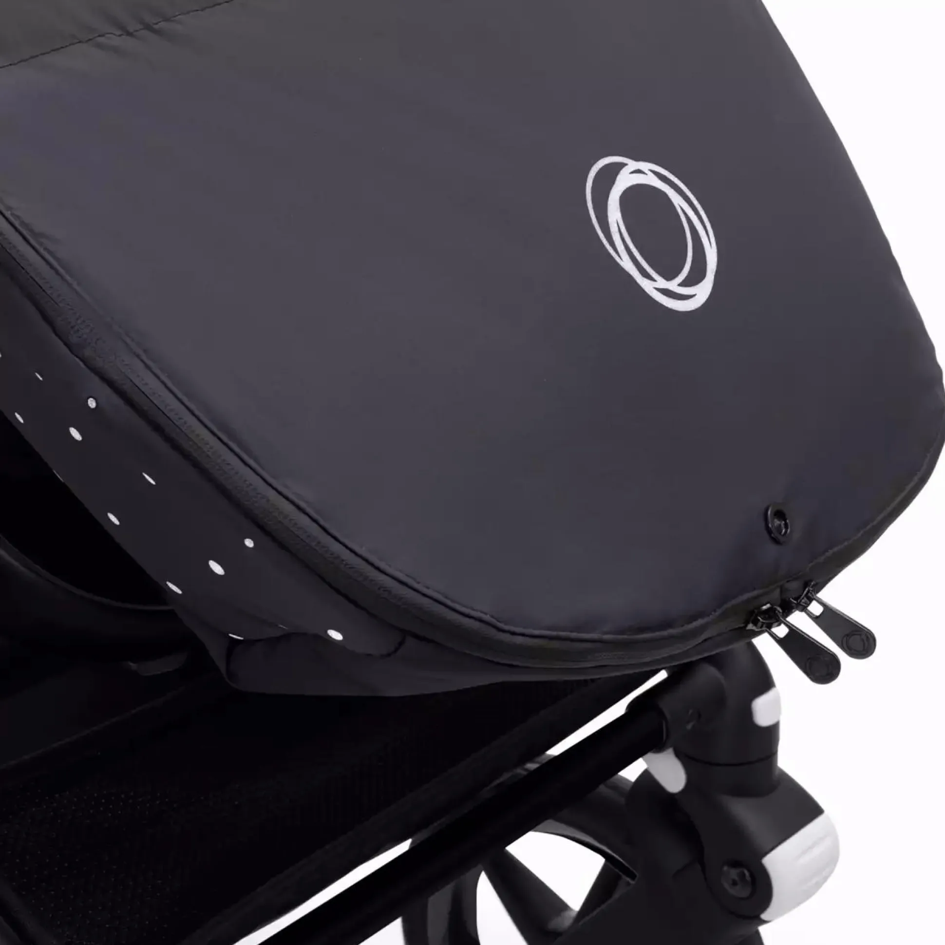 Die eingebaute Schuhblende hält den mitternachtsschwarzen Fußsack von Bugaboo innen sauber – also keine Angst vor schmutzigen Schuhen, wenn dein Kind draußen gespielt hat. Verschiedene Reflektorelemente machen eure Entdeckungstouren außerdem sicherer, damit ihr bei jeder Tageszeit euren Abenteuern nachgehen könnt.