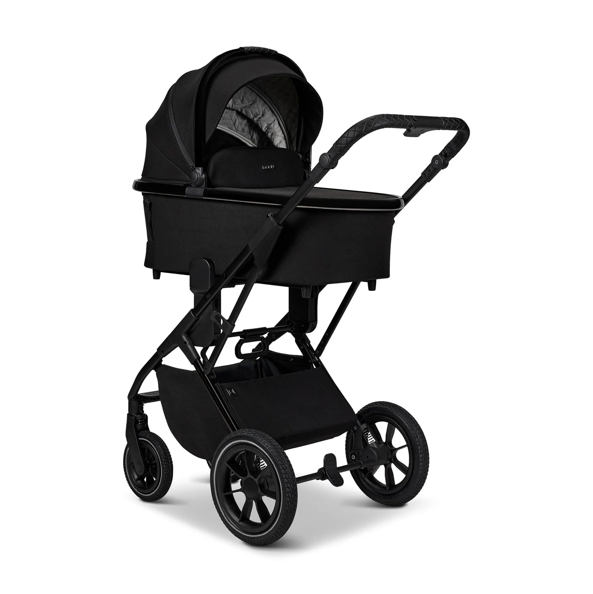 Bereits ab der Geburt kann der Kombi-Kinderwagen dank der Babywanne genutzt werden. Sobald dein kleiner Schatz aus der Wanne herausgewachsen ist, kommt der Sportsitz zum Einsatz. Für dein Baby spielt vermutlich vor allem ein hervorragender Komfort eine große Rolle. In der extrabreiten Wanne kann sich dein Baby frei bewegen und wachsen, ohne, dass ein Gefühl von Sicherheit und Geborgenheit verloren geht. Gemütlich machen kann es sich dein Baby auf der PREMIUM Matratze der Marke Träumeland. Sie sorgt für eine gesunde Sauerstoff-Zirkulation. Auch in dem Sportsitz muss eine ergonomisch korrekte Liegeposition eingehalten werden, weshalb der Sitz von einer aufrechten Sitzposition zu einer Liegeposition ganz einfach verstellt werden kann. Für Bequemlichkeit und zusätzlichen Halt sorgt das extra gefütterte, atmungsaktive Komfortpolster. Es verbessert die Luftzufuhr und reduziert die Schweißbildung. Sollte dein Kind besonders groß sein, ist das auch kein Problem: Die kantenfreie Fußstütze schafft genügend Beinfreiheit. Wanne und Sitz verfügen über ein extra großes Sonnendach mit UV-Schutz 50+ und Klimafenster, wodurch auch ein Spaziergang bei starker Sonneneinstrahlung kein Problem für euch ist. Durch ein Panorama-Fenster entstehen zudem ein besseres Klima und eine optimale Luftzirkulation. Luftreifen mit einer komfortablen Allrad-Federung sorgen zudem für eine angenehme Fahrt, auch auf unebenen Wegen. Das Kugellager in der Reifen-Aufhängung dämpft zusätzlich ungewollte Stöße beim Fahren.