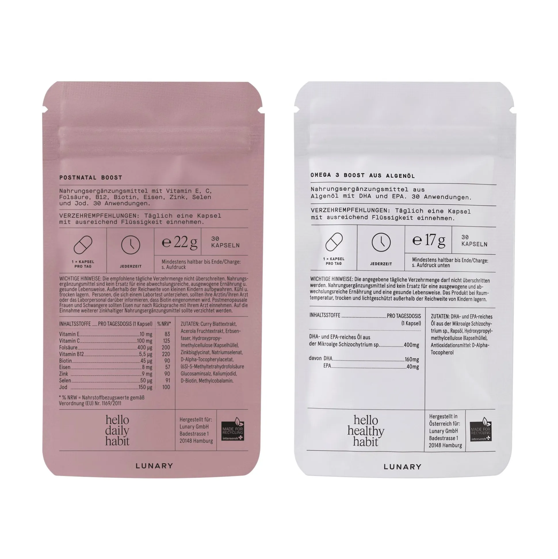 - Lieferumfang: 1x Postnatal Boost, 1x Omega-3-Kapseln