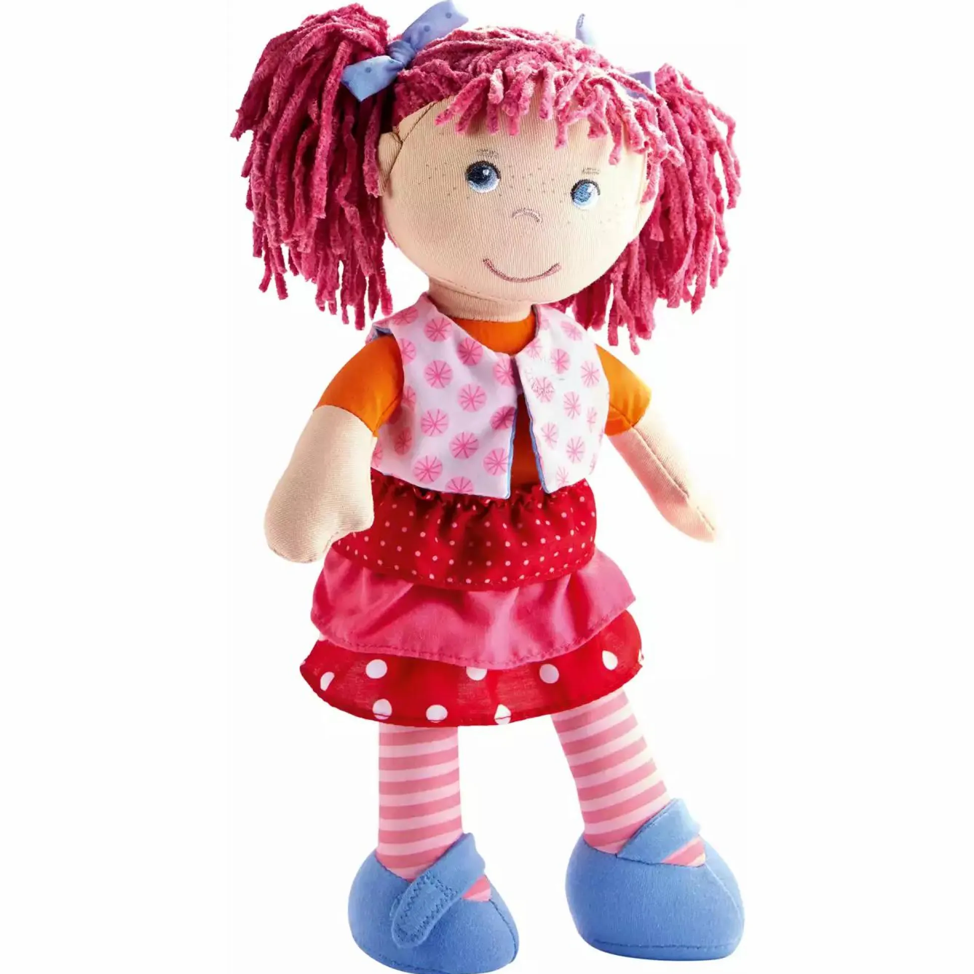 Puppen von HABA sind tolle Gefährten für alle Kinder ab 18 Monaten. Sie haben fröhliche Gesichter, weiche, mit Watte gefüllte Körper und kuschelige Haare aus Chenille. Spielen, kuscheln, trösten oder Abenteuer erleben – mit den HABA-Puppen ist vieles möglich. Praktisch: Ihre Kleidung ist dank Klettverschluss ruckzuck aus- und ebenso schnell wieder angezogen. Bei der großen Auswahl an Charakteren ist für jedes Kind der passende Spielgefährte dabei. Die gut gelaunte Lilli-Lou liebt es, Quatsch zu machen und lustige Witze zu erzählen. Mit ihrem süßen Lächeln und den fröhlichen Zöpfen verbreitet die Puppe Lilli-Lou gute Laune im Kinderzimmer und unterwegs.