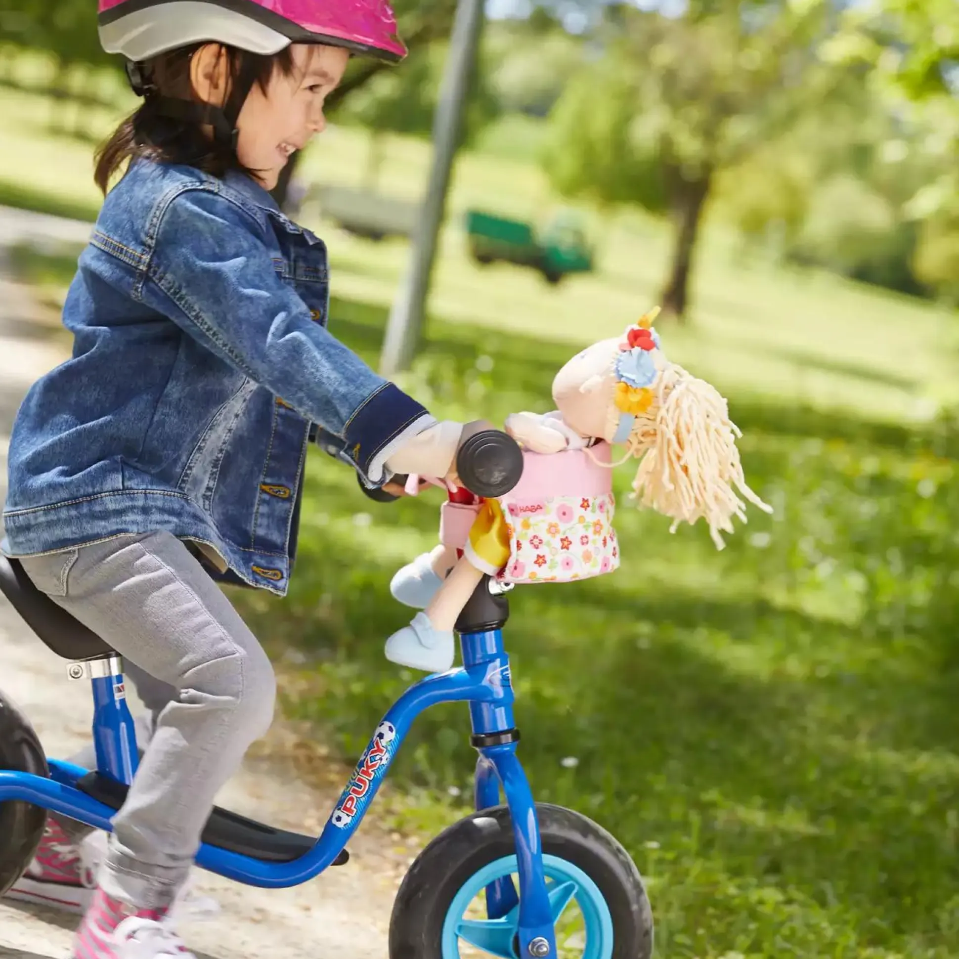 Mit dem Puppen-Fahrradsitz Blumenwiese von HABA kann dein kleiner Schatz mit der geliebten Puppe wunderschöne Ausflüge erleben. Dank dem Klettverschluss kann der Puppen-Sitz einfach am Fahrrad oder am Schlitten befestigt werden.