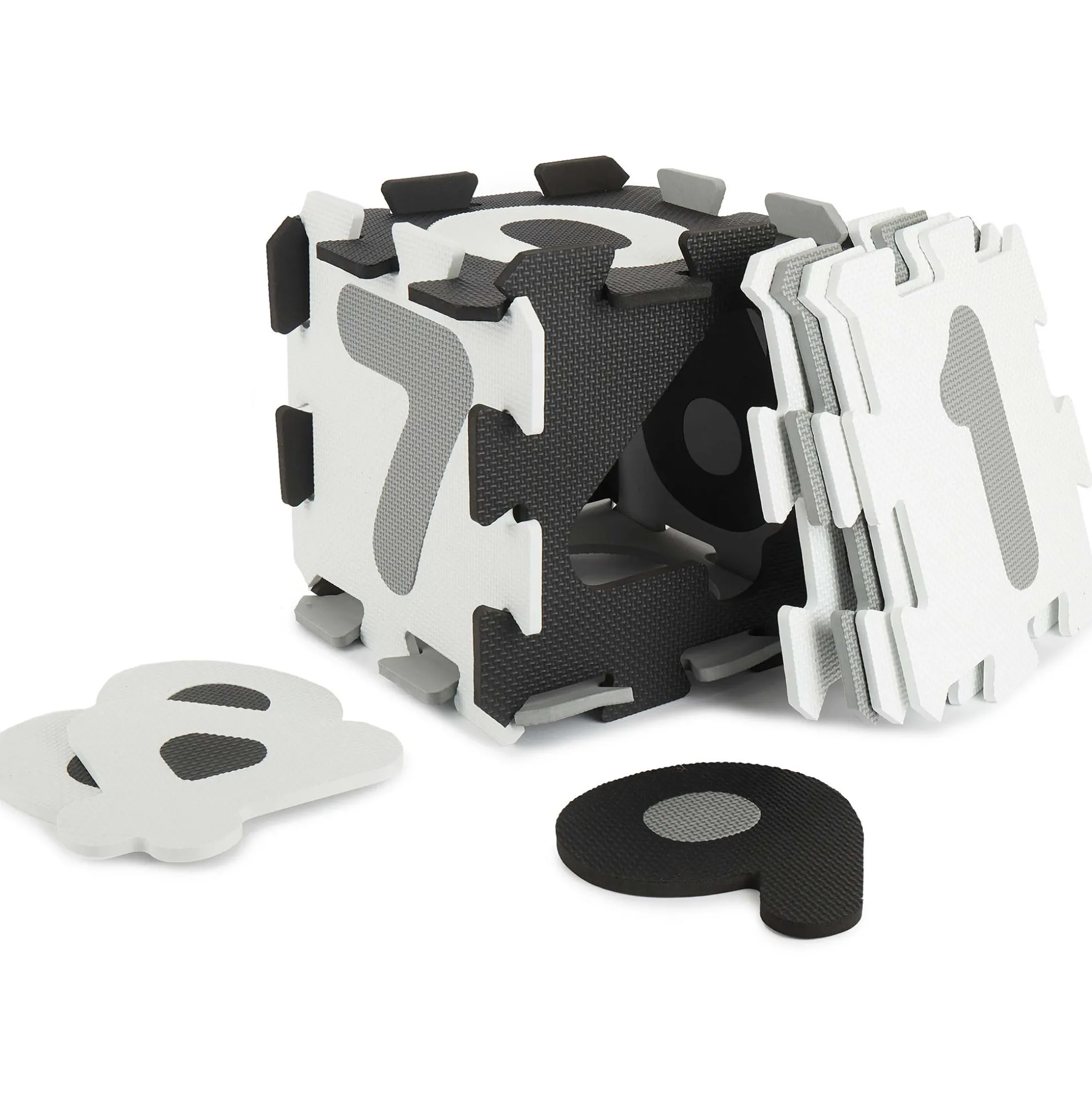 Die schwarz-weiß-graue Baby Puzzlematte mit Zahlen von 0-9 ist ein spaßiges Puzzle für Jungen und Mädchen. Beim Zusammensetzen und Auseinandernehmen wird das Denkvermögen und die Geschicklichkeit der Kleinen trainiert. Die Baby Spieldecke ist aus weichem Schaumstoff und schadstofffrei. Die Baby ist ein geeignetes Puzzle ab 6 Monaten, mit dem du deinem Liebling die ersten Zahlen näherbringst. Ein Zusammensetzen der Platten als Würfel ist ebenso möglich. Außerdem können die Zahlen aus der Mitte herausgetrennt und so einzeln zum Spielen verwendet werden.