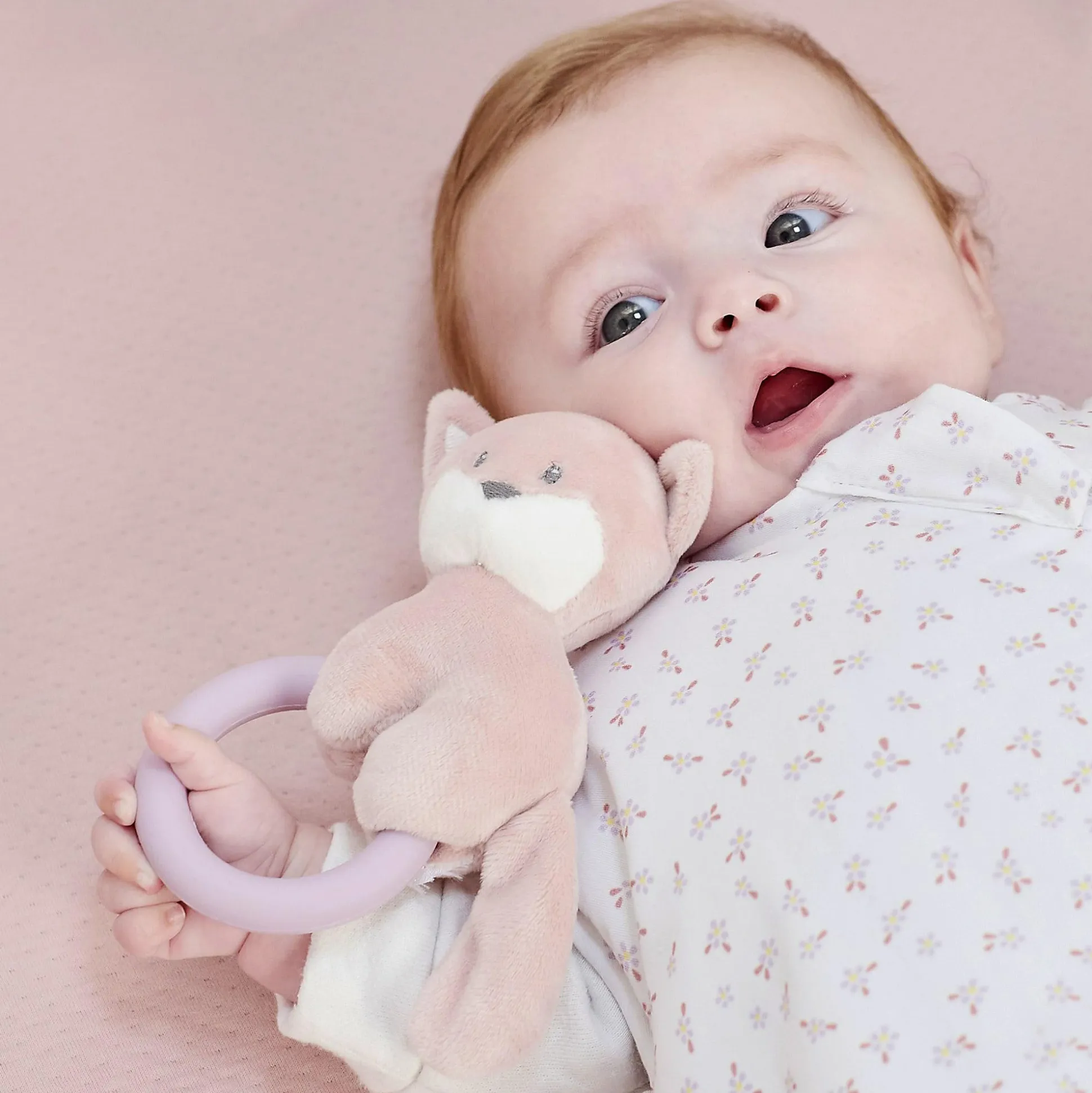 Die niedliche Rassel ist der perfekte Spielkamerad für dein Baby bei all seinen Abenteuern. Es bietet viele Details zum Greifen wie die Ohren oder den Schwanz und hat die perfekte Form für kleine Hände und Finger. Die Rassel sorgt für lustige Geräusche und zusätzlichen Spaß beim Schütteln. Der Beißring aus Silikon lindert auch die Zahnschmerzen deines Lieblings.