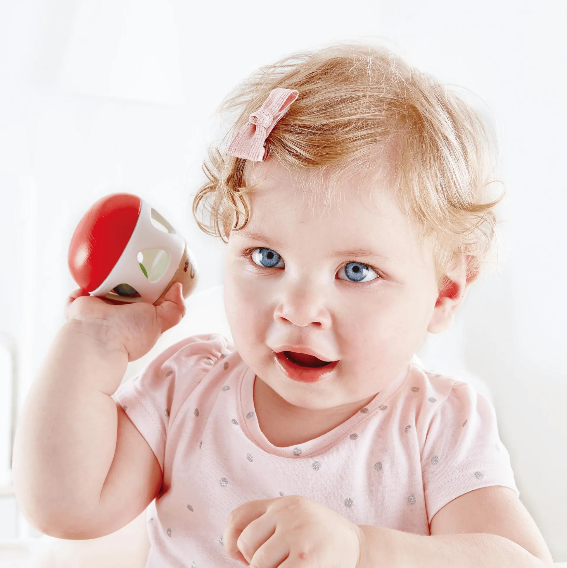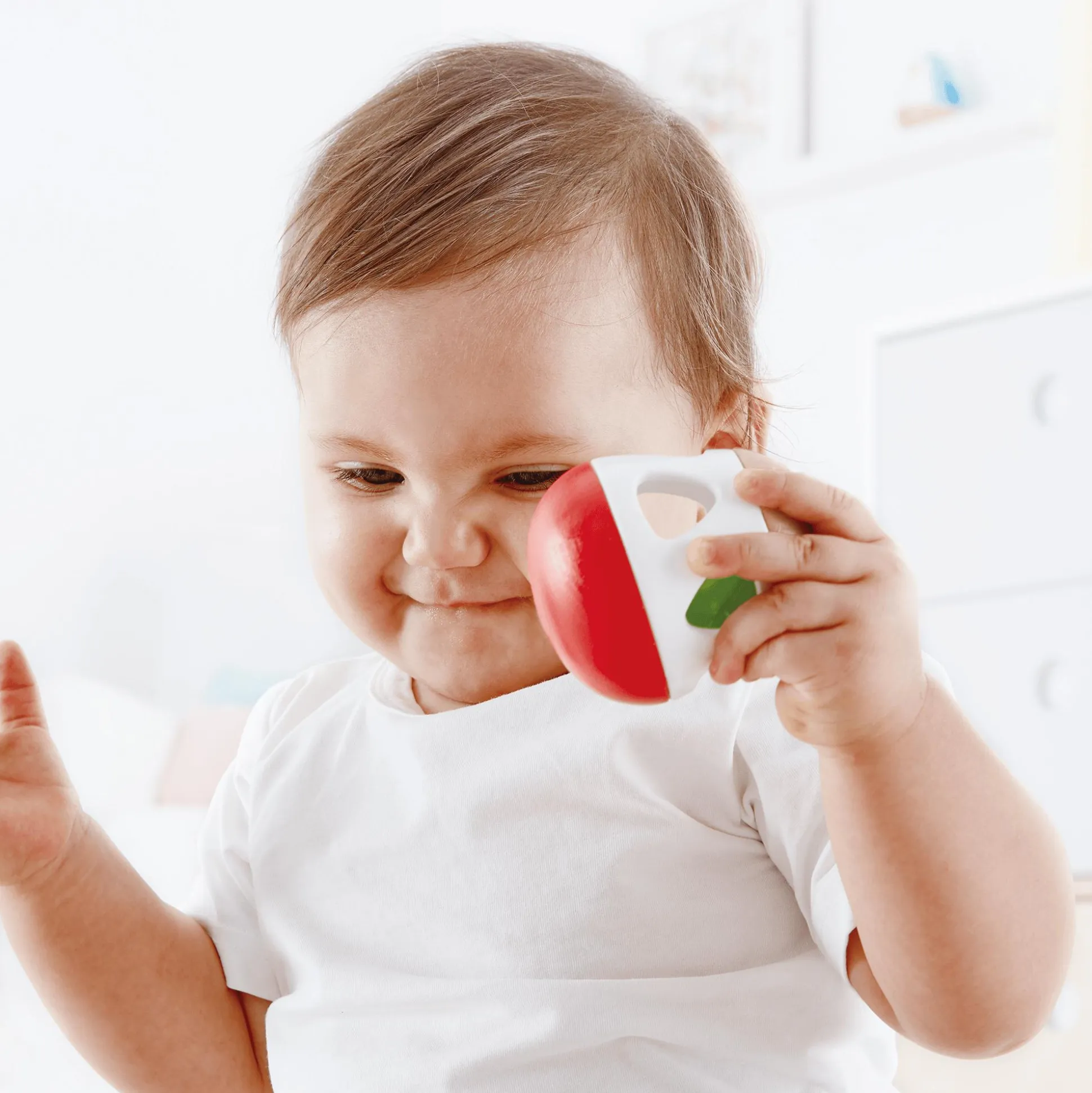 Die Hape Rassel mit Glocke ist das ideale Spielzeug für deinen kleinen Schatz bereits ab der Geburt. Die Eiform ermöglicht nicht nur ein einfaches Greifen, sondern auch das Rollen auf harten Oberflächen wie Tischen und Fußböden. Die versteckte Glocke im Inneren läutet sanft bei jeder Bewegung, was die Sinne deines Kindes auf spielerische Weise anspricht. Mit Öffnungen an den Seiten ist die Rassel leicht von den kleinen Händen zu halten und greifen.