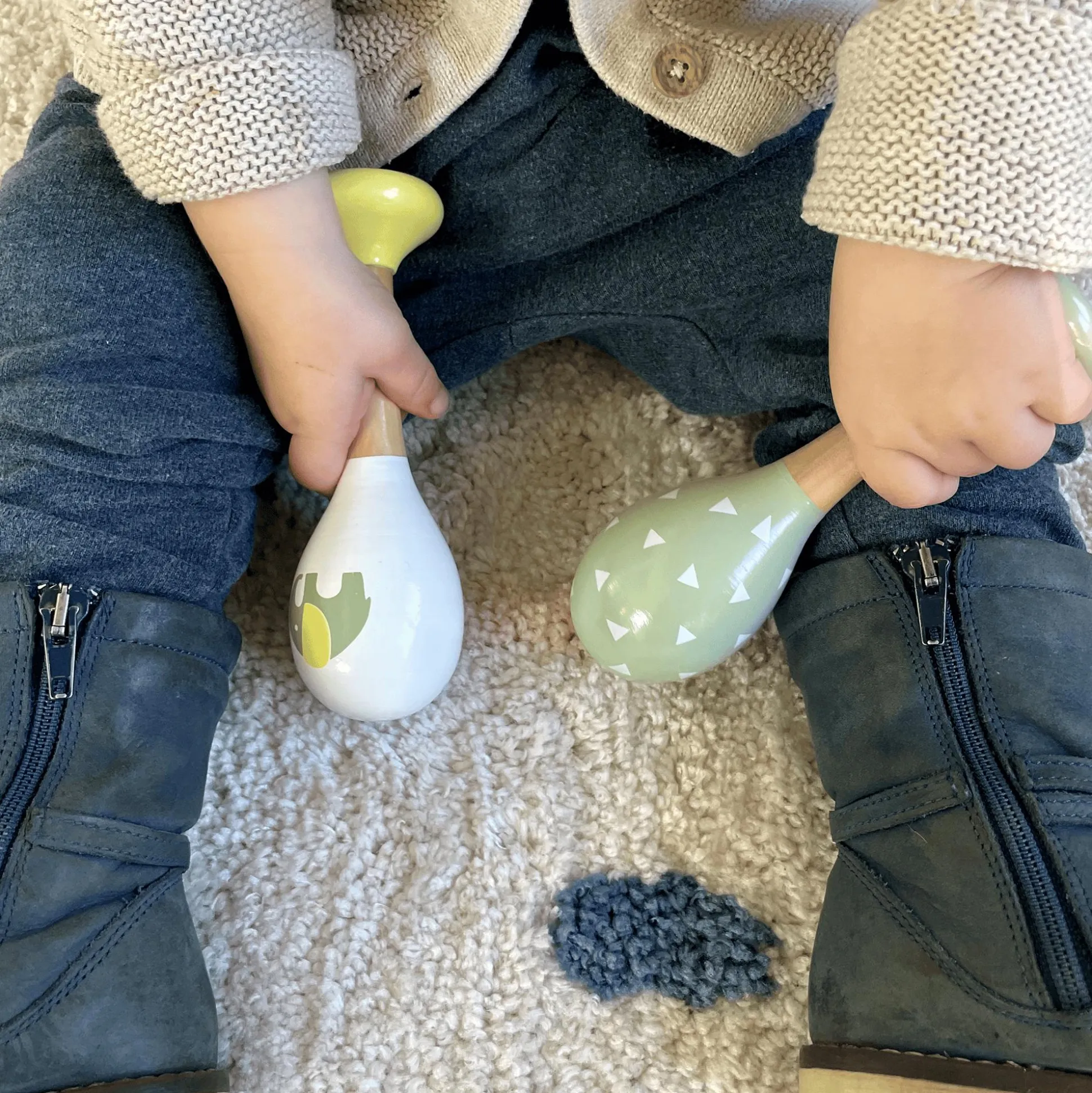Die Rasseln von Kindsgut (2-er Set) sorgen für viel Spielspaß! Die kindgerecht gestalteten Rasseln in dezenten Farben lassen sich leicht greifen und schütteln. Das natürliche Lernspielzeug aus Holz fühlt sich dabei schön in den Händen deines Kindes an und fördert spielerisch die Motorik. Die Holzrasseln sind je nach Entwicklungsstand deines Kindes ab ca. 6 Monaten geeignet. Dein Kleines kann die leichten Rasseln dann eigenständig bewegen und sich an den dezenten Geräuschen erfreuen. Vielleicht könnt ihr auch gemeinsam zu einer Hintergrundmusik tanzen und die Rasseln im Takt dazu schwingen? Mit ihrem eleganten Design und der hochwertigen Verarbeitung passen die Holzrasseln perfekt in moderne Kinderzimmer.