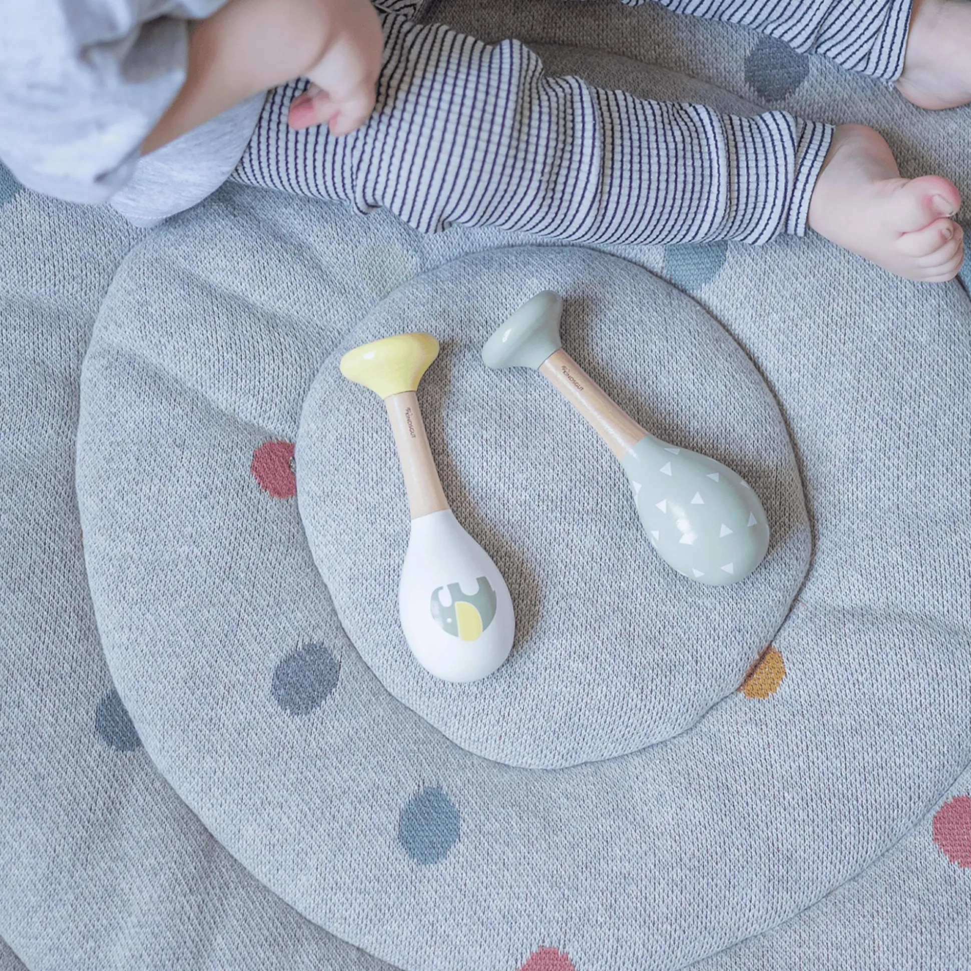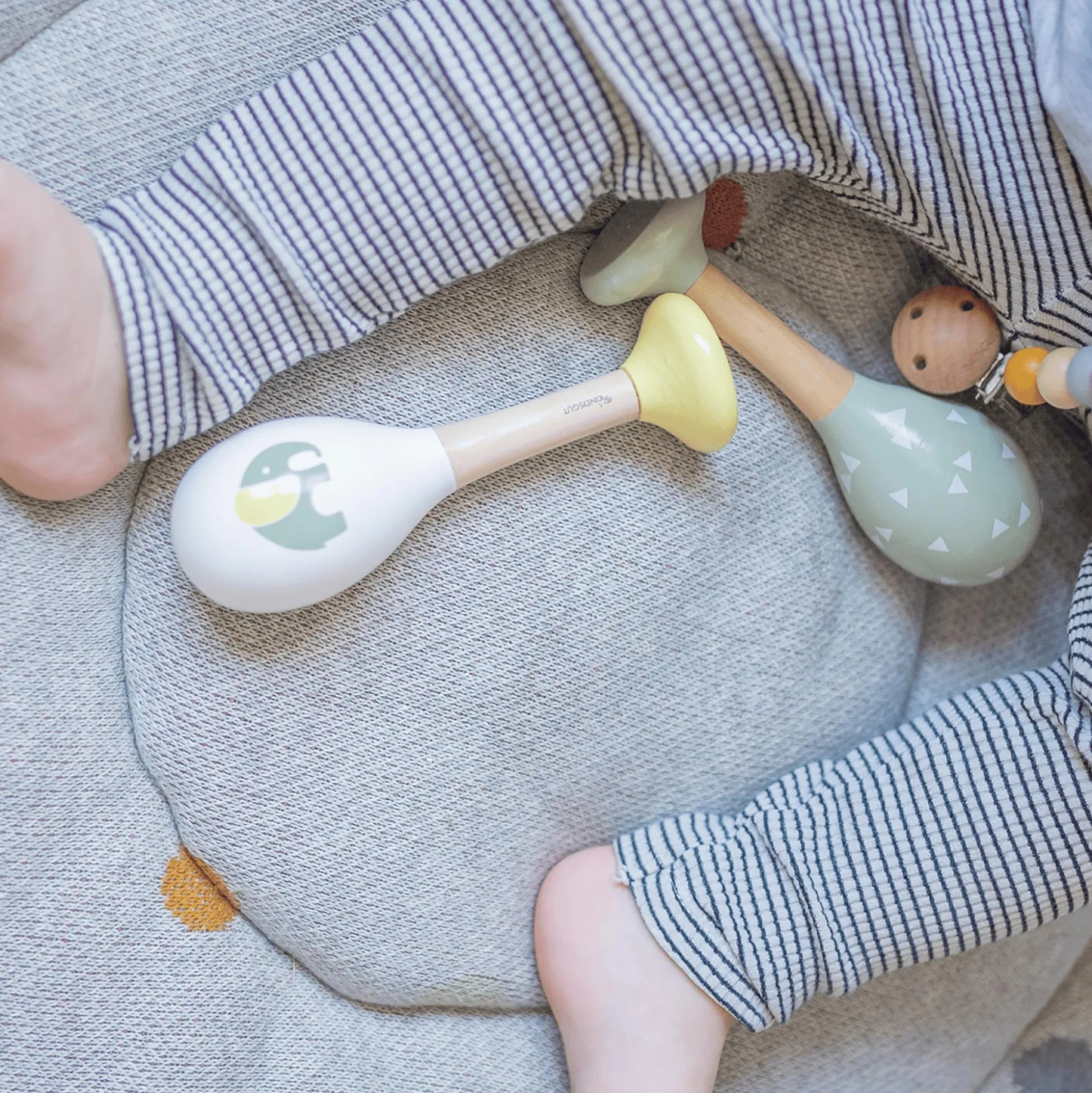 - Holzrasseln zum Greifen und Schütteln