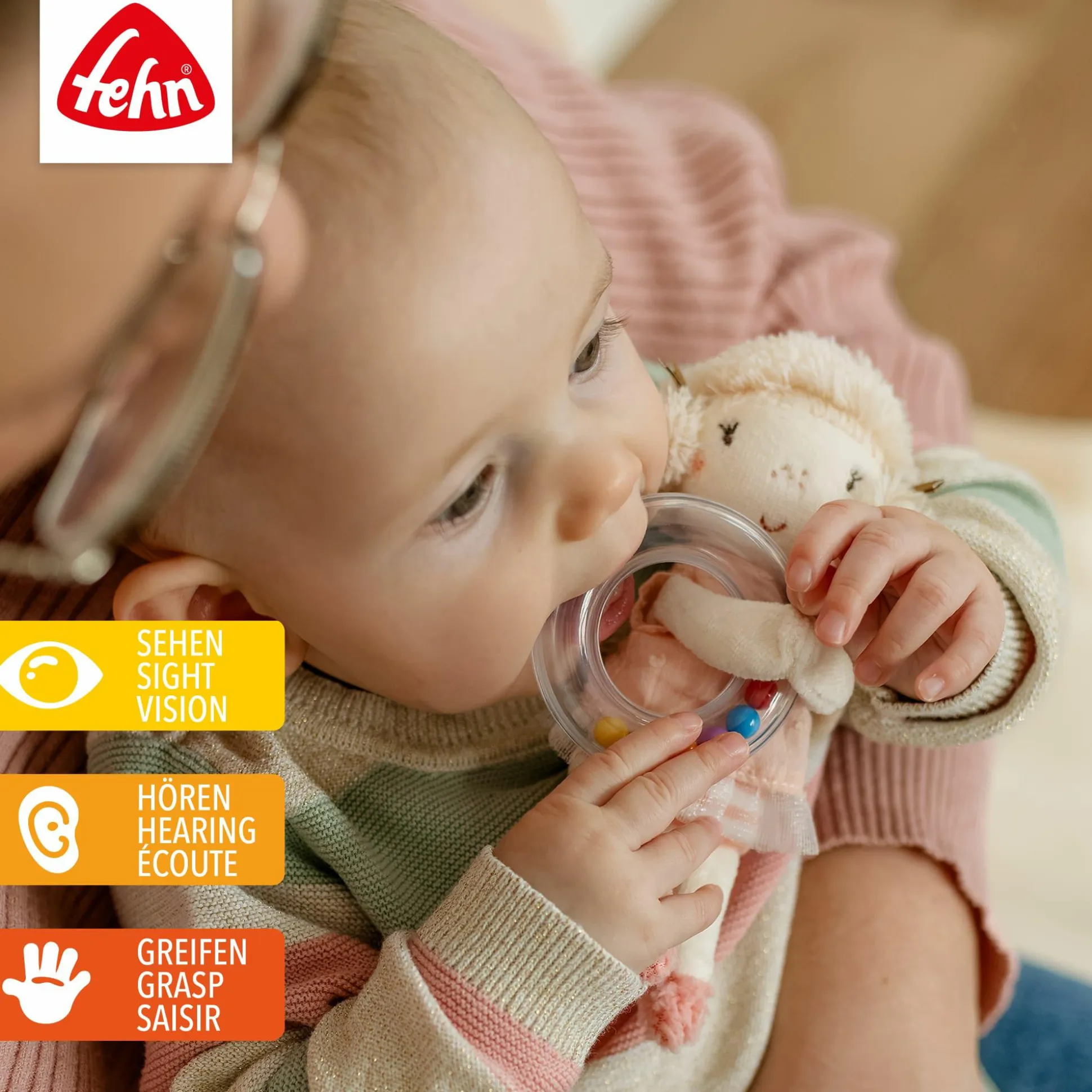 - fördert Hör-, Greif- und Tastsinn sowie Feinmotorik