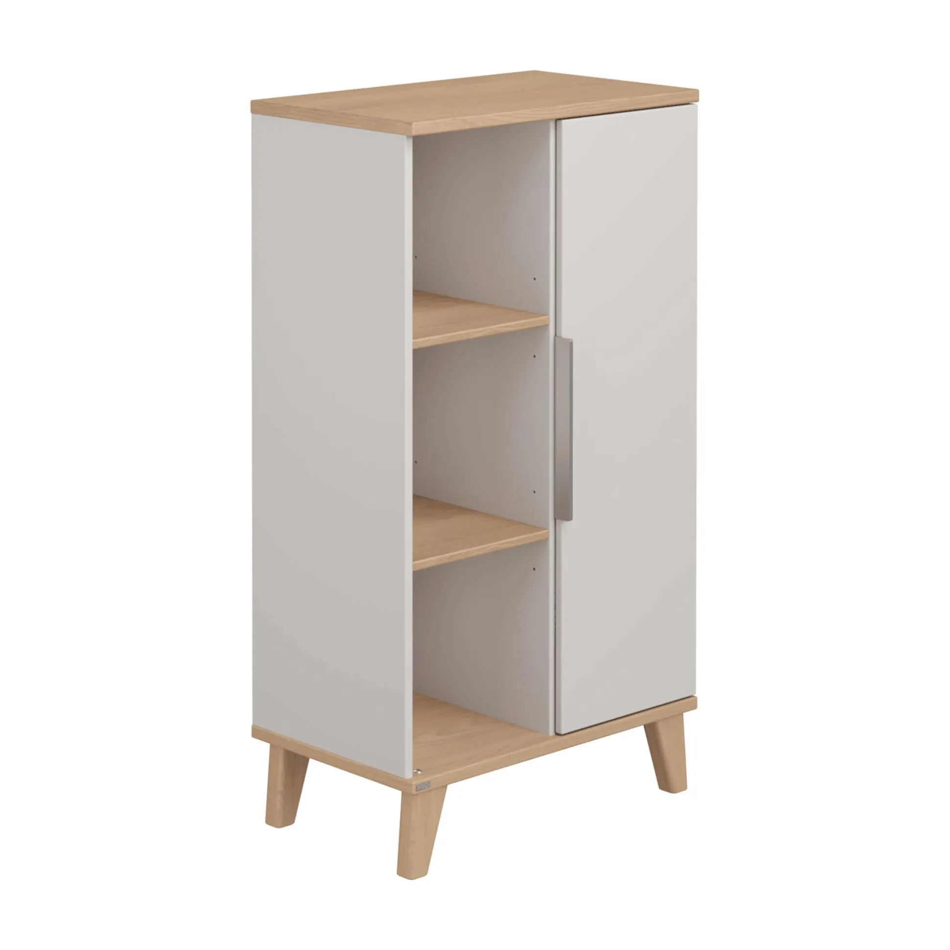 Dieses Standregal Fiene von Paidi ist nicht nur ein praktisches Möbelstück, sondern auch ein stilvolles Element für das Kinderzimmer. Mit einer Tür links und zwei Fachböden bietet es ausreichend Stauraum für Spielzeug, Bücher und andere Utensilien, die man gerne verstecken möchte. Zusätzlich verfügt es über drei offene Fächer, die sich ideal für die Präsentation von Deko-Objekten oder Lieblingsstücken eignen.