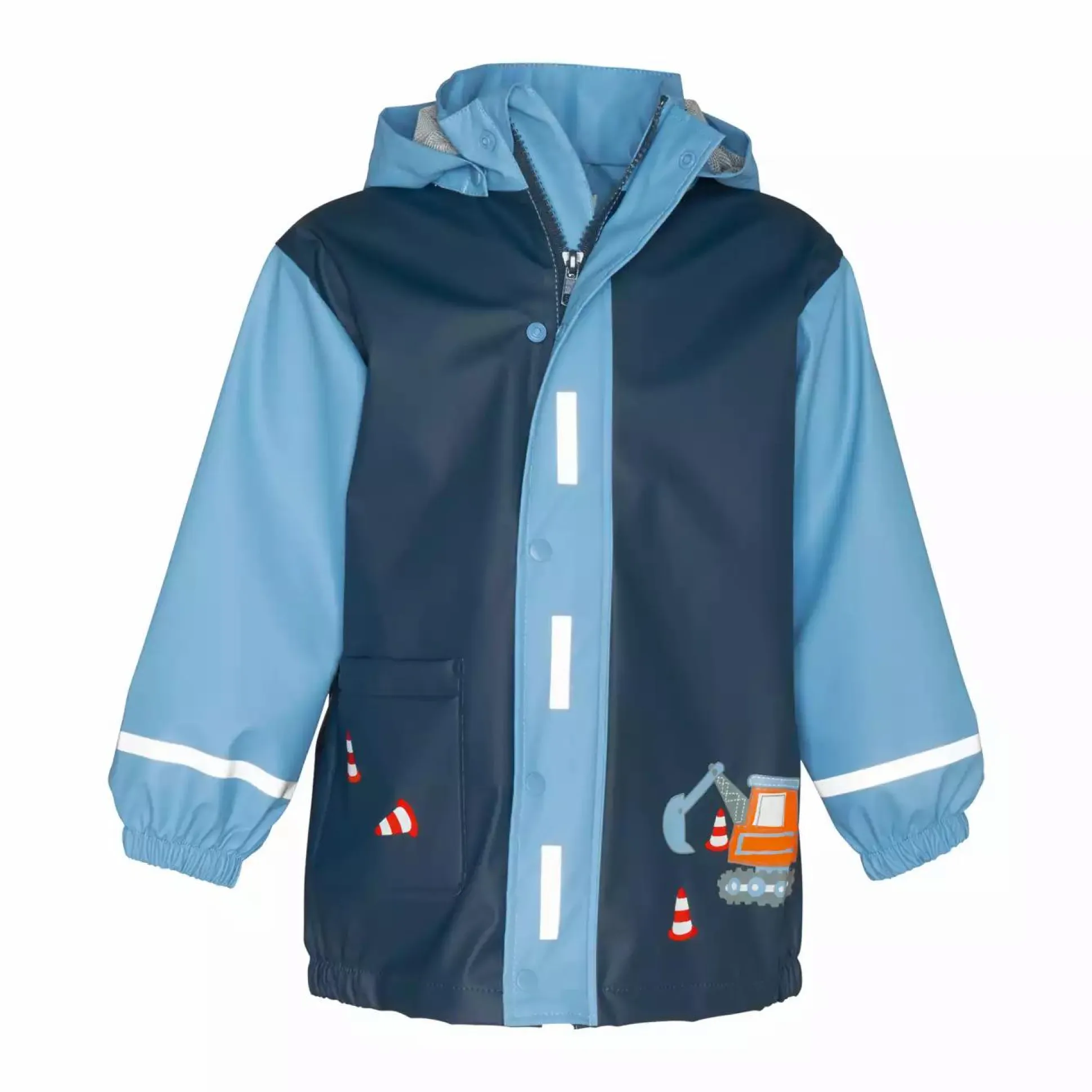 - Regenmantel mit Bagger und Pylonen-Motiven