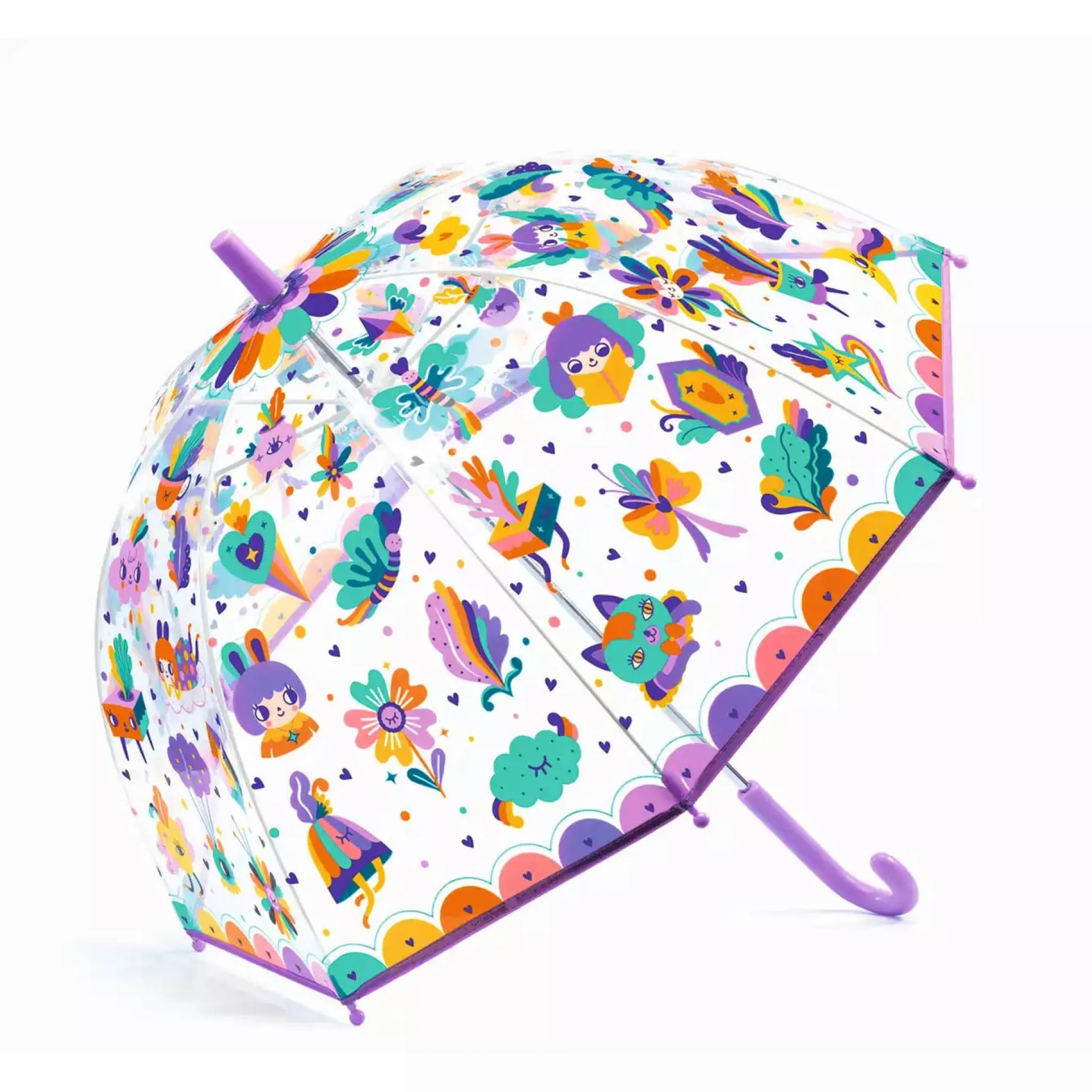 Mit dem DJECO Regenschirm Pop Regenbogen ist dein Kind an ungemütlichen Regentagen zuverlässig vor Nässe geschützt. Die bunten Motive auf dem Schirm schenken gute Laune im Regenspaziergang und der durchsichtige Schirm gibt deinem Kind auch im Straßenverkehr den nötigen Durchblick.