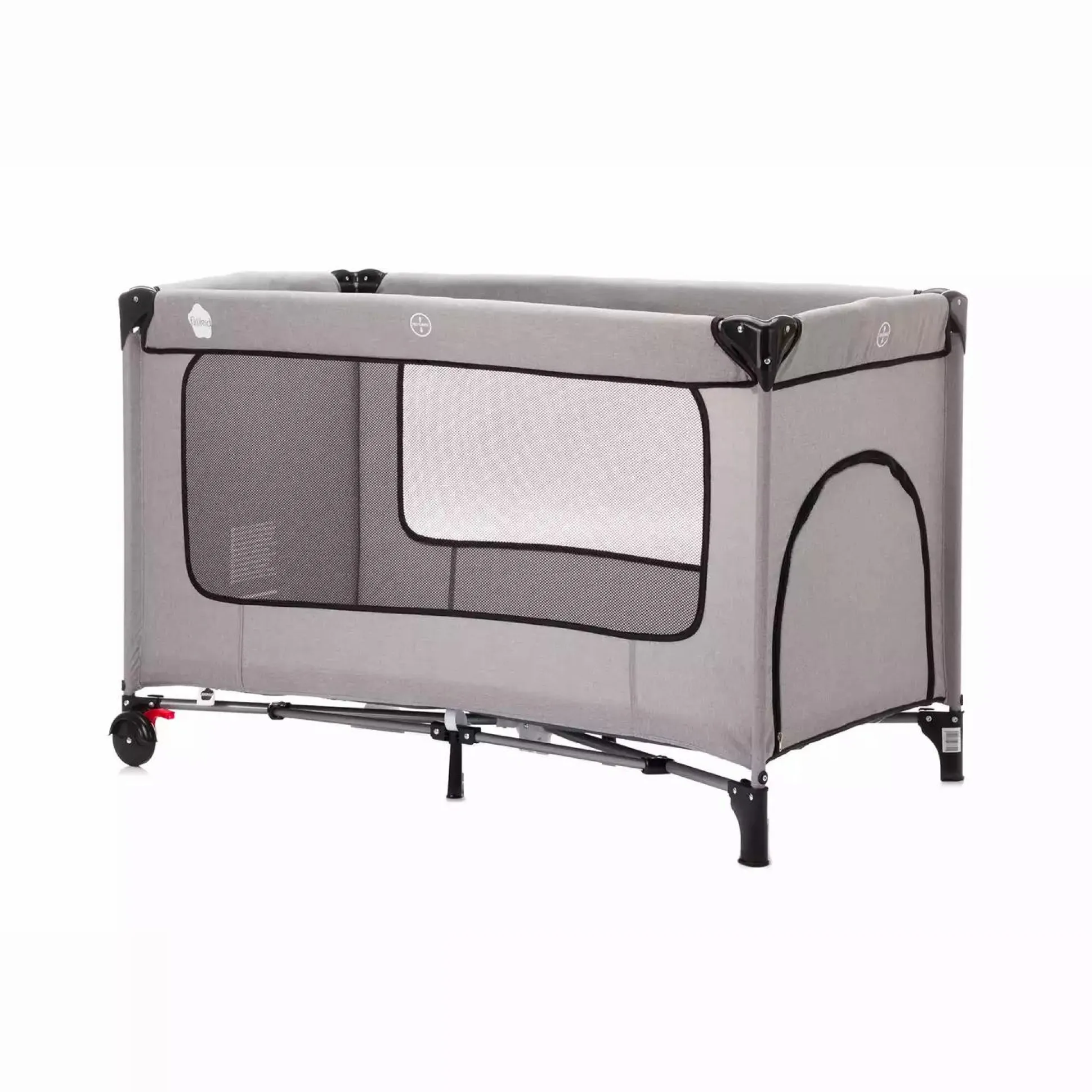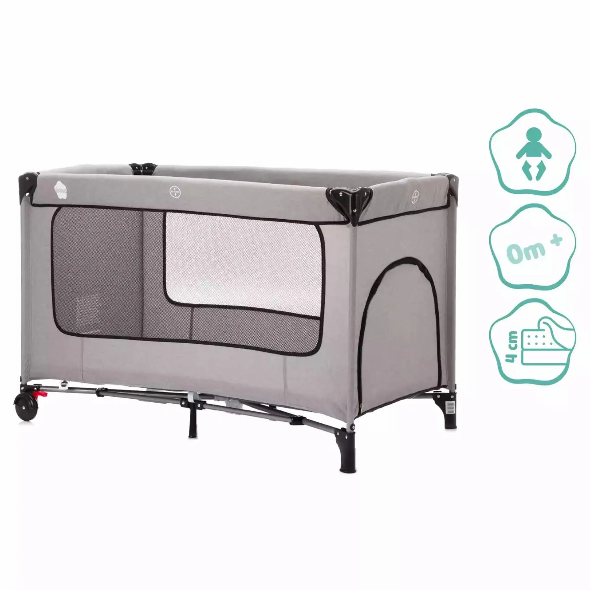 Dieses Bett mit Komfortmatratze erspart dir den zusätzlichen Kauf einer extra Reisebettmatratze und trotzdem braucht dein Kind nicht auf die Vorzüge einer guten Matratze verzichten. Die Matratze ist mit einem speziellen Kaltschaum gefüllt welcher deinem Kind größtmöglichen Komfort bietet. Zusätzlich ist die Matratze abziehbar und waschbar und kann beim Transport ganz einfach um das Bett gefaltet und in der mitgelieferten Tasche verstaut werden. Das Reisebett mit Komfortmatratze eignet sich daher auch hervorragend als zusätzliches Bett bei Verwandten oder im Zweitwohnsitz. Das Reisebett ist aber nicht nur praktisch, sondern auch optisch ein Hingucker: Durch den hochwertigen Melange Bezug in grau fügt es sich sehr gut in den Wohnraum ein und wirkt dabei wertig und modern. Die großen Netzflächen sorgen für ausreichend Belüftung und die Schlupföffnung mit Zippverschluss ermöglichen deinem kleinen Schatz ein selbstständiges Ein- und Aussteigen. Mit Hilfe der fixierbaren Räder lässt sich das Bett auch ganz einfach verschieben.
