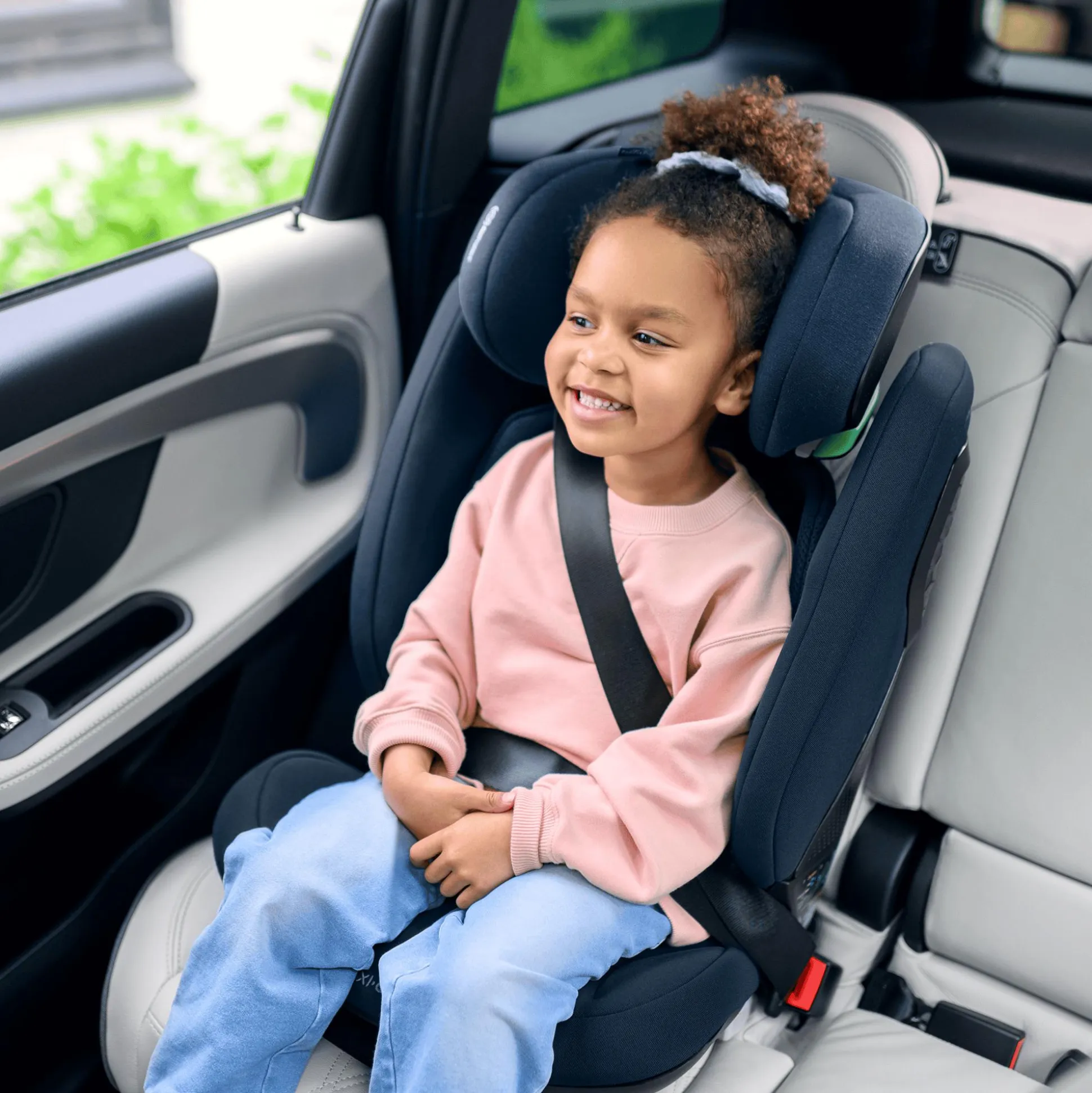 - Befestigung im Fahrzeug per Fahrzeuggurt – und zusätzlich optional per ISOFIX