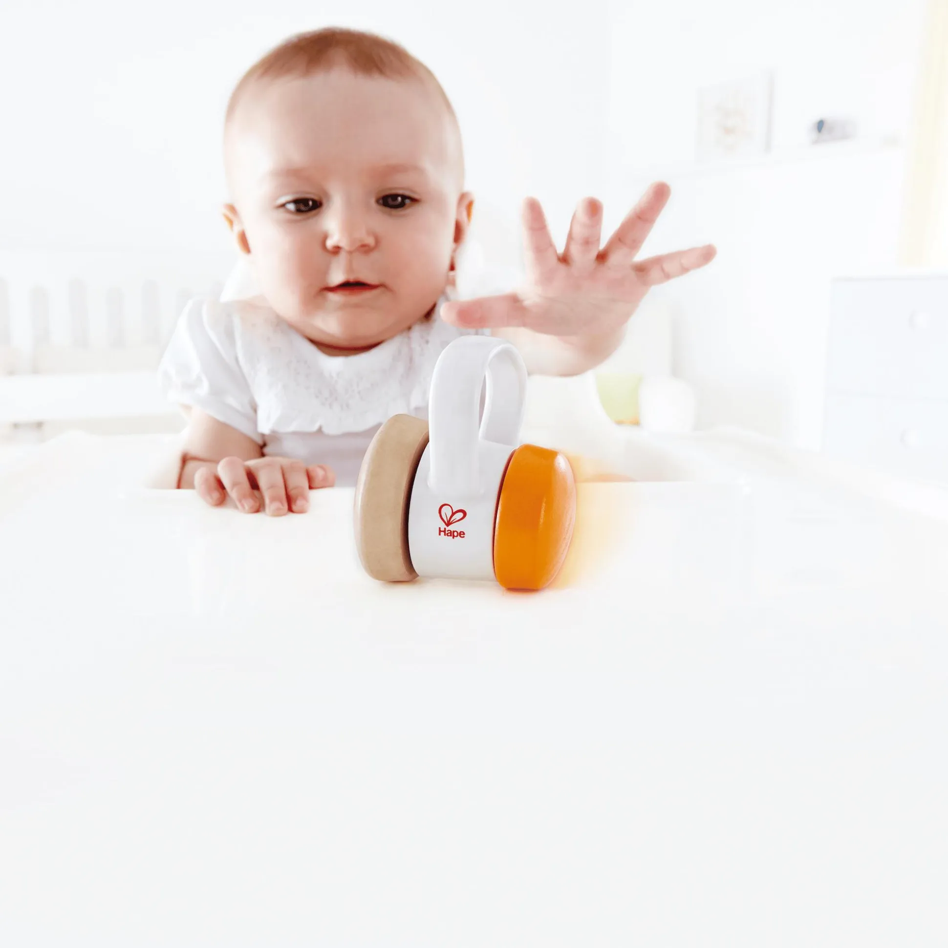 Die Rassel rollt mühelos in einer Schleife auf harten Oberflächen wie Tischen und Fußböden, was nicht nur für Unterhaltung sorgt, sondern auch die Neugierde deines Kindes weckt.Dank ihrer handlichen Größe ist die Roll-Rassel leicht zu transportieren und findet problemlos Platz in der Windeltasche oder dem Kinderwagen.
