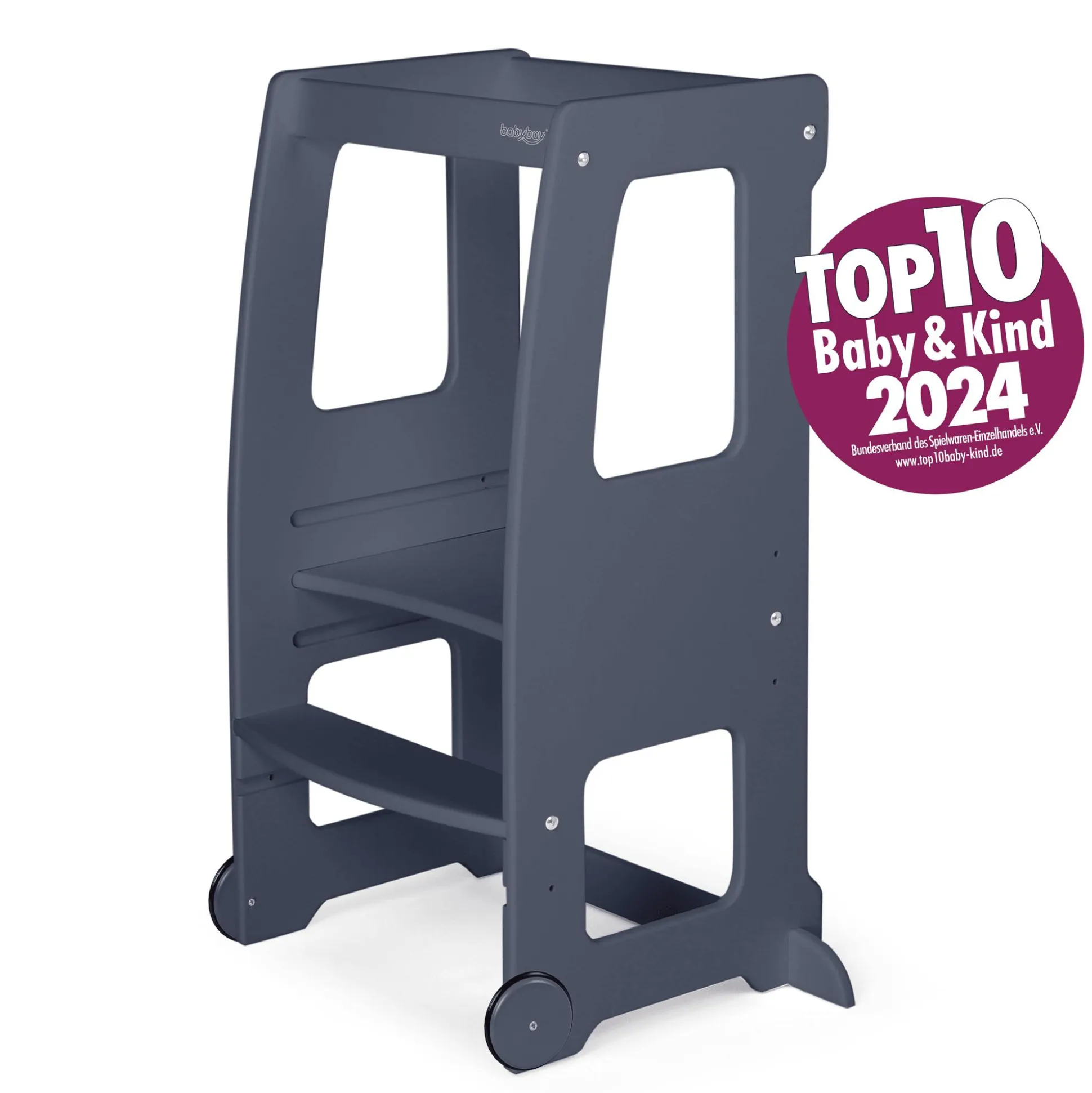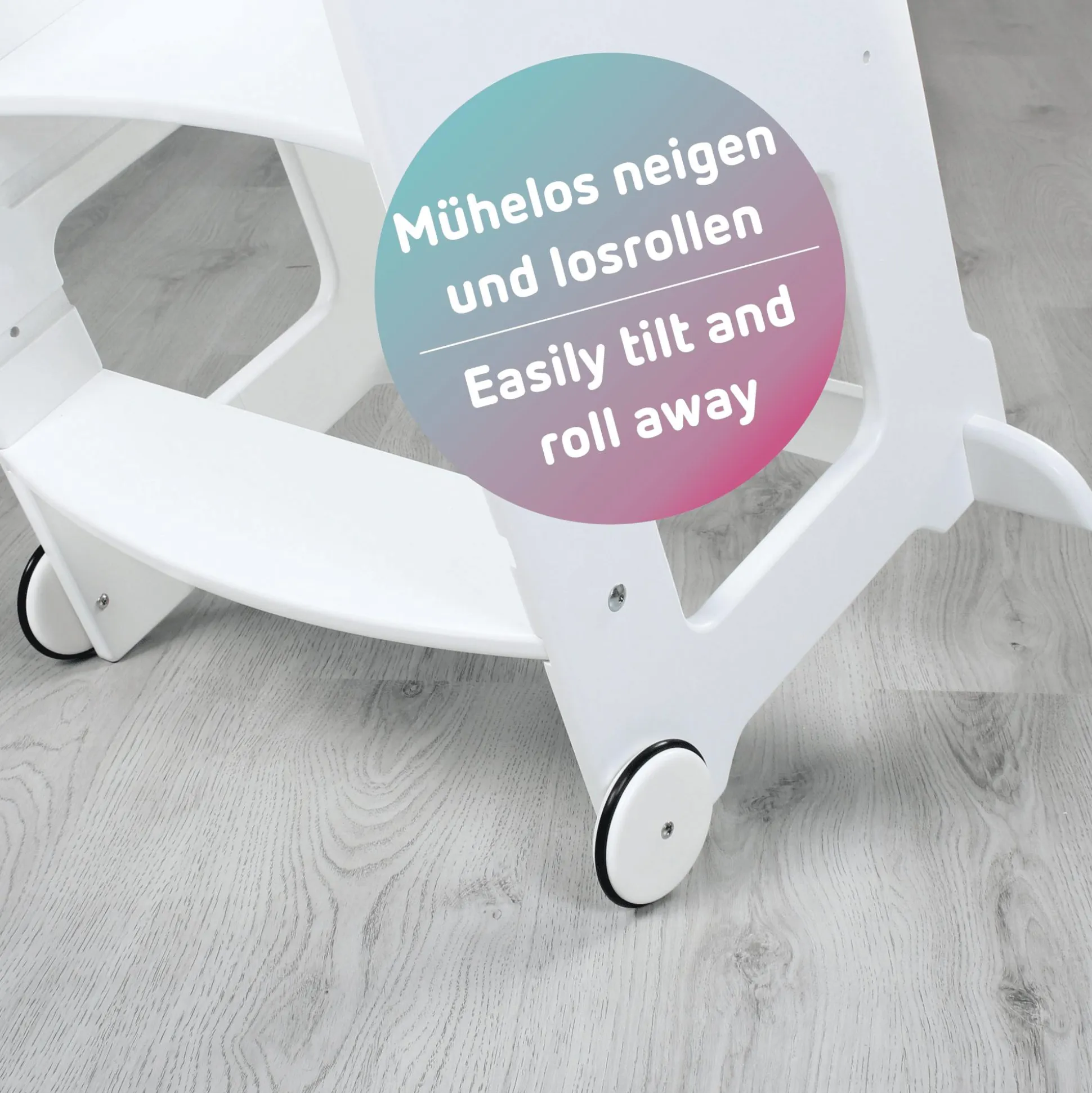 Der babybay® Rollensatz für den Lernturm Littlefoot® ist das ideale Zubehör, um deinen babybay® Lernturm Littlefoot® noch vielseitiger und mobiler zu machen. Trotz der leicht umsetzbaren Beweglichkeit behält der Lernturm seine gewohnte Stabilität und ist jederzeit standsicher – die Rollen lassen den Lernturm nur rollen, wenn er bewusst nach hinten geneigt wird, was einen sicheren Stand gewährleistet.Egal, ob in der Küche, im Badezimmer oder am Wohnzimmertisch, mit diesen Rollen ist dein Lernturm immer dort, wo ihr ihn braucht.Die Montage der Rollen ist einfach und schnell erledigt. Die Rollen sind mit einer parkettgeeigneten vollgummierten Lauffläche ausgestattet, die ein sanftes Gleiten und einen sicheren Stand auf verschiedensten Böden gewährleistet..Die Räder sind aus massivem heimischen Buchenholz gefertigt und gemäß der Norm DIN EN 71-3 lackiert, was höchste Sicherheitsstandards für dein Kind garantiert.Mit dem Rollensatz Littlefoot® wird nicht nur die Funktionalität deines babybay® Lernturm Littlefoot® erweitert, sondern auch seine Flexibilität im Alltag erhöht. Sie bieten eine praktische Lösung, um das Lernen und Spielen deines kleinen Lieblings überall im Haus zu unterstützen, ohne Kompromisse bei der Standsicherheit oder Mobilität machen zu müssen.