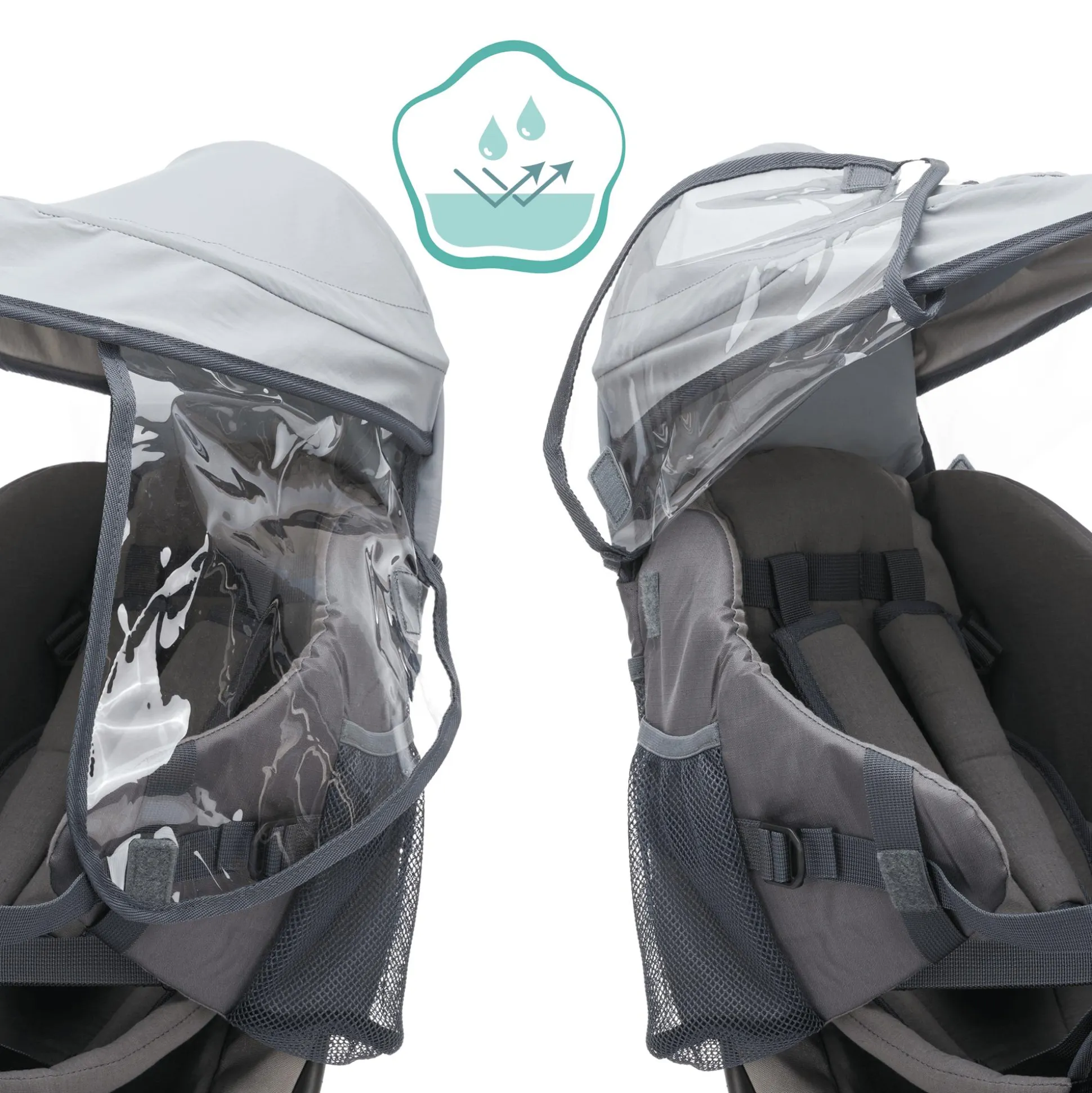 - großes Wetterschutzdach schützt dein Kind vor Sonne und Regen
