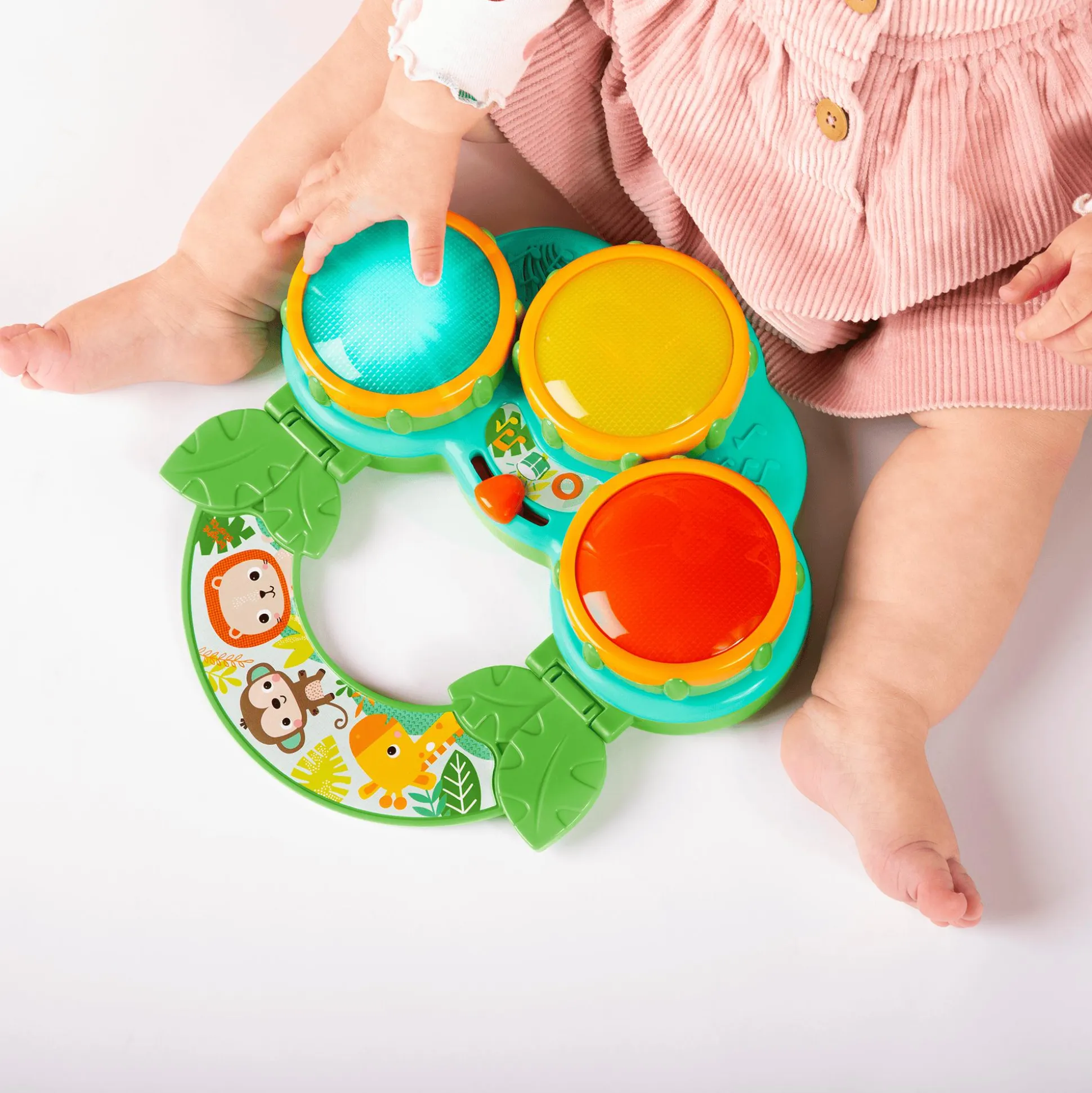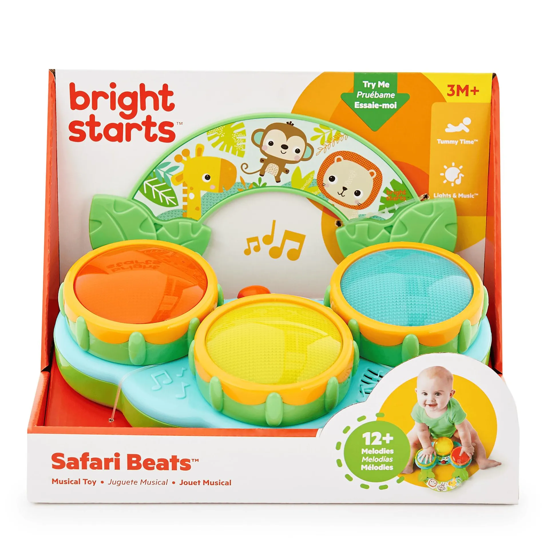 Das Safari Beats Musikspielzeug von Bright Starts ist ein unterhaltsames und interaktives Spielzeug, das deinen Nachwuchs ab ca. drei Monaten in die Welt der Musik entführt. Mit seinen drei bunten Trommeln bietet es endlose Stunden voller Spaß, Musik und Entdeckungen.Die Trommeln des Musikspielzeugs sind nicht nur farbenfroh, sondern spielen auch eine Vielzahl von Liedern, Geräuschen und erzeugen bunte Lichter. Dein Kind kann herumtrommeln und dabei verschiedene Rhythmen und Melodien erkunden.