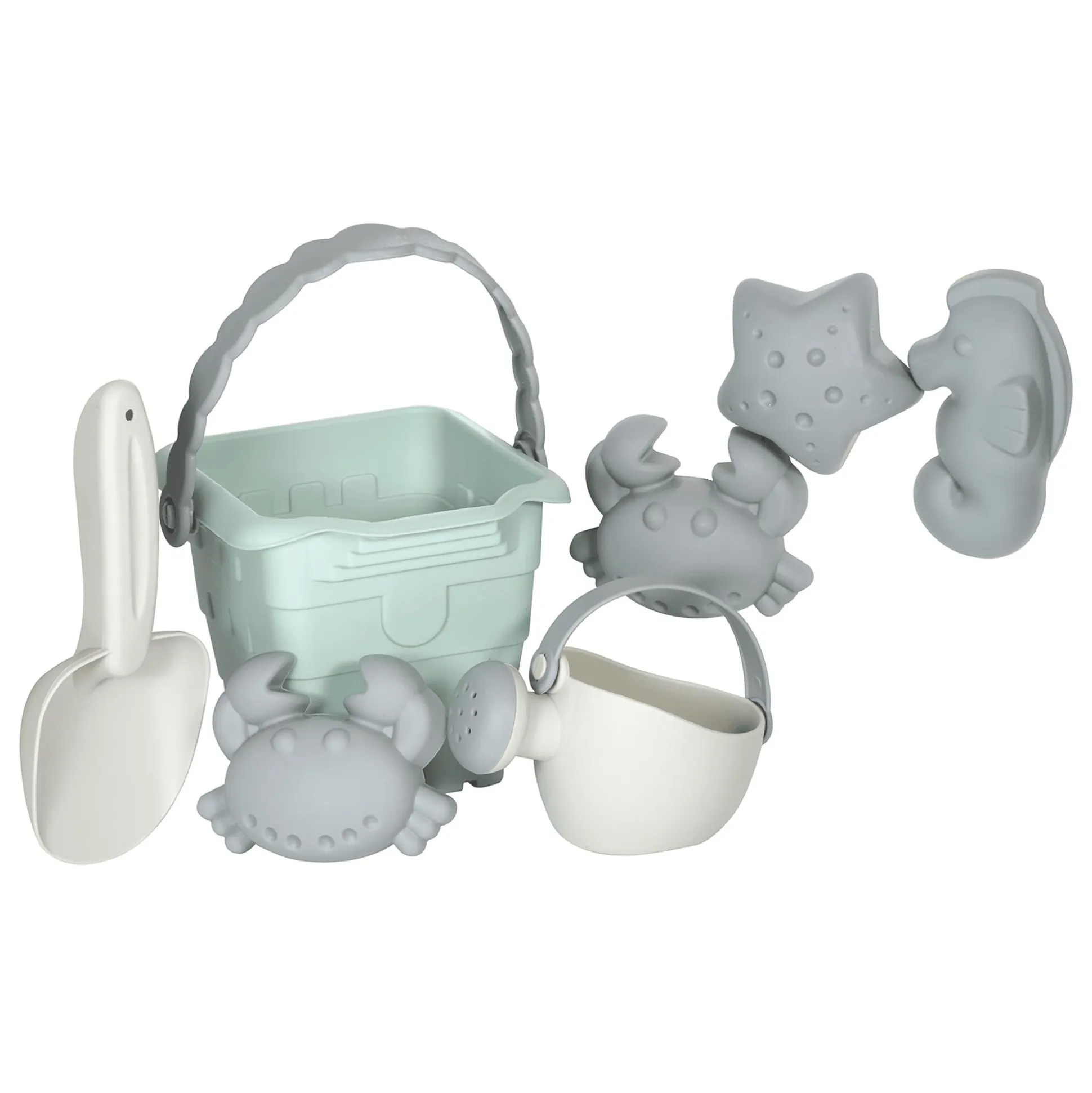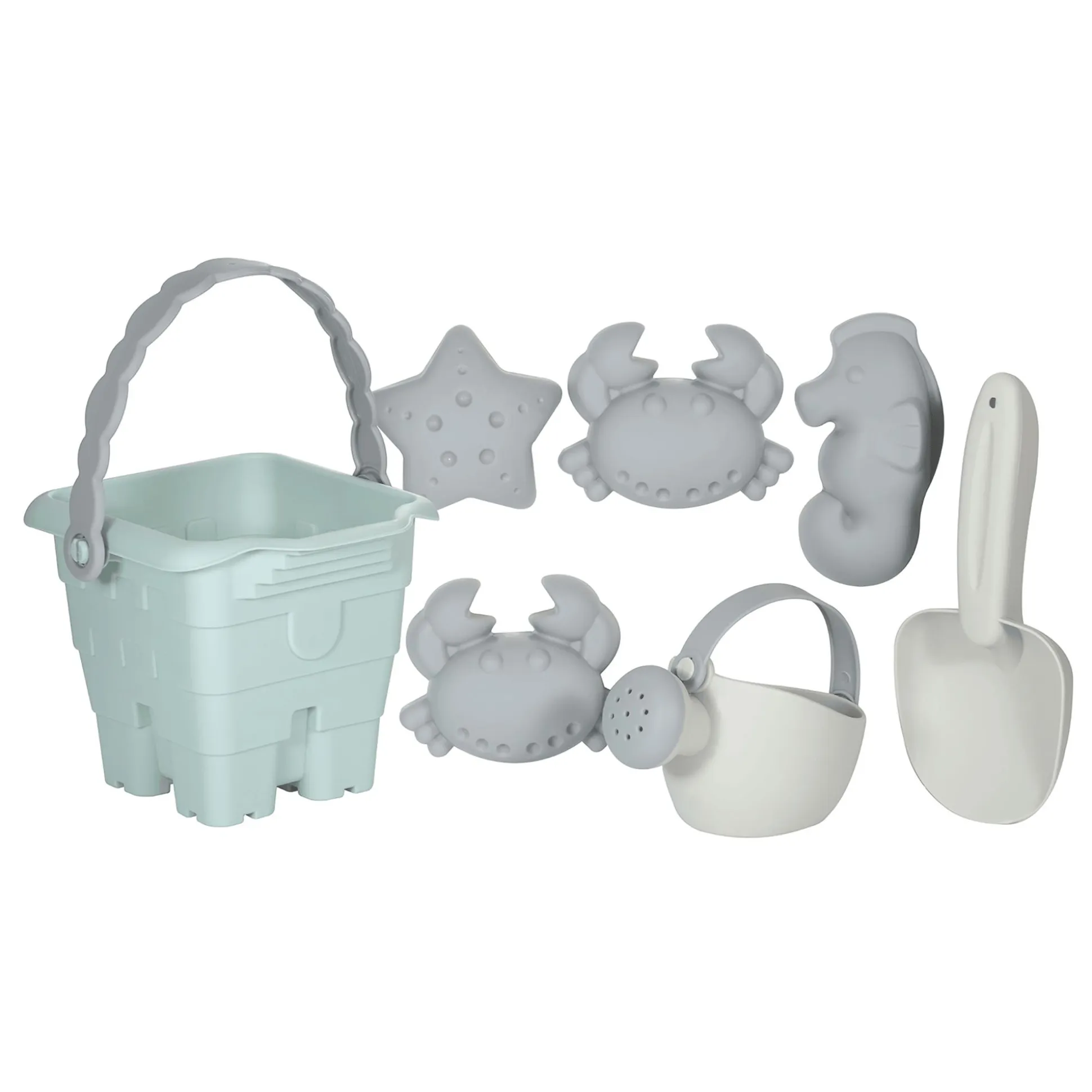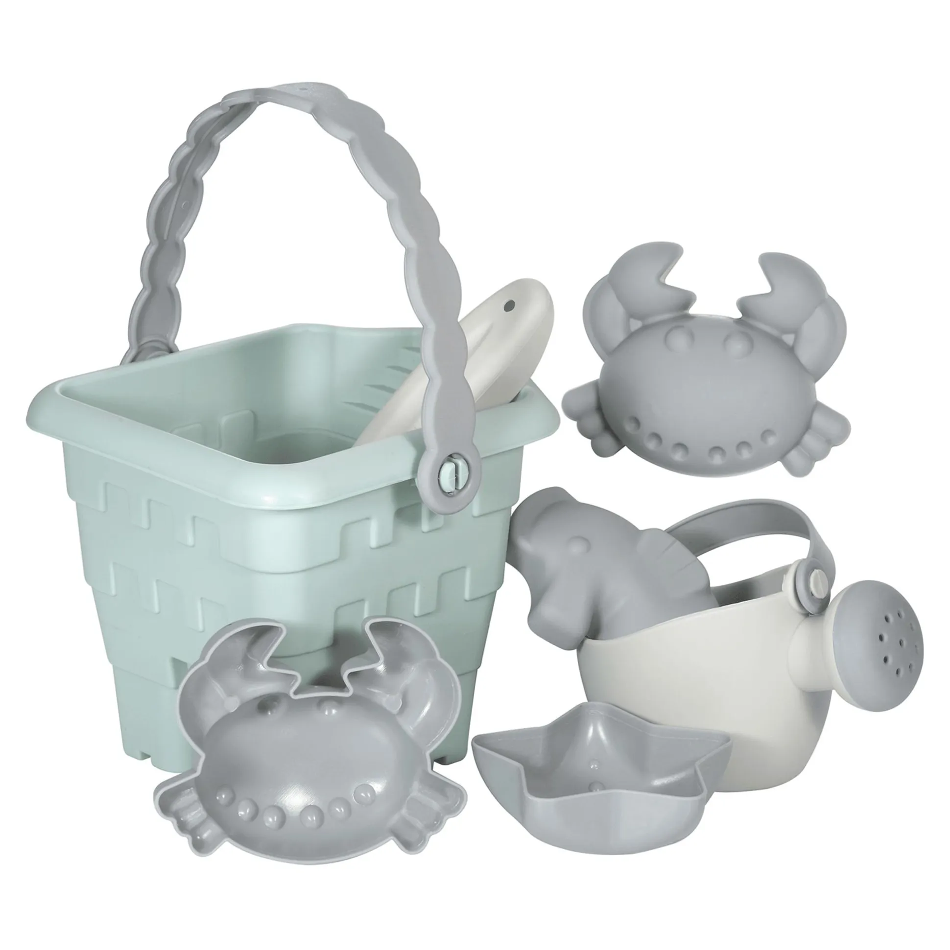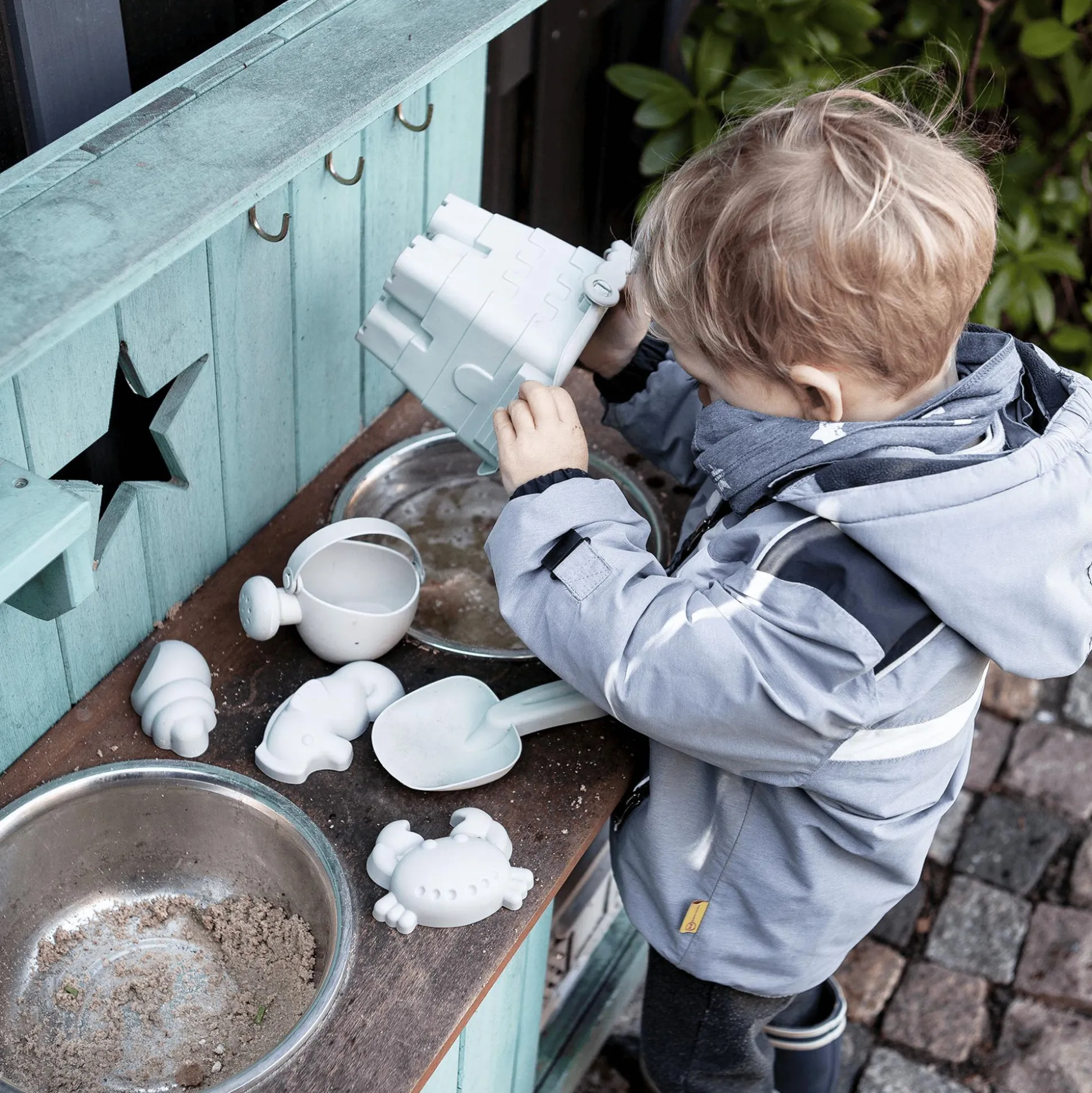 Das Kindsgut Sandspielzeug verbindet schlichtes Design und dezente Farben mit viel Spielspaß. Durch das leichte und flexible Material ist es perfekt für unterwegs und kann bereits von den Kleinsten verwendet werden. Das Sandspielzeug fördert die Feinmotorik und Kreativität im Sandkasten. Das Set besteht aus einem Eimer, einer Gießkanne, einer Schippe und 4 Förmchen.