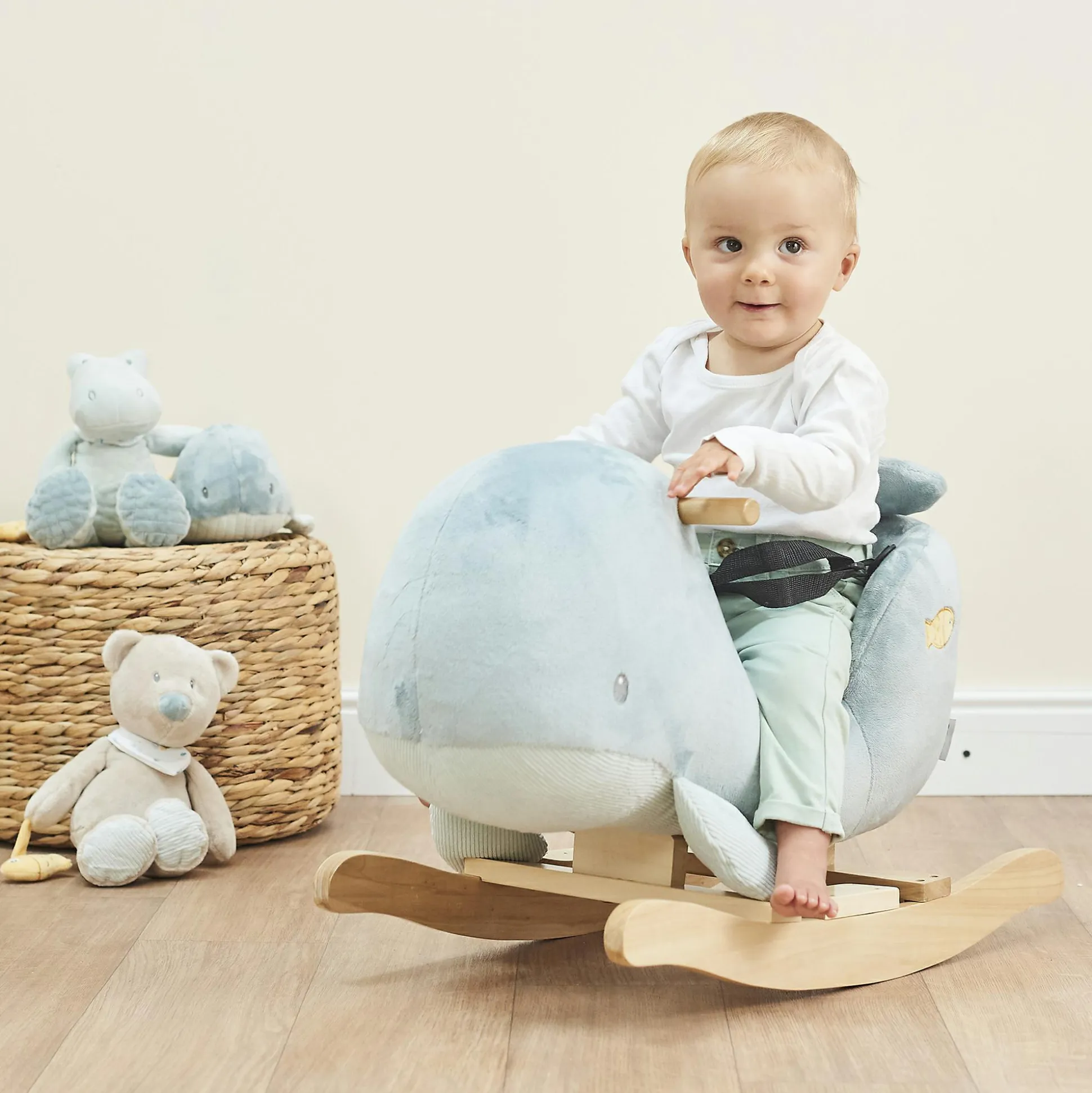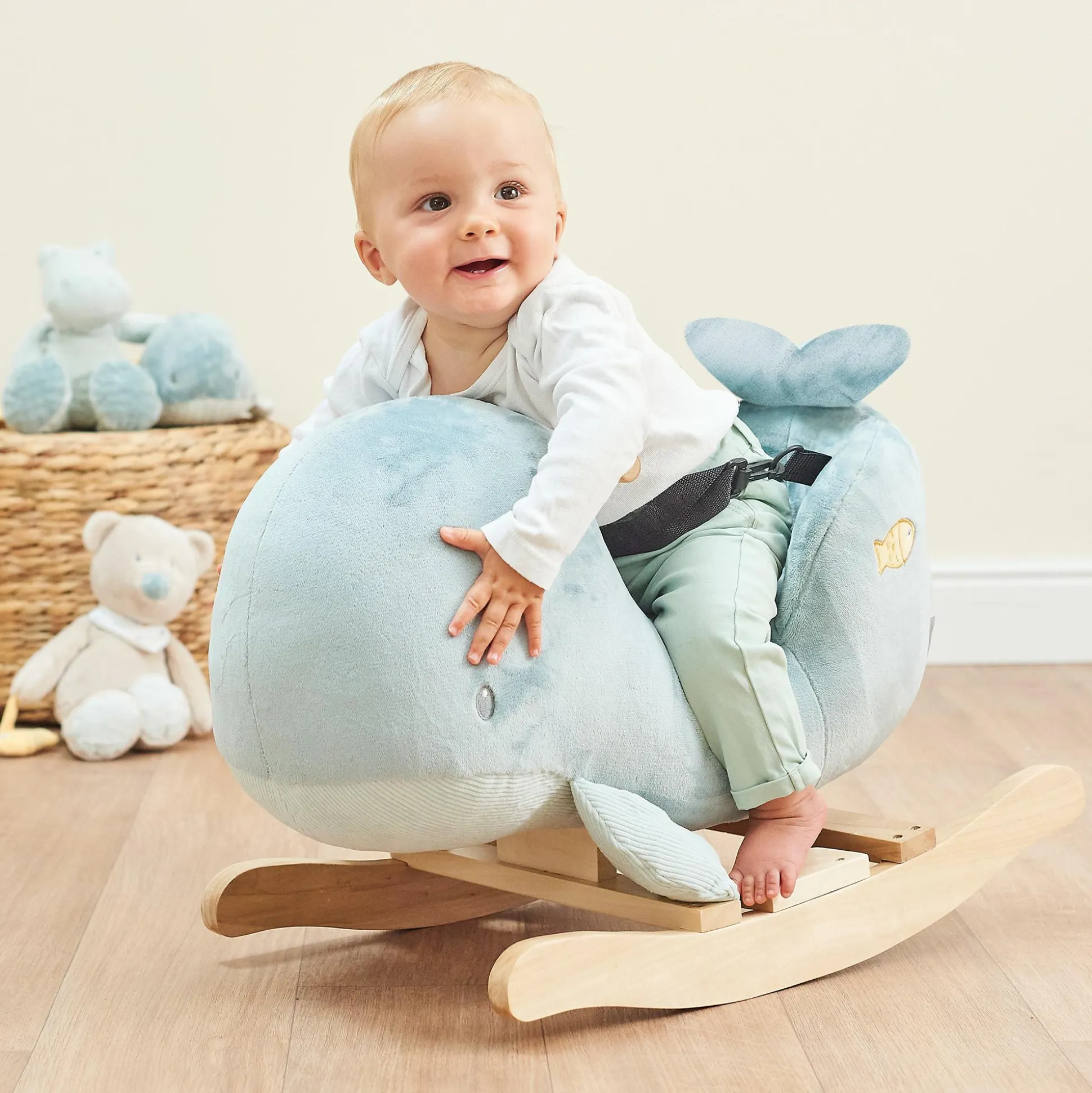 Das niedliche Schaukeltier Wal von NATTOU ist der perfekte Spielkamerad für deinen kleinen Schatz. In dem gepolsterten Sitz mit Sicherheitsgurt können die Kleinen hin und her schaukeln und unbeschwert Spaß haben.