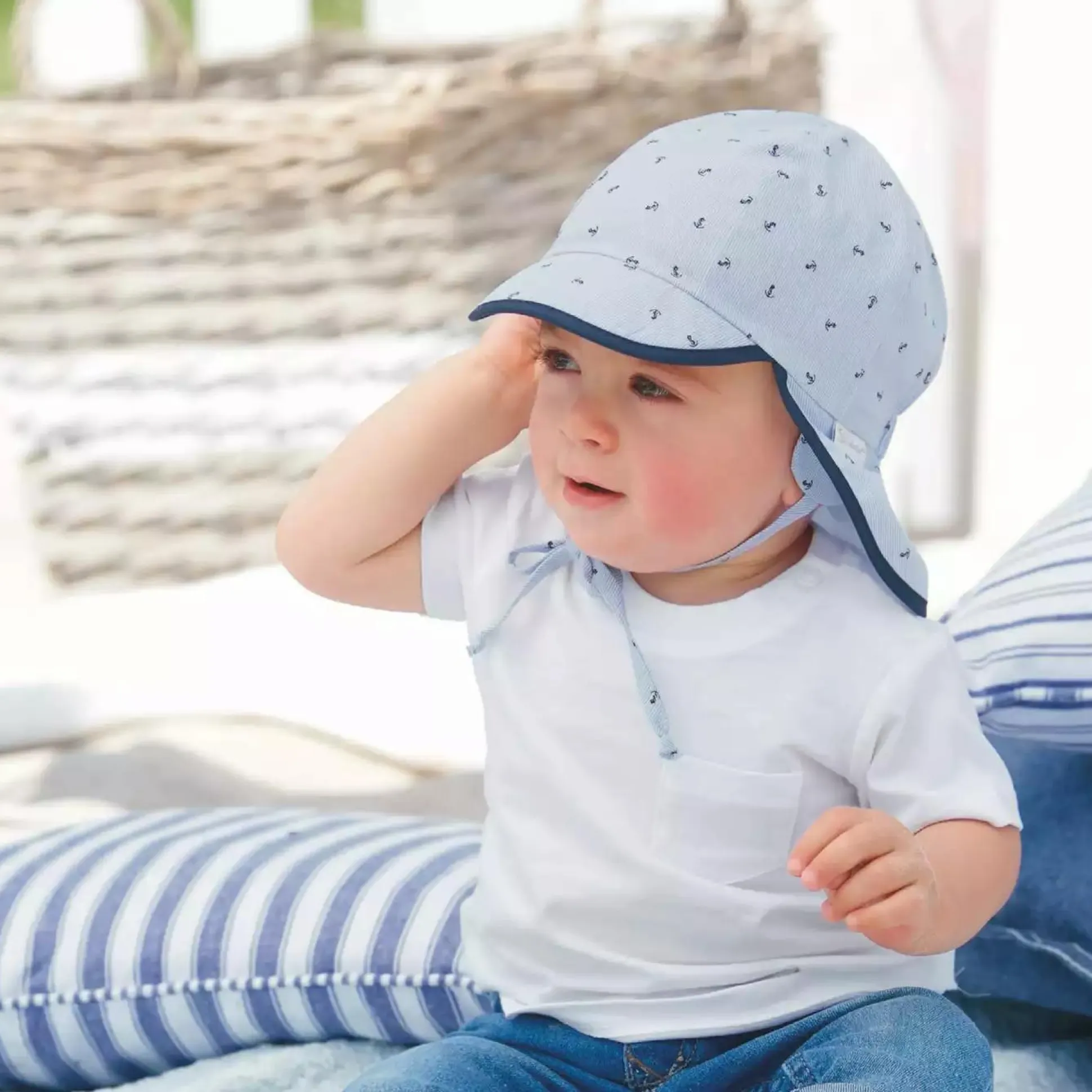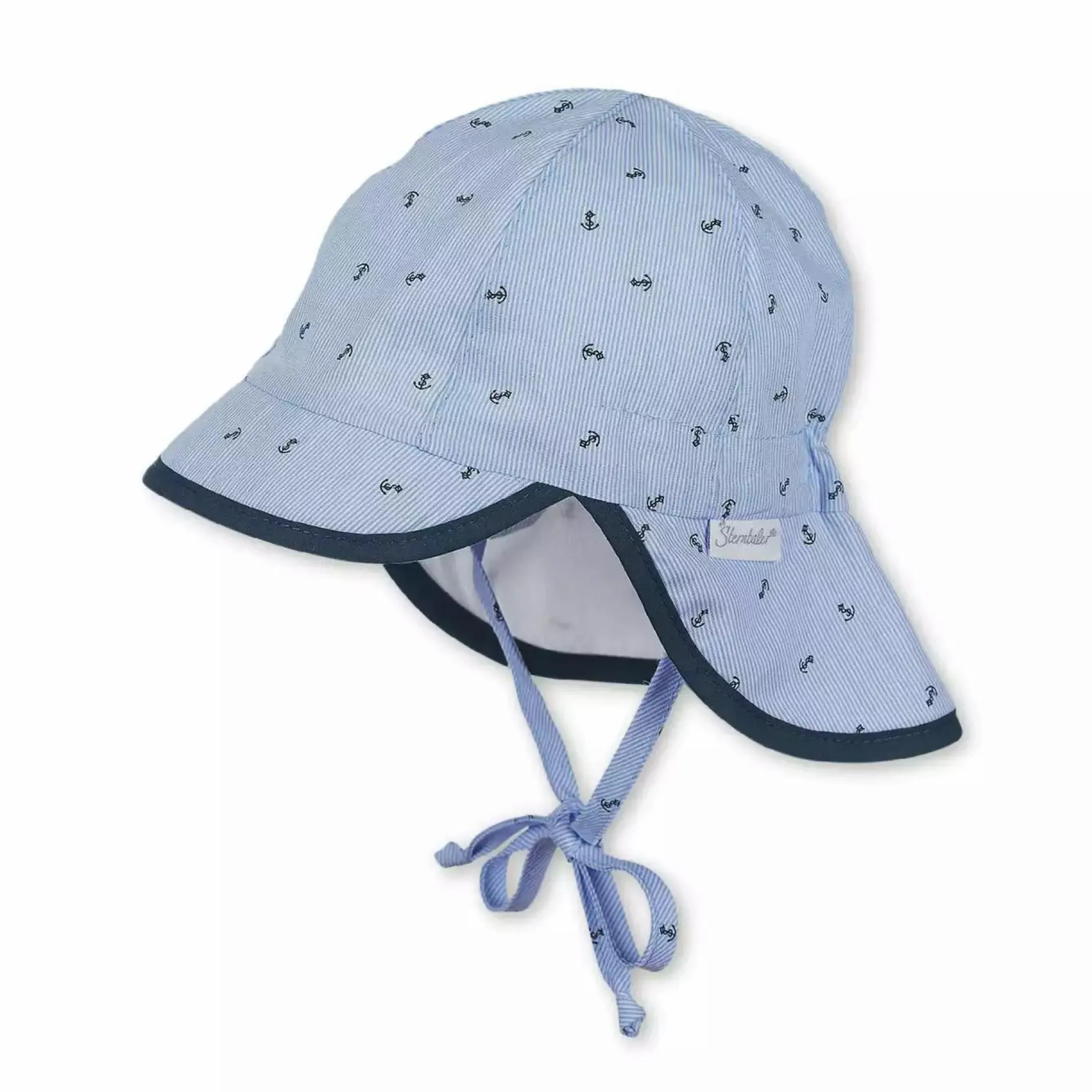 Mit der tollen Schirmmütze mit Nackenschutz von Sterntaler wird das Köpfchen und der empfindliche Nacken deines Kindes bestens vor der Sonne geschützt. Das schöne Anker-Muster macht die Mütze zu einem tollen Hingucker und die Bändchen sorgen für einen optimalen Halt. Dank 100% Baumwolle schmiegt sich der Stoff angenehm und weich an das Köpfchen.