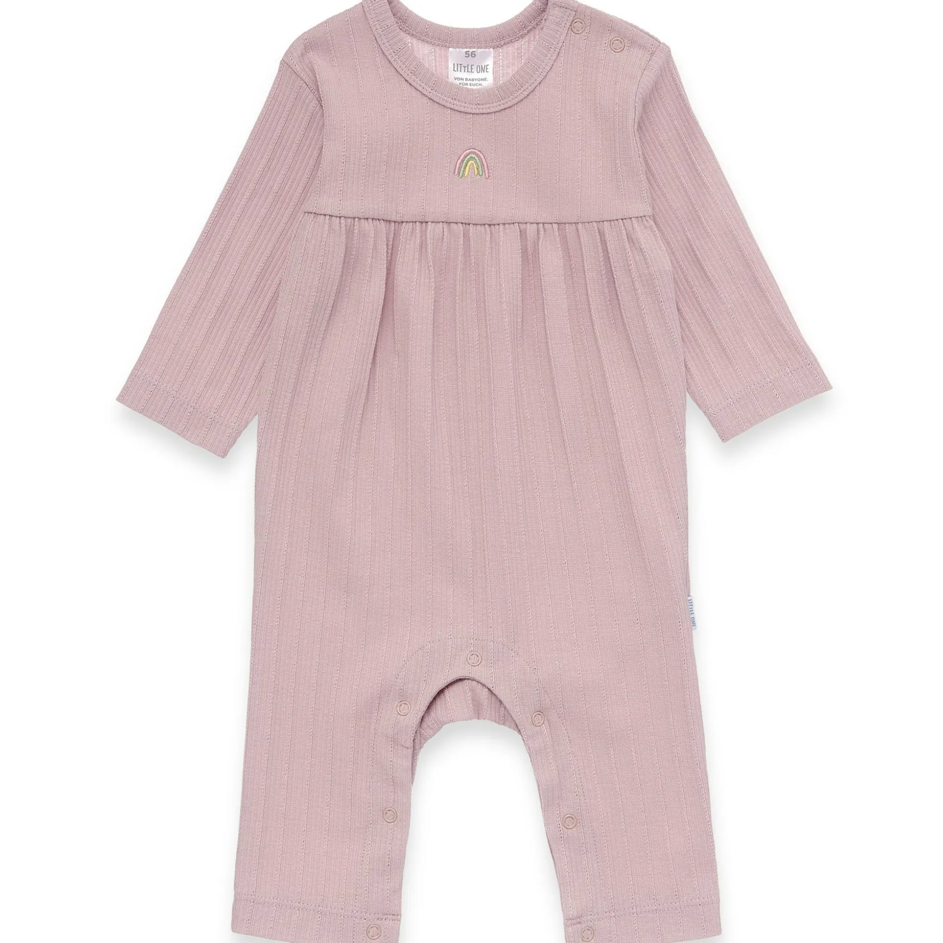 Der Schlafanzug Regenbogen von LITTLE ONE ist perfekt für gemütliche Nächte. Hergestellt aus 95% weicher Bio-Baumwolle und 5% Elasthan, bietet er ein herrlich bequemes Tragegefühl und sorgt dank praktischer Druckknöpfe für ein einfaches An- und Ausziehen.