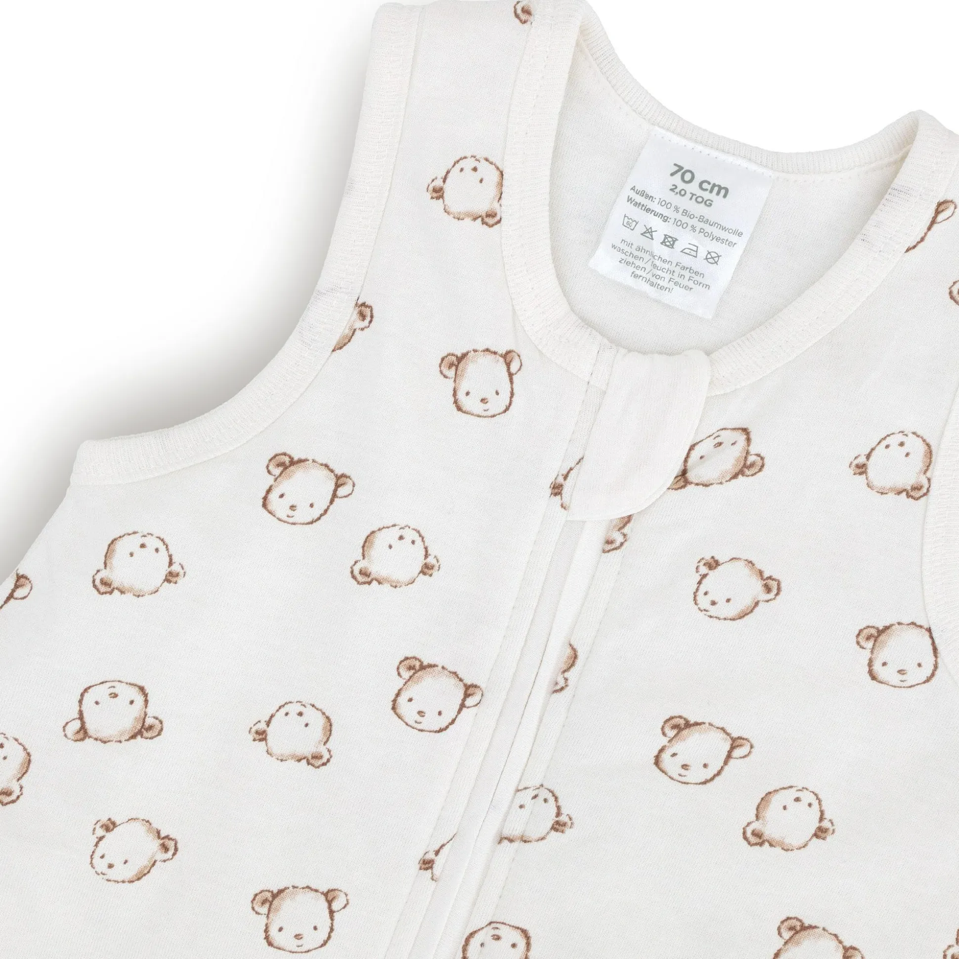 Dieser LITTLE ONE Schlafsack begeistert mit seinem liebevollen Teddy-Allover-Print und besteht aus kuschelweicher Bio-Baumwolle. Der gefütterte Ganzjahresschlafsack ohne Ärmel bietet deinem Nachwuchs ausreichend Bewegungs- und Strampelfreiheit in der Nacht. Der praktische Reißverschluss mit Kinnschutz erleichtert dir und deinem Baby zudem das An- und Ausziehen des LITTLE ONE Schlafsacks.
