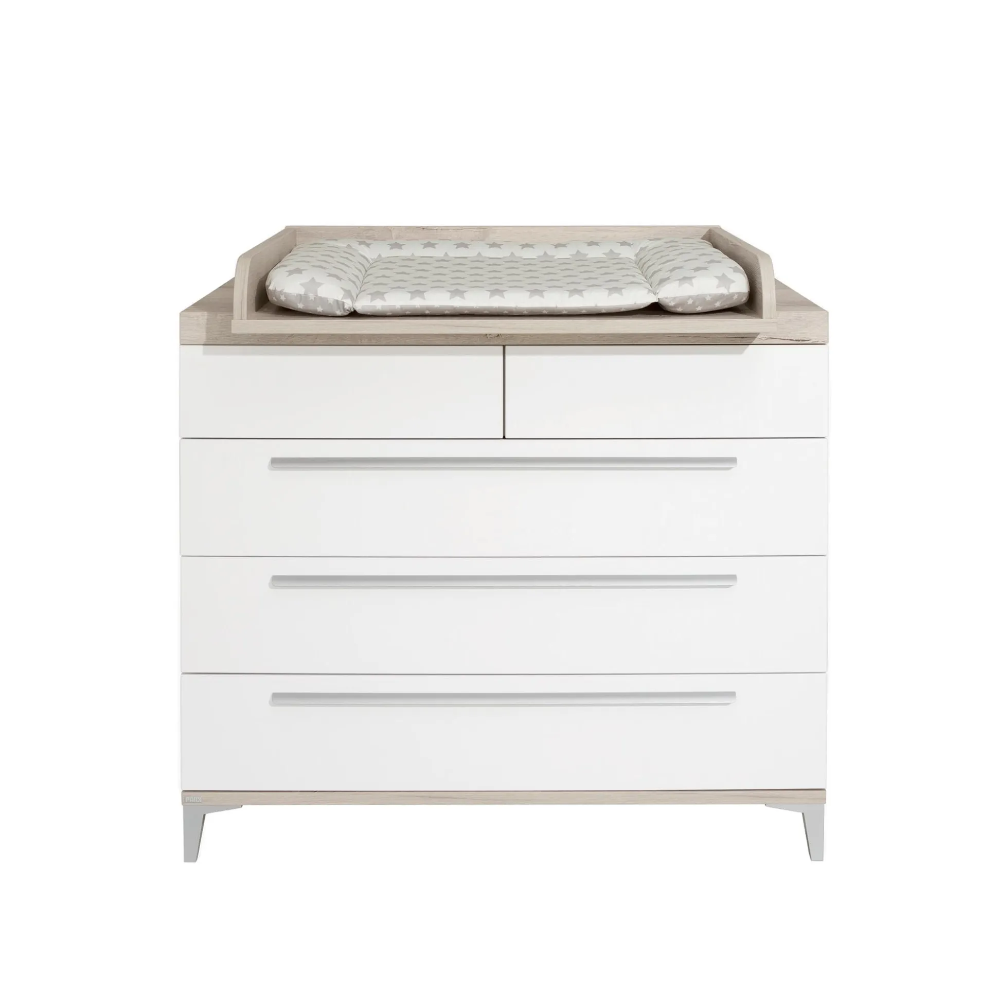 Die wunderschöne, schmale Wickelkommode Mathea von PAIDI bietet in den fünf Schubladen viel Stauraum für eure wichtigsten Habseligkeiten. Dank der Push-to-open Funktion kannst du die oberen Schubladen ganz einfach mit einer Hand öffnen. Der abnehmbare Wickelaufsatz ist separat erhältlich und nicht inklusive.