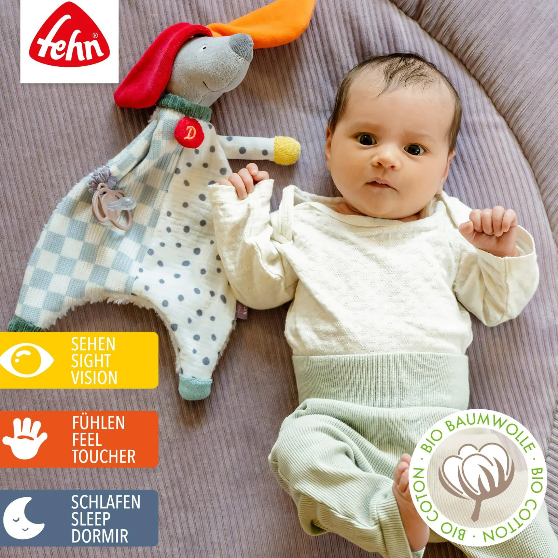 Das Schmusetuch Hund von fehn begleitet deinen kleinen Wonneproppen ab der Geburt mit viel Liebe und Kuschelkomfort. Dieses mehrfarbige Schmusetuch ist der perfekte Begleiter für zarte Kuschelstunden und zaubert deinem Schatz ein Lächeln ins Gesicht.