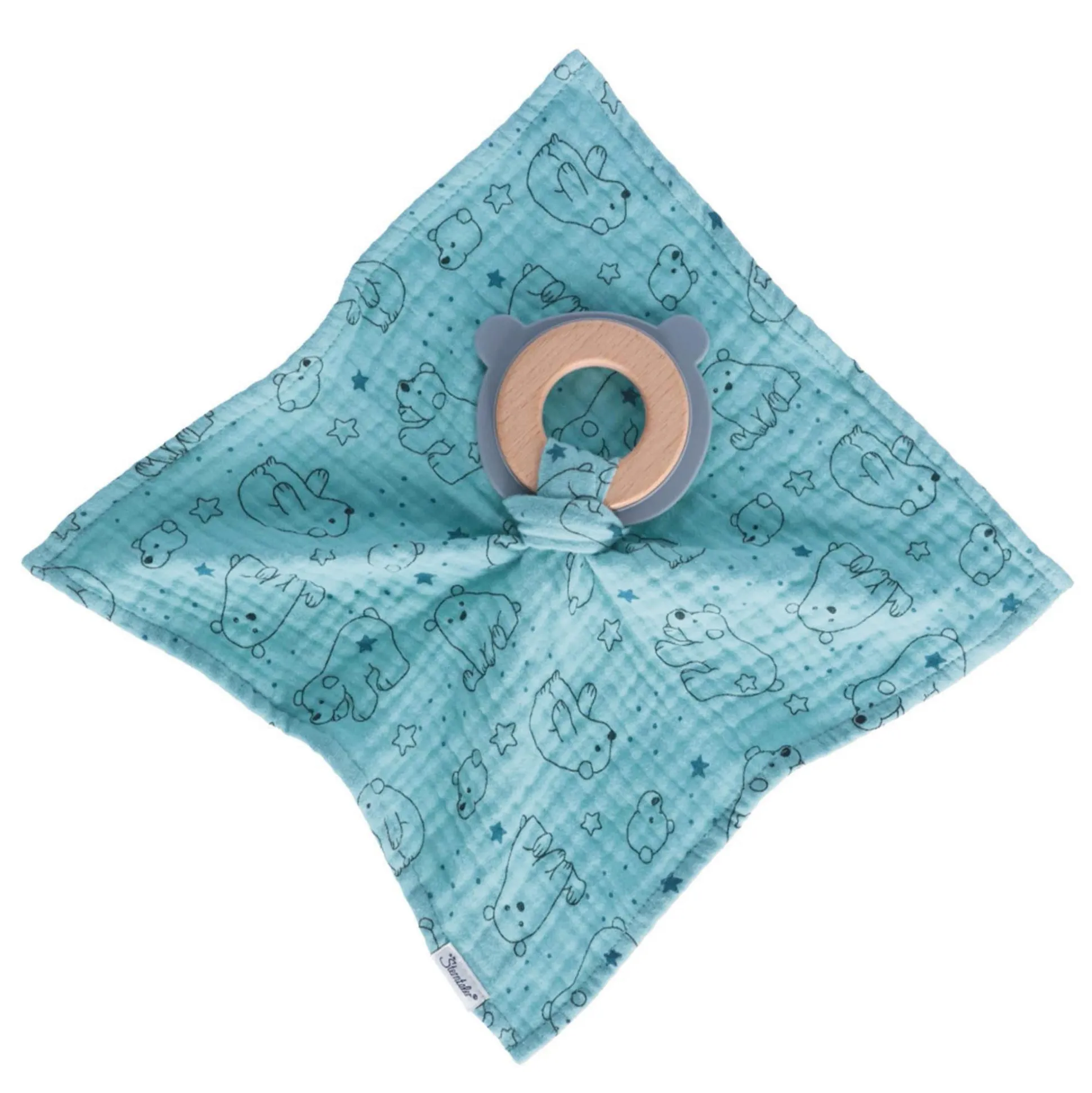 - Schnuffeltuch aus weichem Musselinstoff mit niedlichem Bären Print